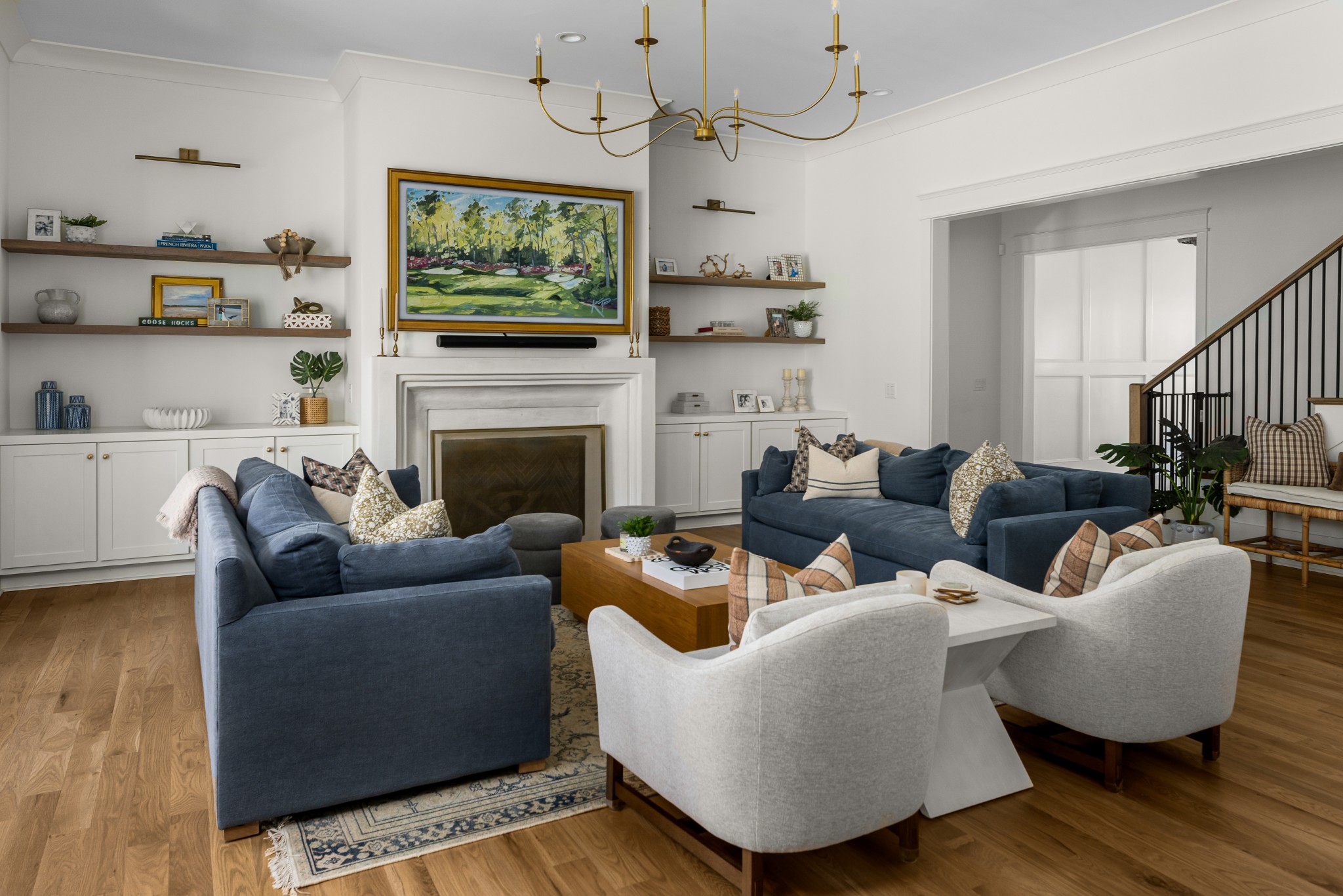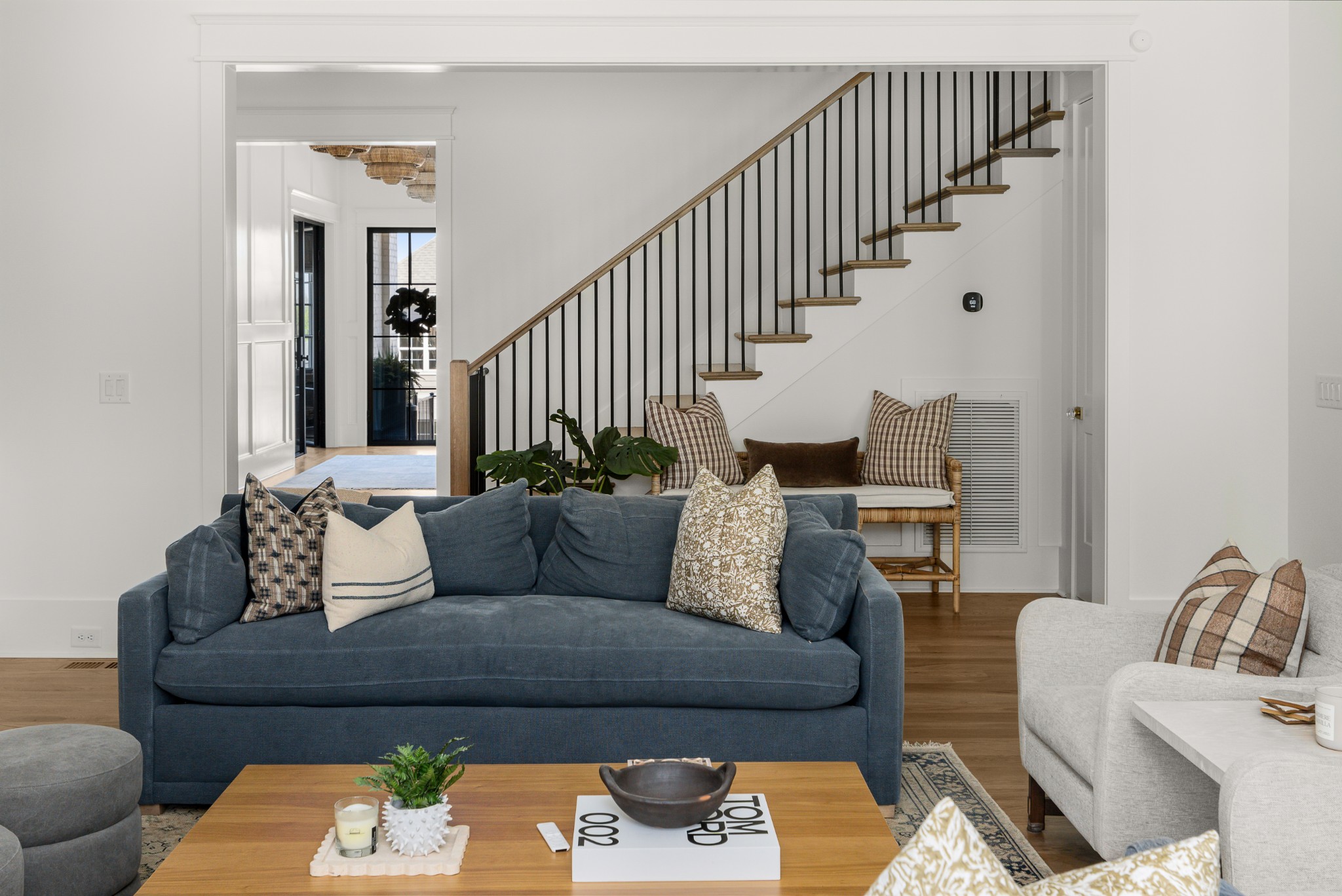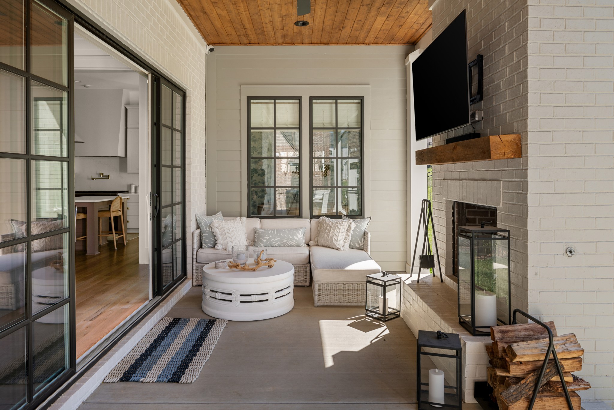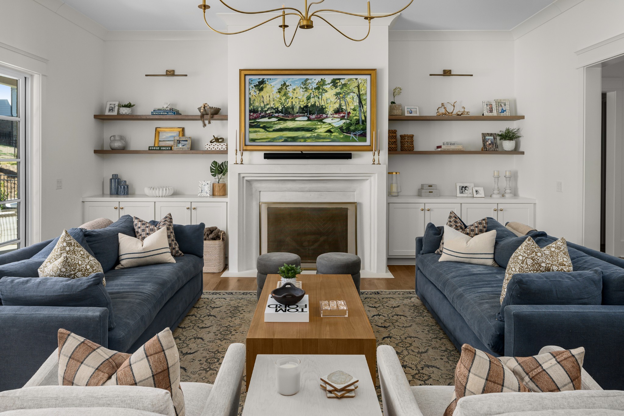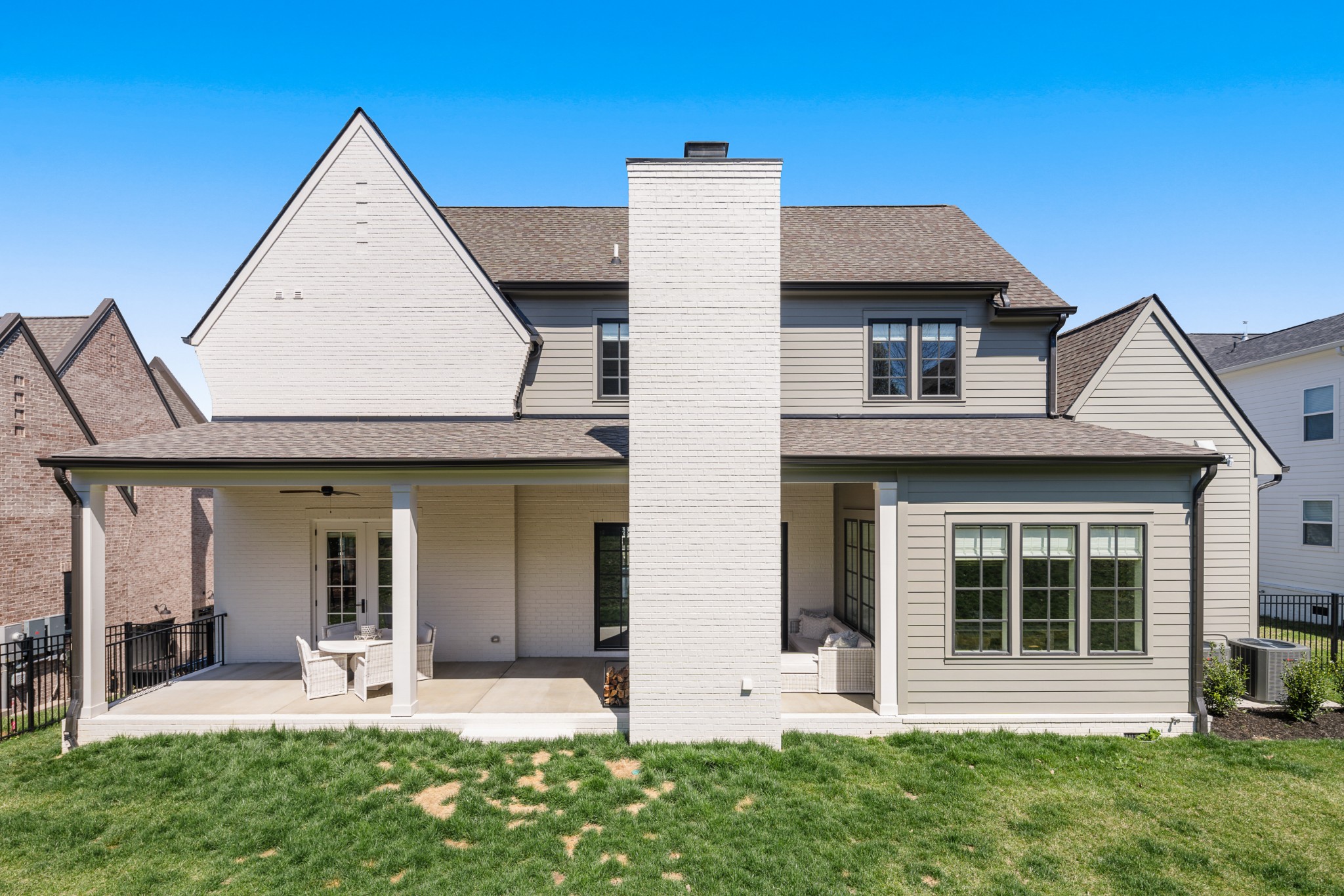 Rare CUSTOM NEW BUILD in one of Franklin’s most desirable communities, this one-of-a-kind 2024 residence was designed by prestigious architect Andrew King, known for his work in Troubadour, The Grove, and Oman. Every aspect of this home has been carefully CURATED AND UPGRADED, down to the hardware, creating a living experience that is as refined as it is functional. The painted brick exterior is accented by striking iron and glass double front doors, a THREE CAR GARAGE, and a spacious covered back porch with an outdoor fireplace, offering the perfect blend of elegance and comfort. Inside, an open floor plan showcases soaring 11-foot ceilings on the main level and 10-foot ceilings upstairs, hardwood flooring throughout, and intricate custom trim work. The gourmet kitchen is a showpiece with quartz countertops, a solid slab backsplash, a ten-foot island, an expansive pantry, and a premium THERMADOR appliance package. The vaulted primary suite on the main floor provides a serene retreat with a spa-like bath and an oversized custom closet, while four additional bedrooms upstairs each feature ensuite baths adorned with handmade ZELLIGE TILE that brings artisanal texture and timeless beauty to the spaces. The second floor also includes a spacious recreation room with four custom built-in BUNK BEDS and a full laundry room, in addition to the main level laundry, ensuring effortless convenience. Designer wallpaper, curated paint selections, DESIGNER LIGHTING, and elevated finishes carry throughout the home, reinforcing the level of detail and artistry in every room. With two fireplaces, dual laundry, and every possible luxury upgrade, this home truly has it all. The community itself enhances the lifestyle with two pools, playgrounds, basketball courts, hiking trails, and more, making this property a rare opportunity in Franklin.