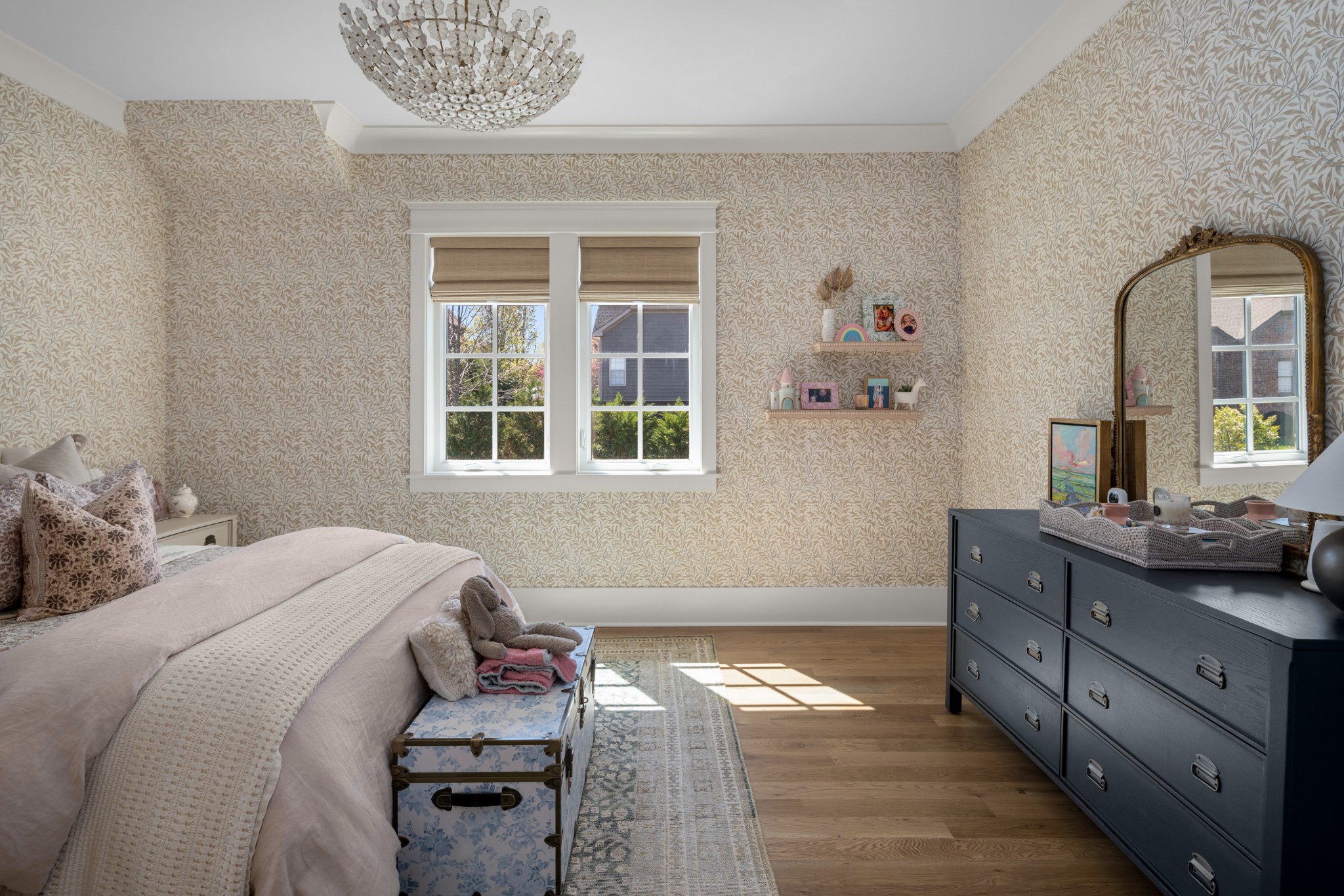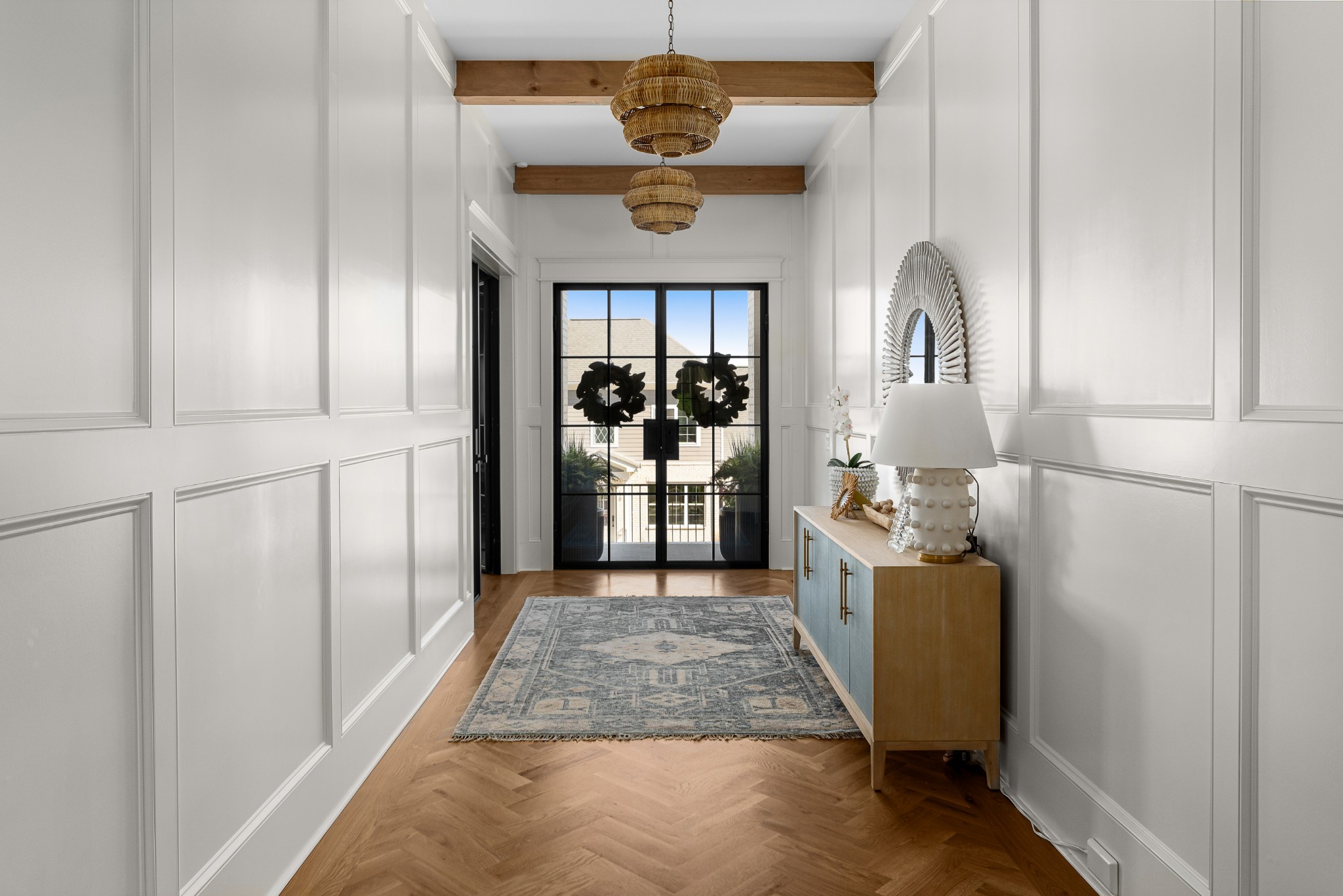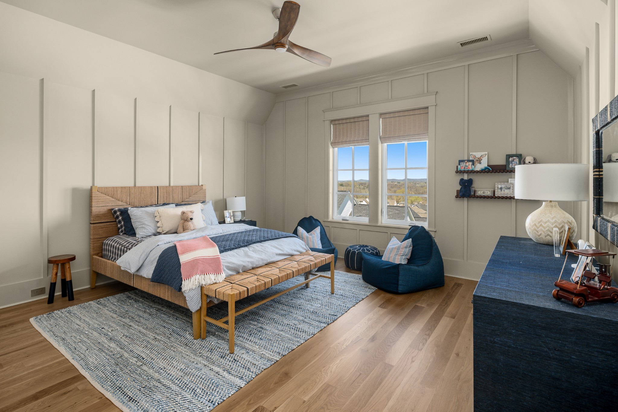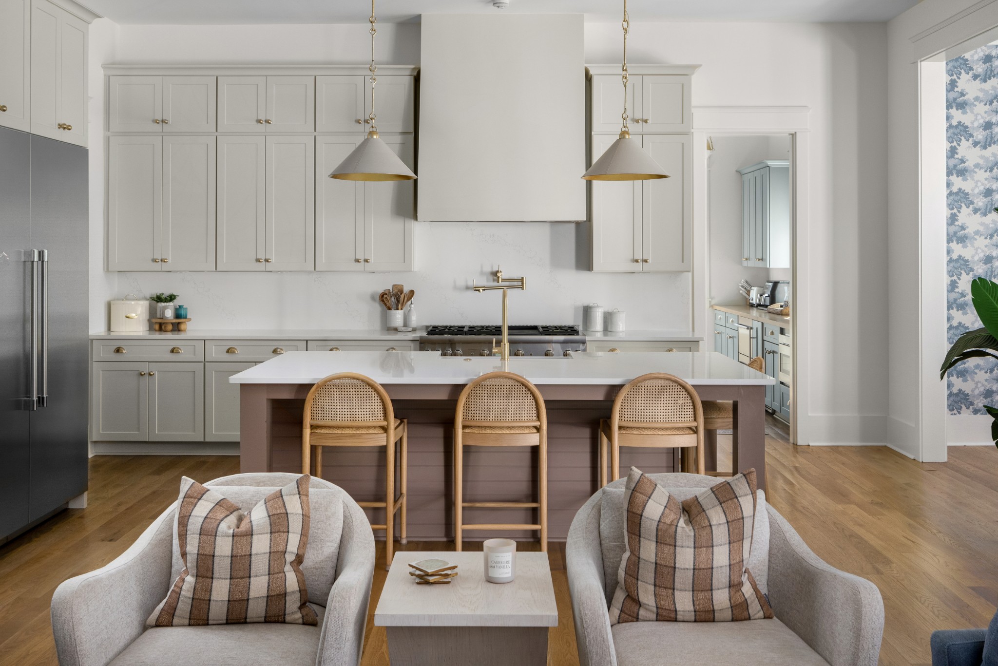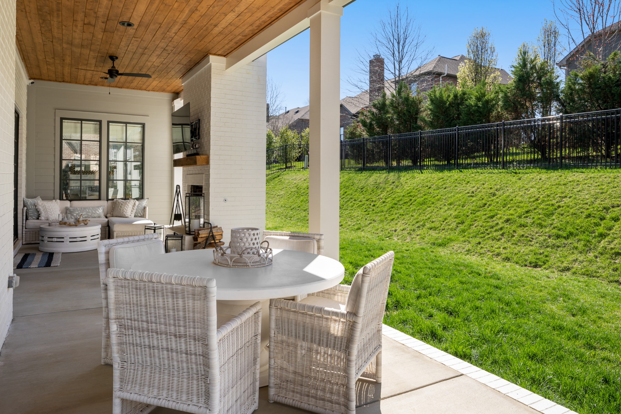 Rare CUSTOM NEW BUILD in one of Franklin’s most desirable communities, this one-of-a-kind 2024 residence was designed by prestigious architect Andrew King, known for his work in Troubadour, The Grove, and Oman. Every aspect of this home has been carefully CURATED AND UPGRADED, down to the hardware, creating a living experience that is as refined as it is functional. The painted brick exterior is accented by striking iron and glass double front doors, a THREE CAR GARAGE, and a spacious covered back porch with an outdoor fireplace, offering the perfect blend of elegance and comfort. Inside, an open floor plan showcases soaring 11-foot ceilings on the main level and 10-foot ceilings upstairs, hardwood flooring throughout, and intricate custom trim work. The gourmet kitchen is a showpiece with quartz countertops, a solid slab backsplash, a ten-foot island, an expansive pantry, and a premium THERMADOR appliance package. The vaulted primary suite on the main floor provides a serene retreat with a spa-like bath and an oversized custom closet, while four additional bedrooms upstairs each feature ensuite baths adorned with handmade ZELLIGE TILE that brings artisanal texture and timeless beauty to the spaces. The second floor also includes a spacious recreation room with four custom built-in BUNK BEDS and a full laundry room, in addition to the main level laundry, ensuring effortless convenience. Designer wallpaper, curated paint selections, DESIGNER LIGHTING, and elevated finishes carry throughout the home, reinforcing the level of detail and artistry in every room. With two fireplaces, dual laundry, and every possible luxury upgrade, this home truly has it all. The community itself enhances the lifestyle with two pools, playgrounds, basketball courts, hiking trails, and more, making this property a rare opportunity in Franklin.