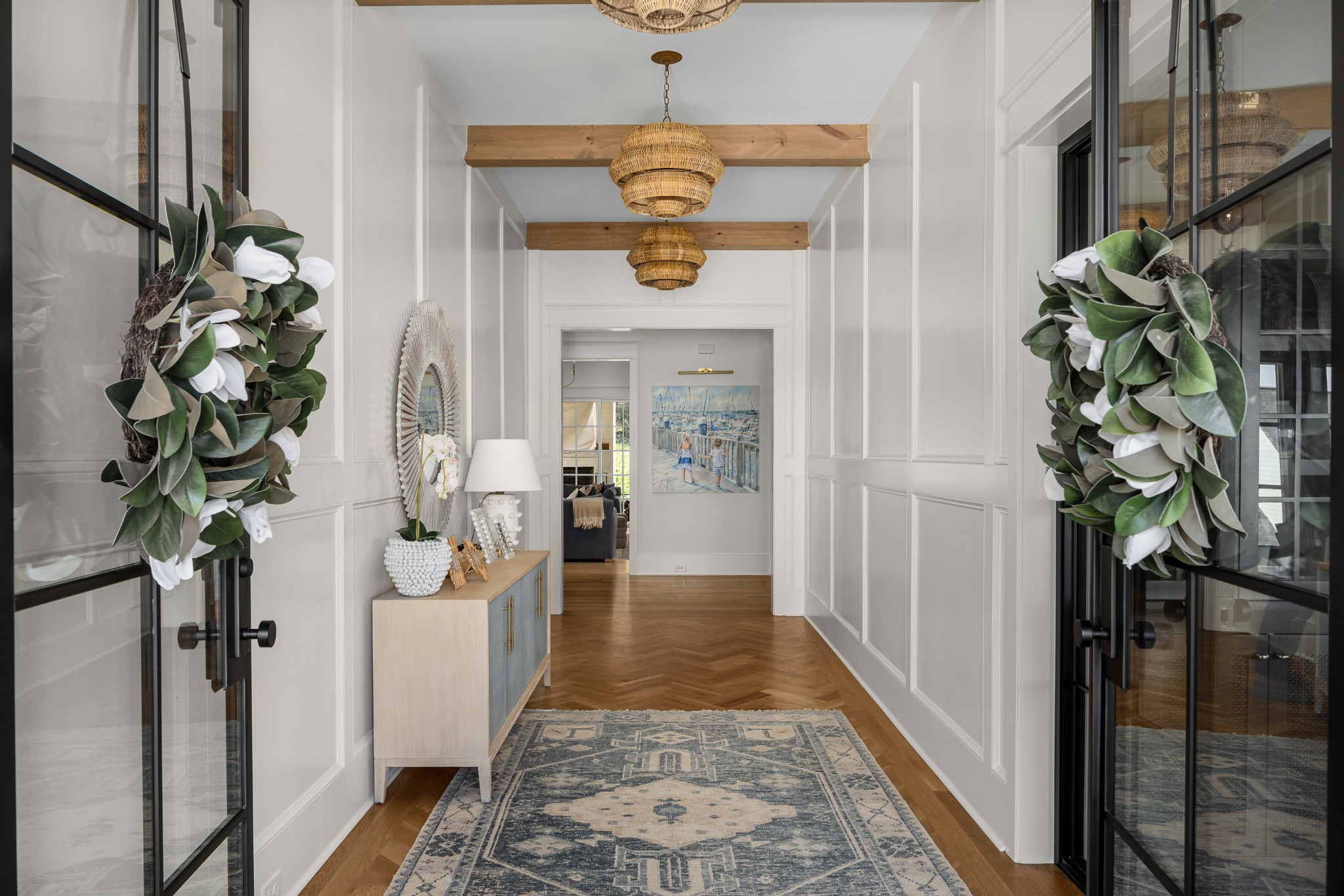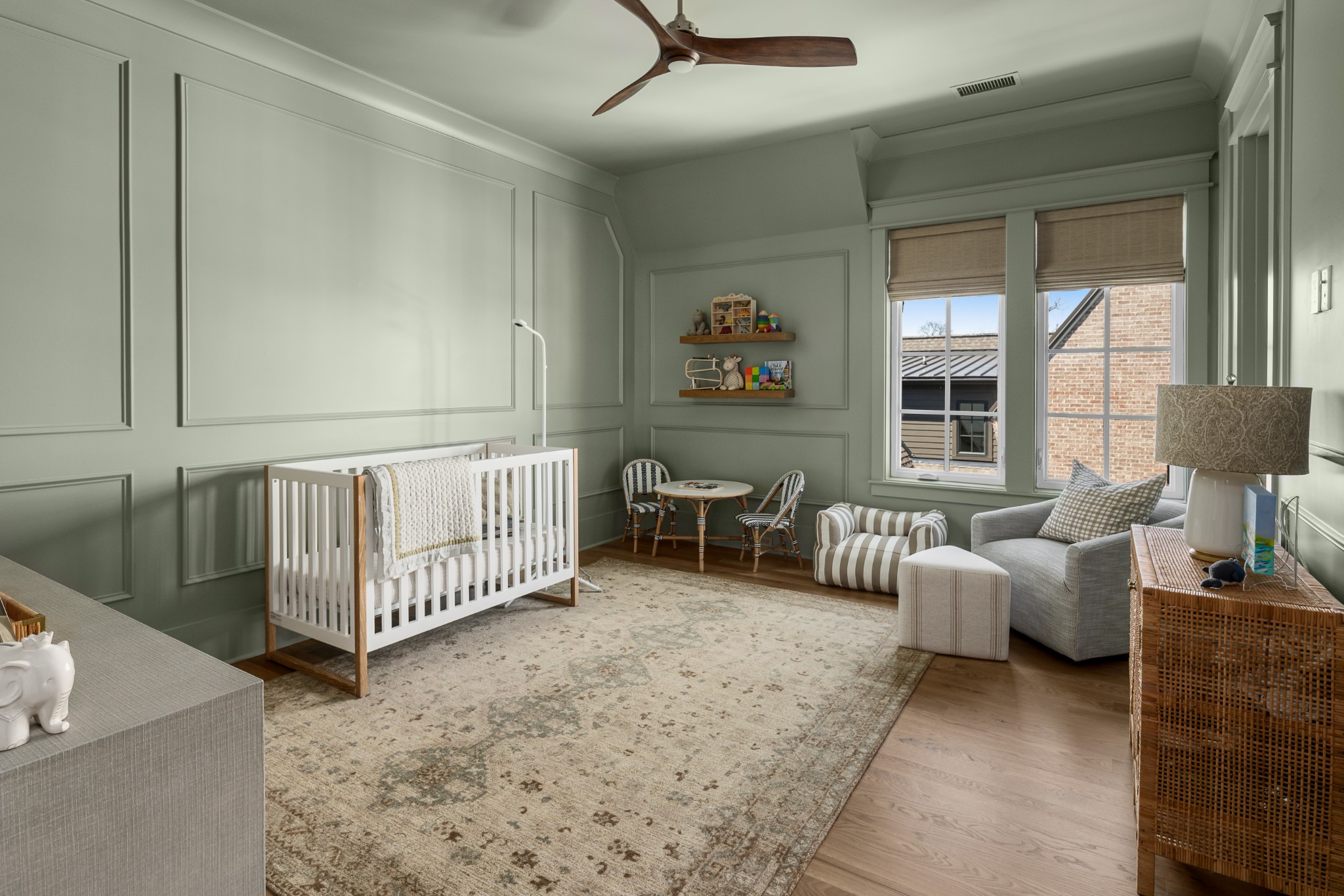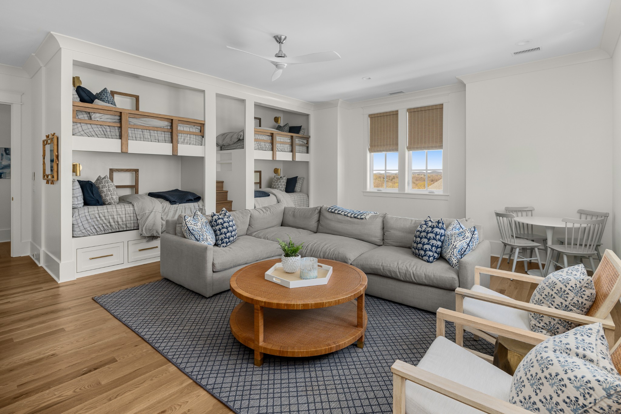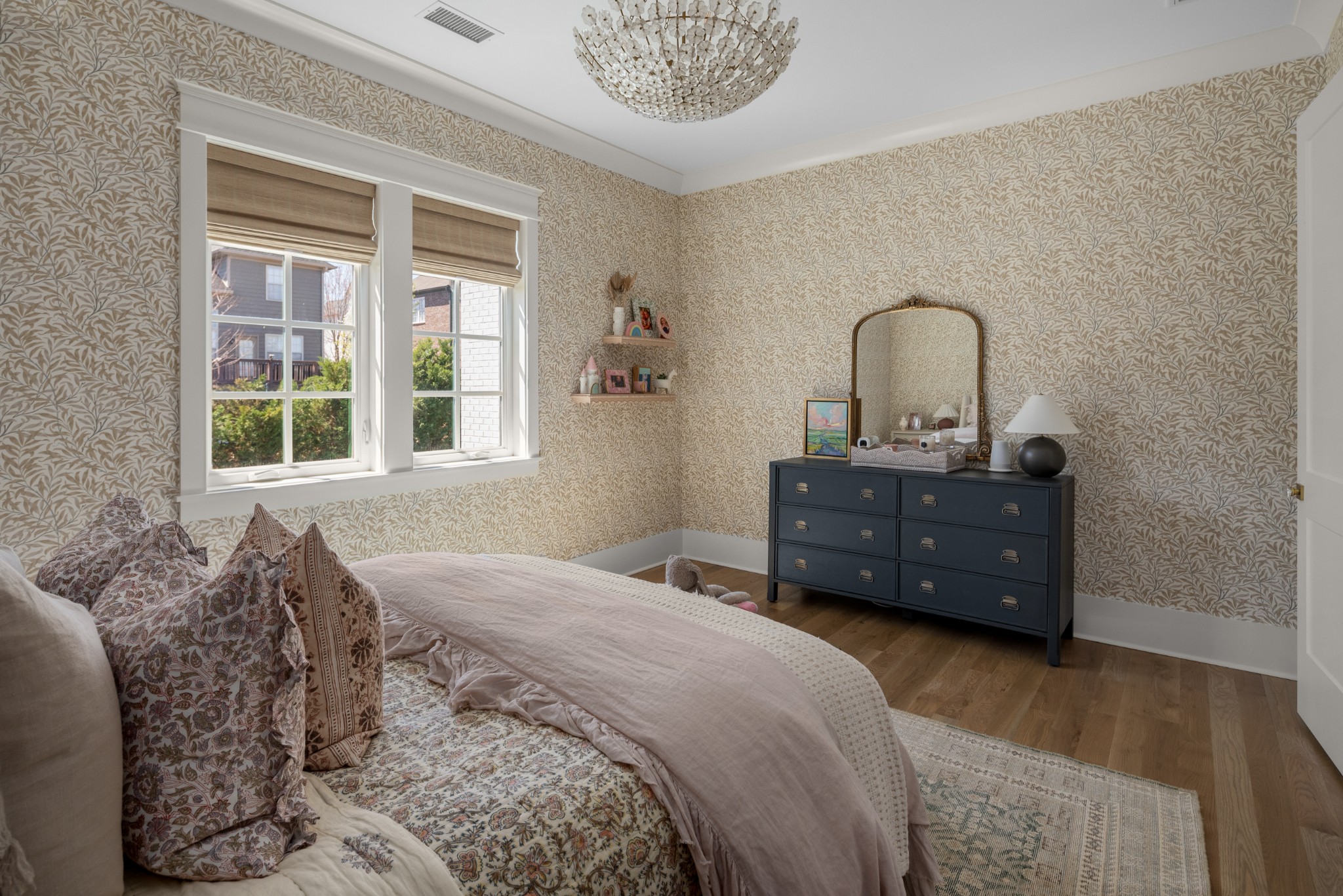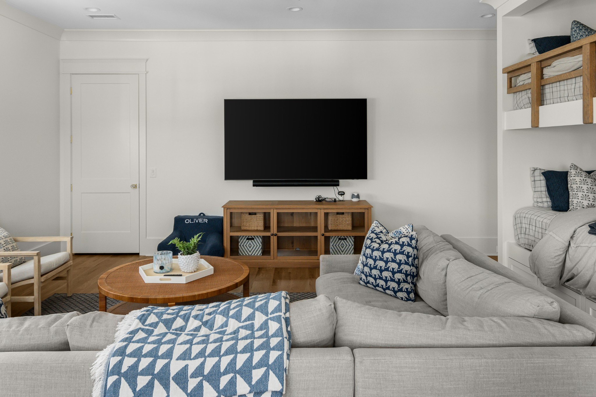 Rare CUSTOM NEW BUILD in one of Franklin’s most desirable communities, this one-of-a-kind 2024 residence was designed by prestigious architect Andrew King, known for his work in Troubadour, The Grove, and Oman. Every aspect of this home has been carefully CURATED AND UPGRADED, down to the hardware, creating a living experience that is as refined as it is functional. The painted brick exterior is accented by striking iron and glass double front doors, a THREE CAR GARAGE, and a spacious covered back porch with an outdoor fireplace, offering the perfect blend of elegance and comfort. Inside, an open floor plan showcases soaring 11-foot ceilings on the main level and 10-foot ceilings upstairs, hardwood flooring throughout, and intricate custom trim work. The gourmet kitchen is a showpiece with quartz countertops, a solid slab backsplash, a ten-foot island, an expansive pantry, and a premium THERMADOR appliance package. The vaulted primary suite on the main floor provides a serene retreat with a spa-like bath and an oversized custom closet, while four additional bedrooms upstairs each feature ensuite baths adorned with handmade ZELLIGE TILE that brings artisanal texture and timeless beauty to the spaces. The second floor also includes a spacious recreation room with four custom built-in BUNK BEDS and a full laundry room, in addition to the main level laundry, ensuring effortless convenience. Designer wallpaper, curated paint selections, DESIGNER LIGHTING, and elevated finishes carry throughout the home, reinforcing the level of detail and artistry in every room. With two fireplaces, dual laundry, and every possible luxury upgrade, this home truly has it all. The community itself enhances the lifestyle with two pools, playgrounds, basketball courts, hiking trails, and more, making this property a rare opportunity in Franklin.