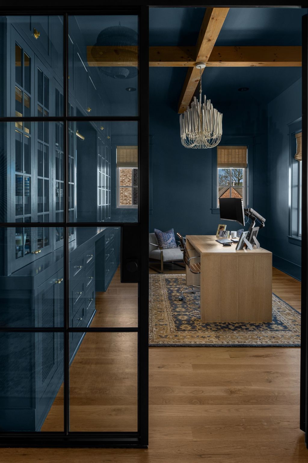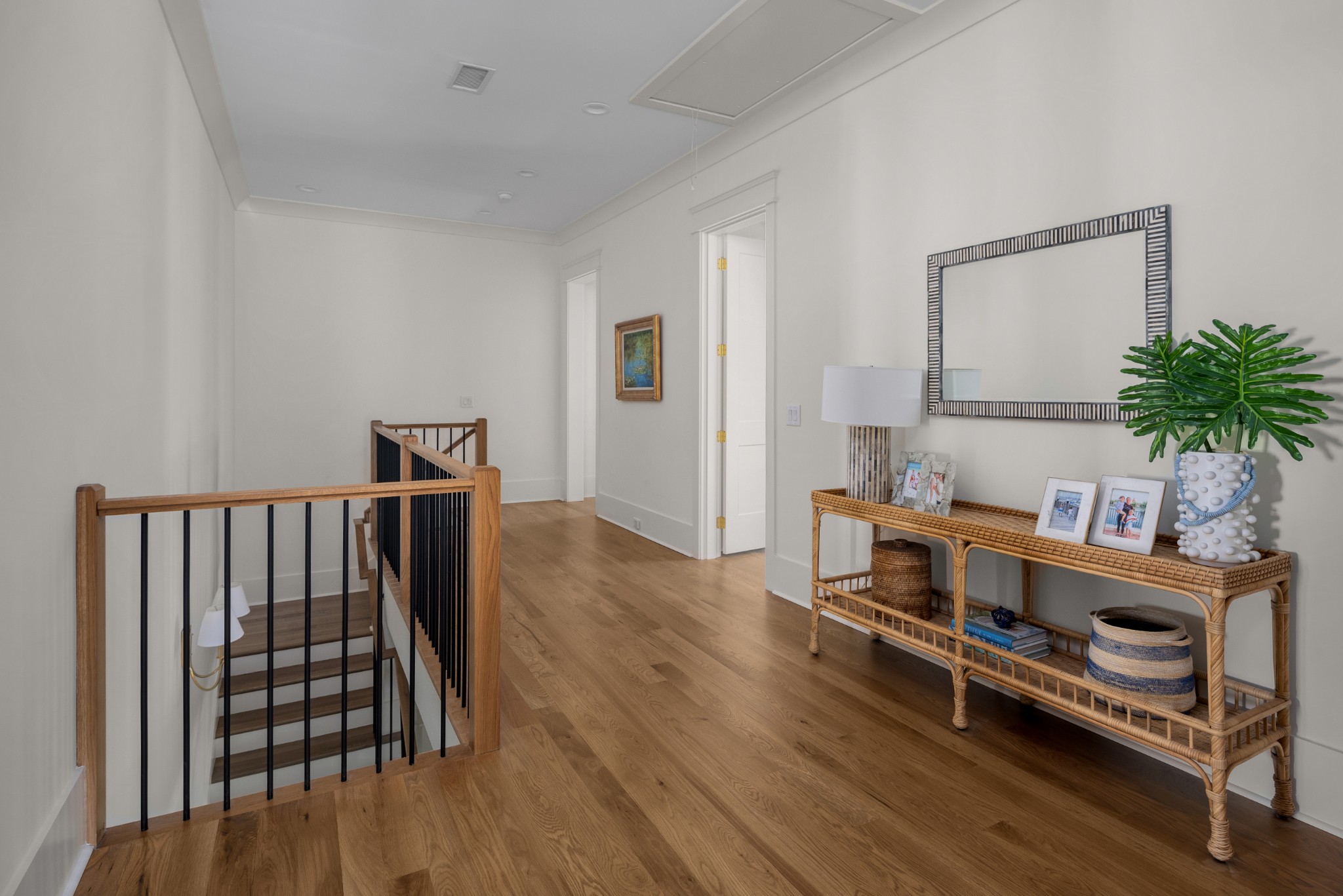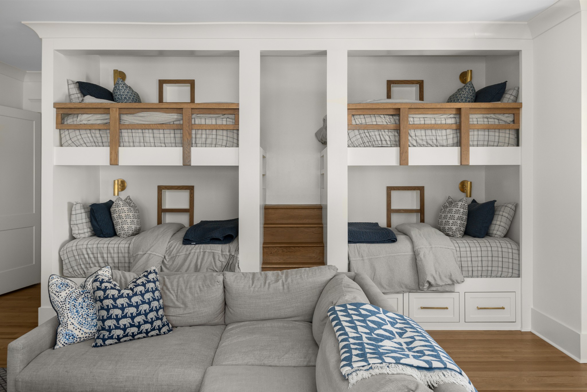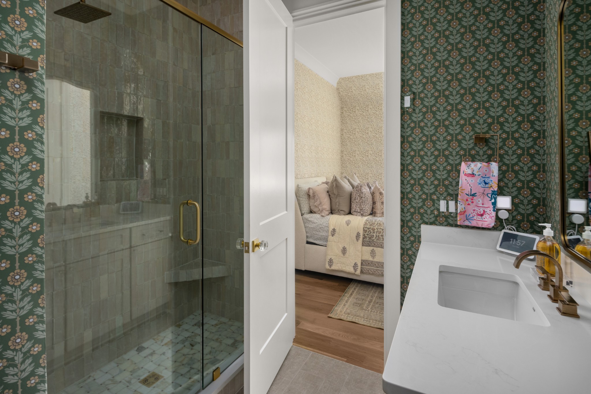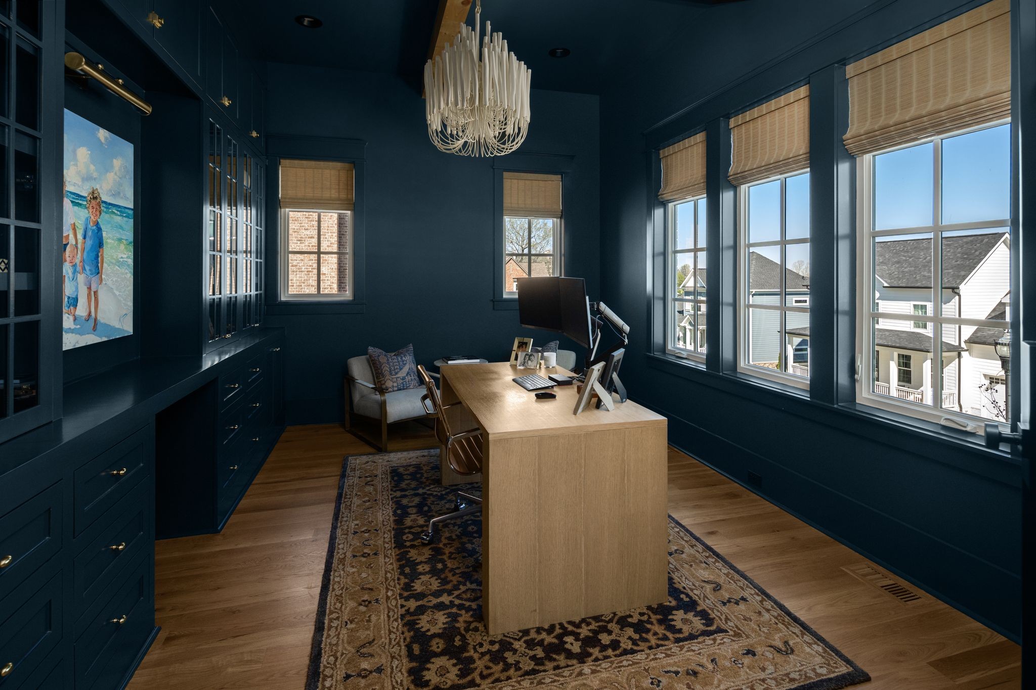 Rare CUSTOM NEW BUILD in one of Franklin’s most desirable communities, this one-of-a-kind 2024 residence was designed by prestigious architect Andrew King, known for his work in Troubadour, The Grove, and Oman. Every aspect of this home has been carefully CURATED AND UPGRADED, down to the hardware, creating a living experience that is as refined as it is functional. The painted brick exterior is accented by striking iron and glass double front doors, a THREE CAR GARAGE, and a spacious covered back porch with an outdoor fireplace, offering the perfect blend of elegance and comfort. Inside, an open floor plan showcases soaring 11-foot ceilings on the main level and 10-foot ceilings upstairs, hardwood flooring throughout, and intricate custom trim work. The gourmet kitchen is a showpiece with quartz countertops, a solid slab backsplash, a ten-foot island, an expansive pantry, and a premium THERMADOR appliance package. The vaulted primary suite on the main floor provides a serene retreat with a spa-like bath and an oversized custom closet, while four additional bedrooms upstairs each feature ensuite baths adorned with handmade ZELLIGE TILE that brings artisanal texture and timeless beauty to the spaces. The second floor also includes a spacious recreation room with four custom built-in BUNK BEDS and a full laundry room, in addition to the main level laundry, ensuring effortless convenience. Designer wallpaper, curated paint selections, DESIGNER LIGHTING, and elevated finishes carry throughout the home, reinforcing the level of detail and artistry in every room. With two fireplaces, dual laundry, and every possible luxury upgrade, this home truly has it all. The community itself enhances the lifestyle with two pools, playgrounds, basketball courts, hiking trails, and more, making this property a rare opportunity in Franklin.