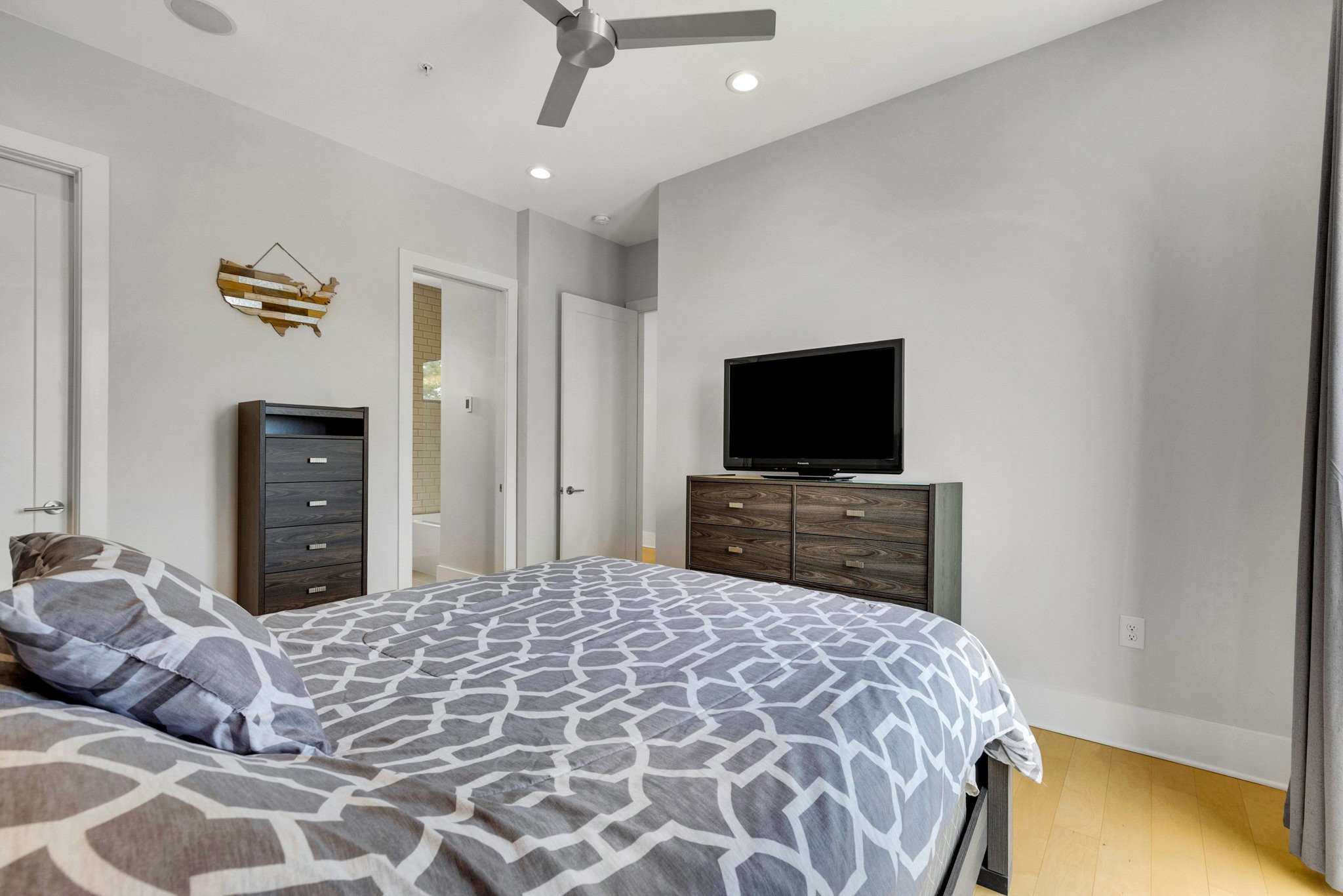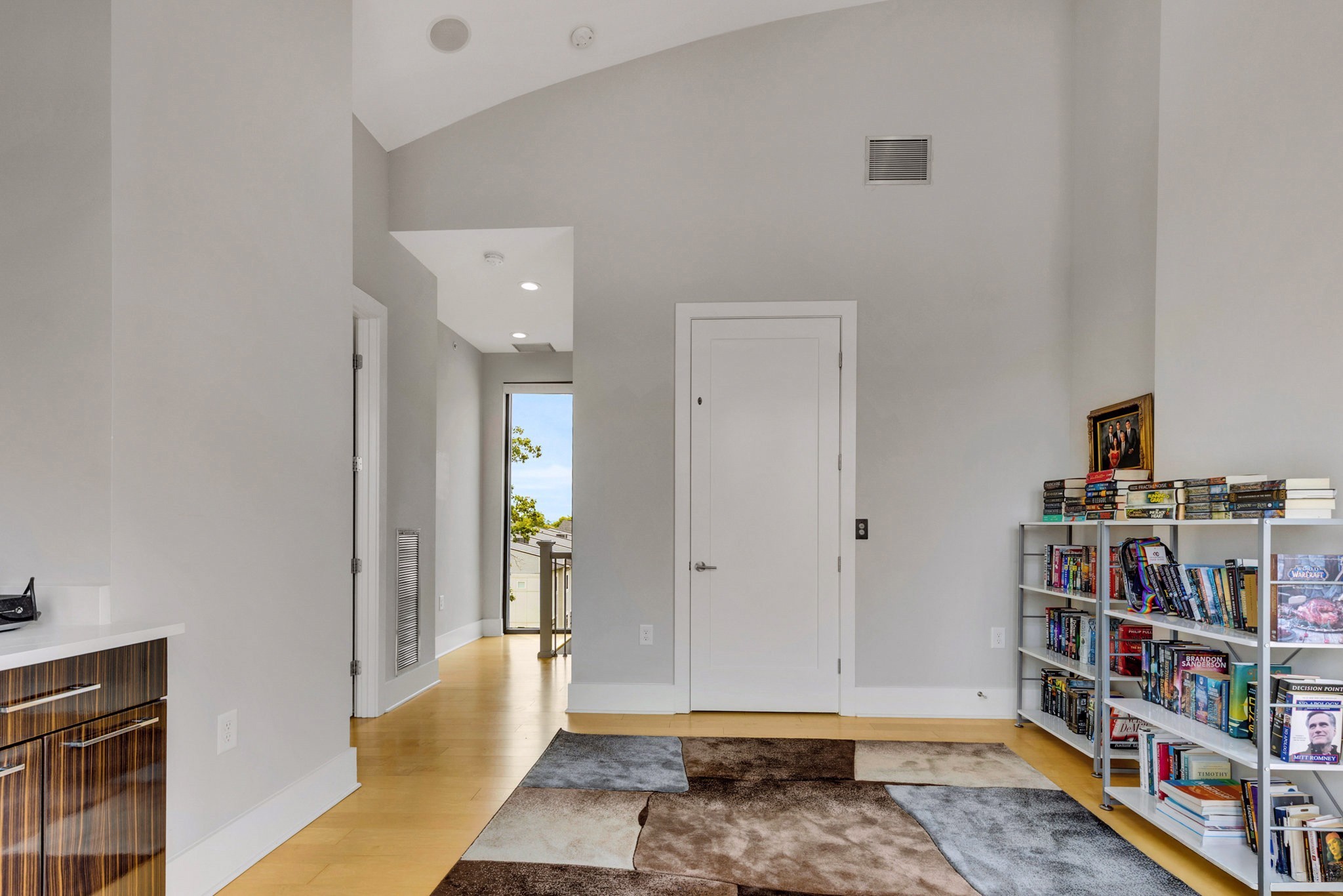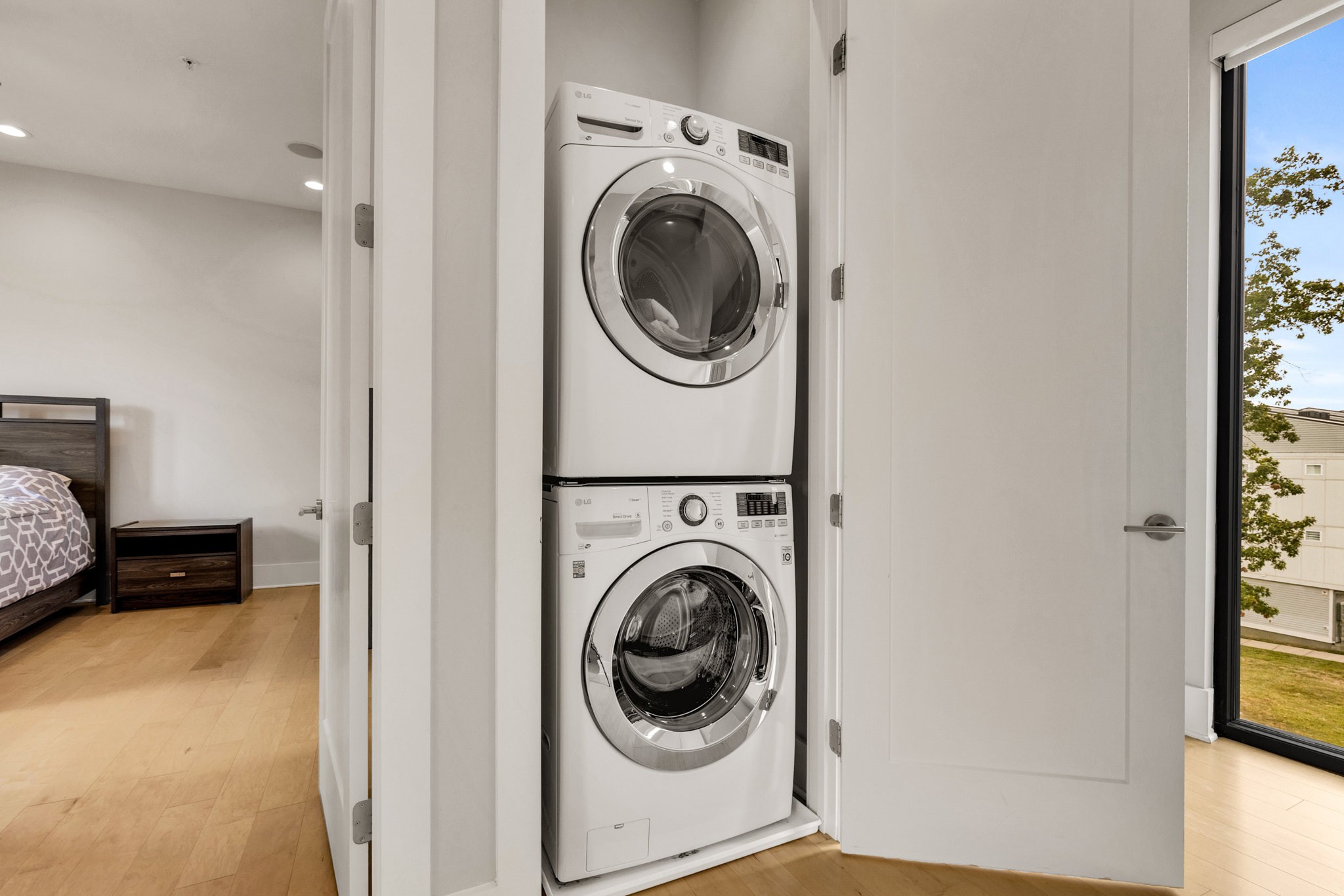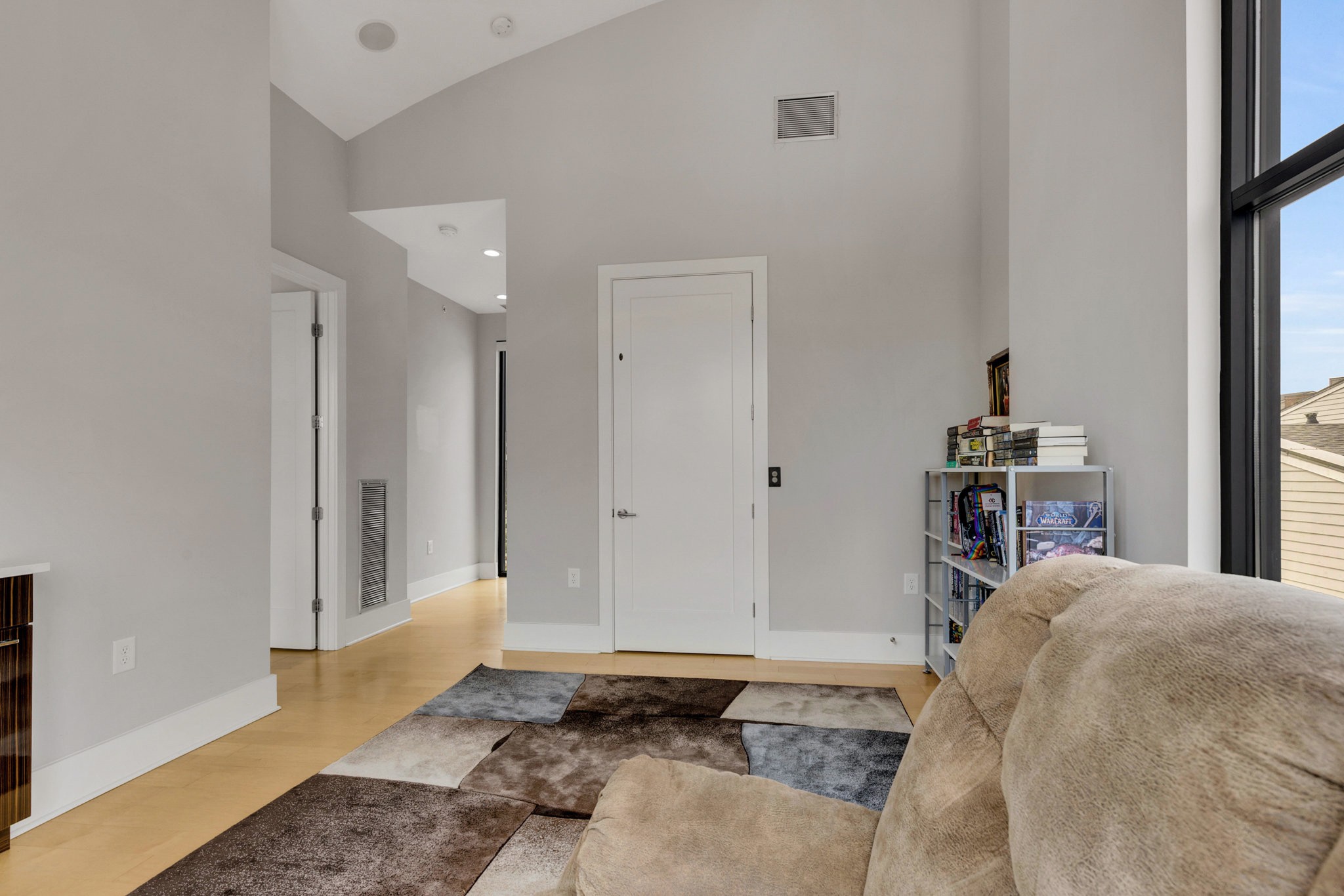 Upstairs, the fourth-floor bonus room with wet bar opens to a private balcony — perfect for entertaining or unwinding at sunset. A second balcony extends from the main living space, and both feature Trex decking for durability. Additional highlights include gorgeous hardwood floors throughout, a spacious two-car garage, tankless water heater, and a low-maintenance lifestyle with HOA-managed landscaping.