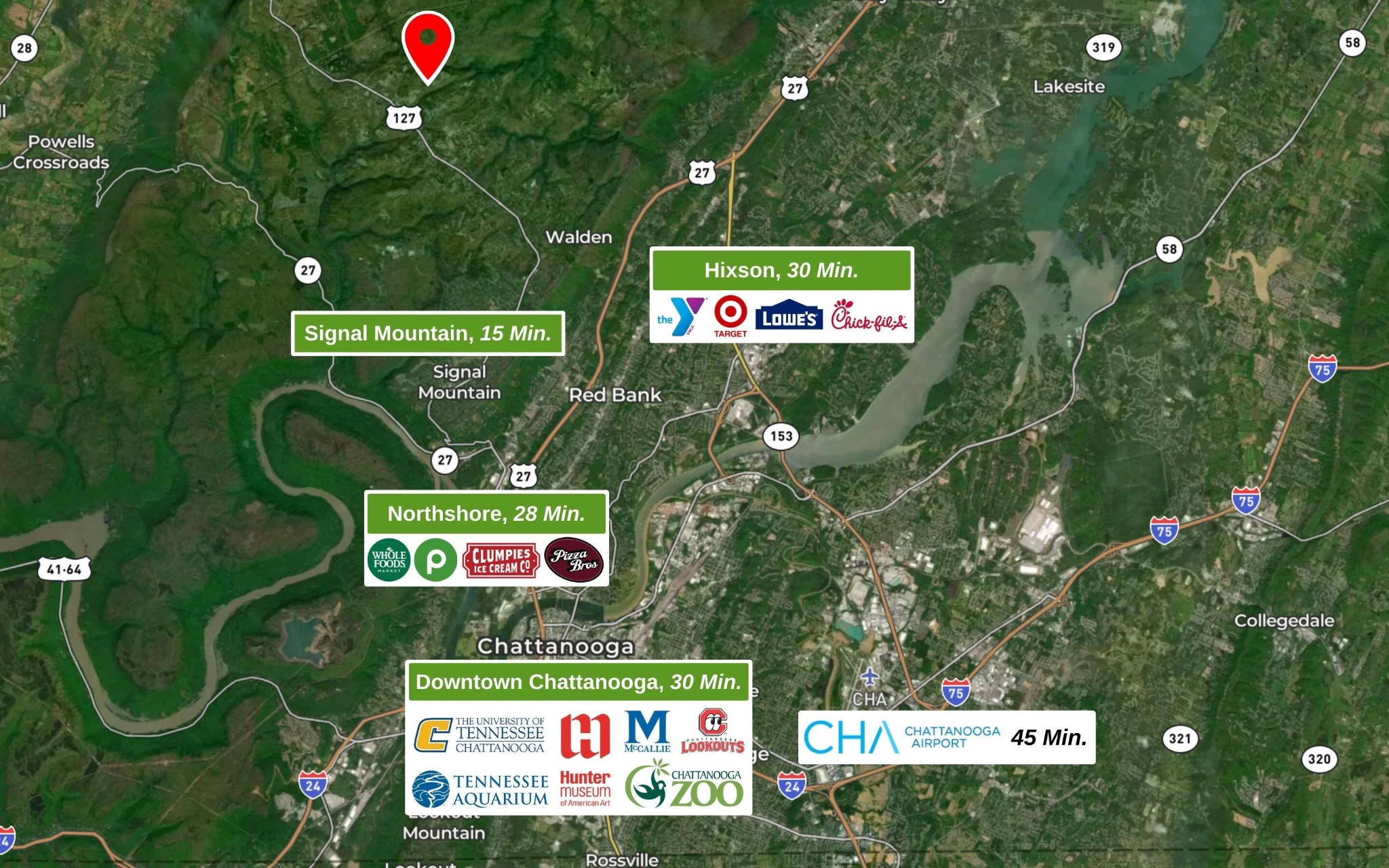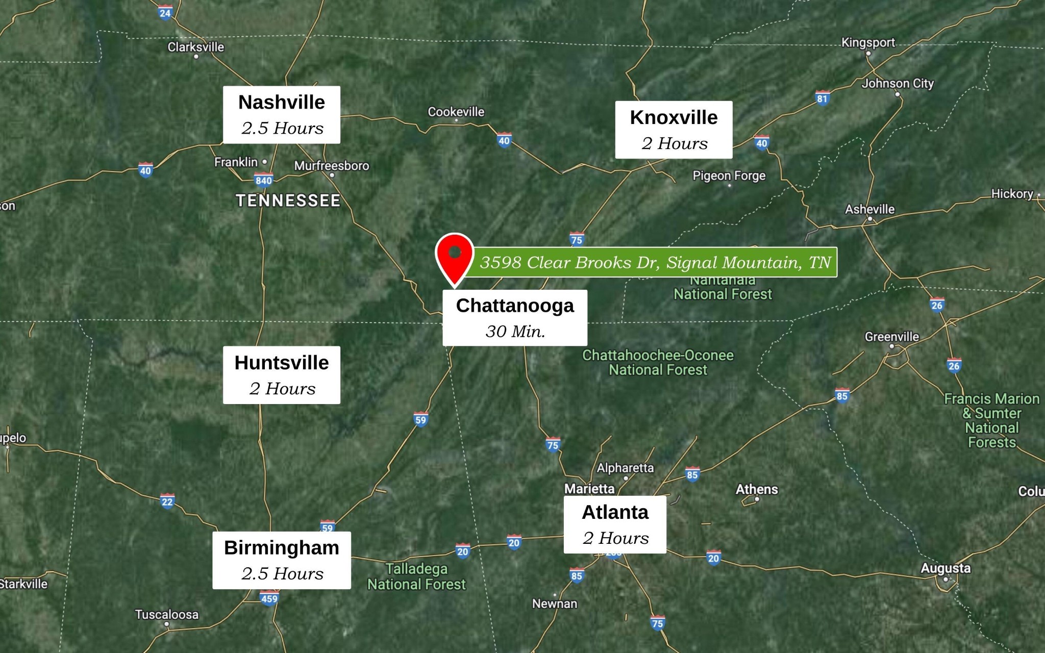 Watch Video: https://bit.ly/clearbrooks - METICULOUSLY MAINTAINED MOUNTAIN LIVING - Custom home in Signal Mountain's Grandview Community! With 5.24 ACRES, 4 beds, 3 baths, and bonus room, this home is perfect for homeowners seeking space, tranquility, and quality craftsmanship. SCREENED DECK with a stone fireplace and tongue-and-groove ceilings is a standout feature to enjoy fresh air with comfort! Most useful areas are on the main level with additional spaces upstairs. An open-concept layout with hardwood floors and 10+ foot ceilings in the entry and spacious living room with FIREPLACE and built-in bookshelves. The kitchen boasts wood cabinetry, island, stainless appliances, tile backsplash, and granite countertops. Versatile eating spaces with a formal dining room and a breakfast nook. Bright and beautiful main level primary ensuite offers natural light, deck access, tiled shower, soaking tub, dual vanities, and large walk-in closet. 2 additional bedrooms, full bath, and functional laundry room complete the main level. Upstairs includes a large BONUS room, bedroom, and full bath—perfect for a guest suite or private home office. Outdoor features include a 2-car garage, FENCED YARD, spacious covered front porch, and beautiful landscaping. Add a barn, detached garage, garden, and shed, and put your personal touch on this special property. Grandview community is a peaceful neighborhood with estate-size lots, wooded surroundings, and underground utilities. LOCATION: 15 minutes to Signal Mountain town center with Pruett's grocery, the Bread Basket, and the Golf and Country Club! Within 30 minutes of scenic downtown Chattanooga, for endless activities and entertainment. Tucked away from the road in the rear of the community, this home offers exceptional privacy, mountain charm, and outdoor living! Schedule your private tour today! (Buyer to verify square footage. Some images may be virtually staged.