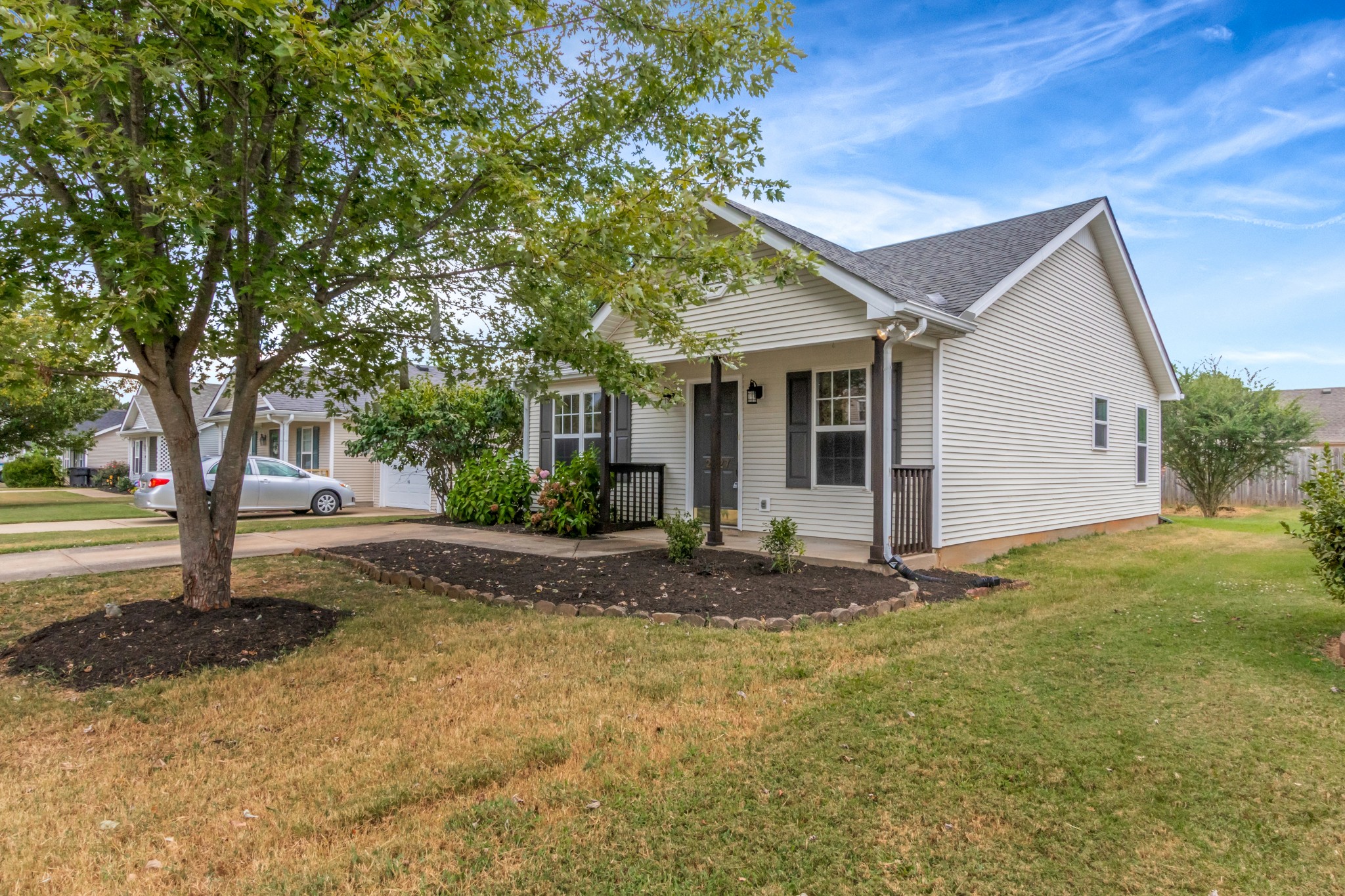 Located in an established neighborhood in Southeast Murfreesboro, this inviting home offers convenient access to I-24 and the wide array of dining, shopping, and everyday services along Hwy 231. Freshly updated throughout, it features all new flooring with soft carpet in the bedrooms and durable luxury vinyl plank in the main living areas, complemented by a light and airy neutral color palette that enhances the sense of space. A covered front porch adds charm and creates a welcoming entry, making this home a stylish and comfortable choice in a sought-after location.