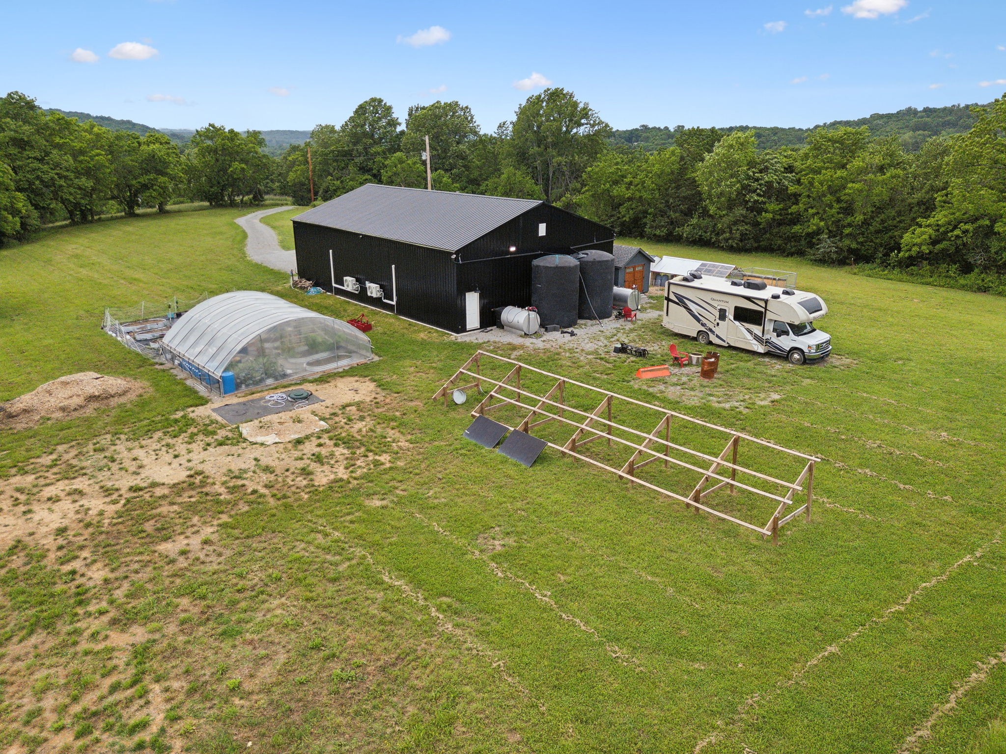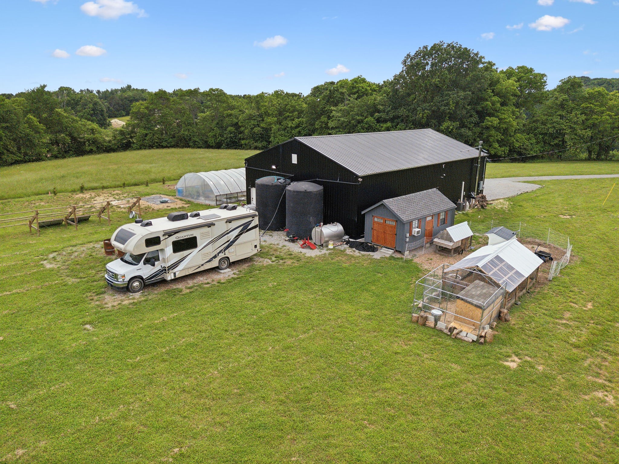 Who hasn't dreamed of having their own barndominium hidden away on beautiful acreage? Here's your opportunity for just that in a convenient location just to the west of Lewisburg and only 3 miles off I-65. Easy commute to Franklin, Spring Hill or Columbia. This 40x60 structure offers much flexibility in living arrangements. With the large door you could even park your RV inside! Huge storage area upstairs. Property has been surveyed so there is potential to divide into two 8+ acre tracts and build an additional 3 bedroom home. Septic has already been approved. Property features include gated entry, pasture, fruit & nut trees, greenhouse, solar panels(optional), storage building(optional) and a water catchment system to harvest rainwater.