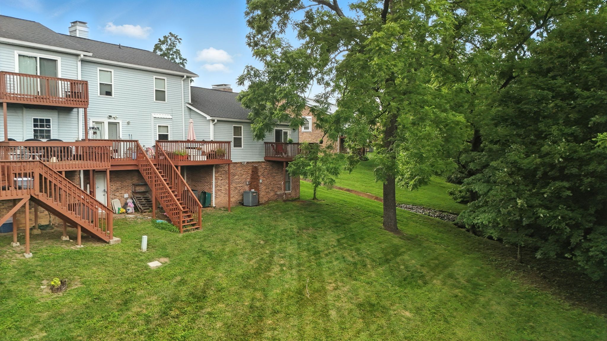 This end-unit offers abundant natural light & added privacy. Step onto the elevated back porch, perched two stories above the ground, and take in the peaceful view perfect for morning coffee or evening wind-downs. The alarm & camera system provide peace of mind, while the beautifully landscaped gardens add charm & curb appeal. Tucked into a quiet community with direct access to the Stones River Greenway through a private opening, this home is also walking distance to Two Rivers Dog Park—the largest and most vibrant dog park in the area. This condo blends comfort, location, & lifestyle in one turnkey package. Also has 300 sqft of unfinished basement with 10 foot ceilings on a concrete slab. Lots of storage!