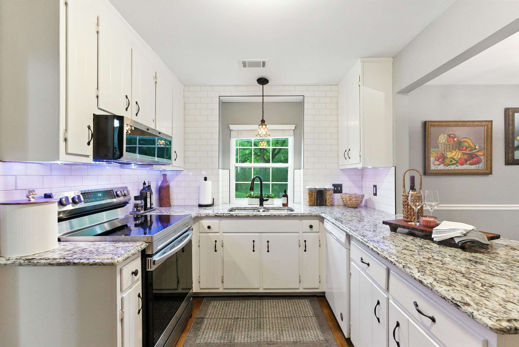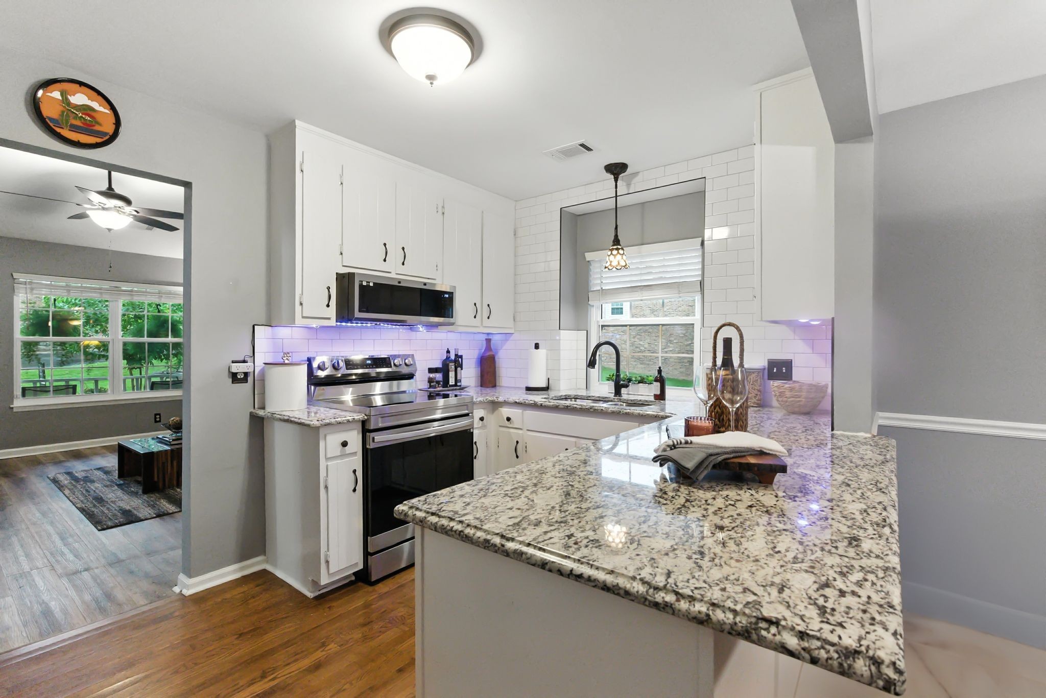Enjoy all-new laminate flooring, fresh paint, new windows, & modern blinds throughout. The kitchen has been fully renovated with granite countertops, new appliances & updated hardware. Both bathrooms feature elegant finishes including new tubs, toilets, vanities with marble countertops & stylish lighting. All ceiling fans, light fixtures, cabinet hardware & door handles have also been replaced for a clean, modern aesthetic.