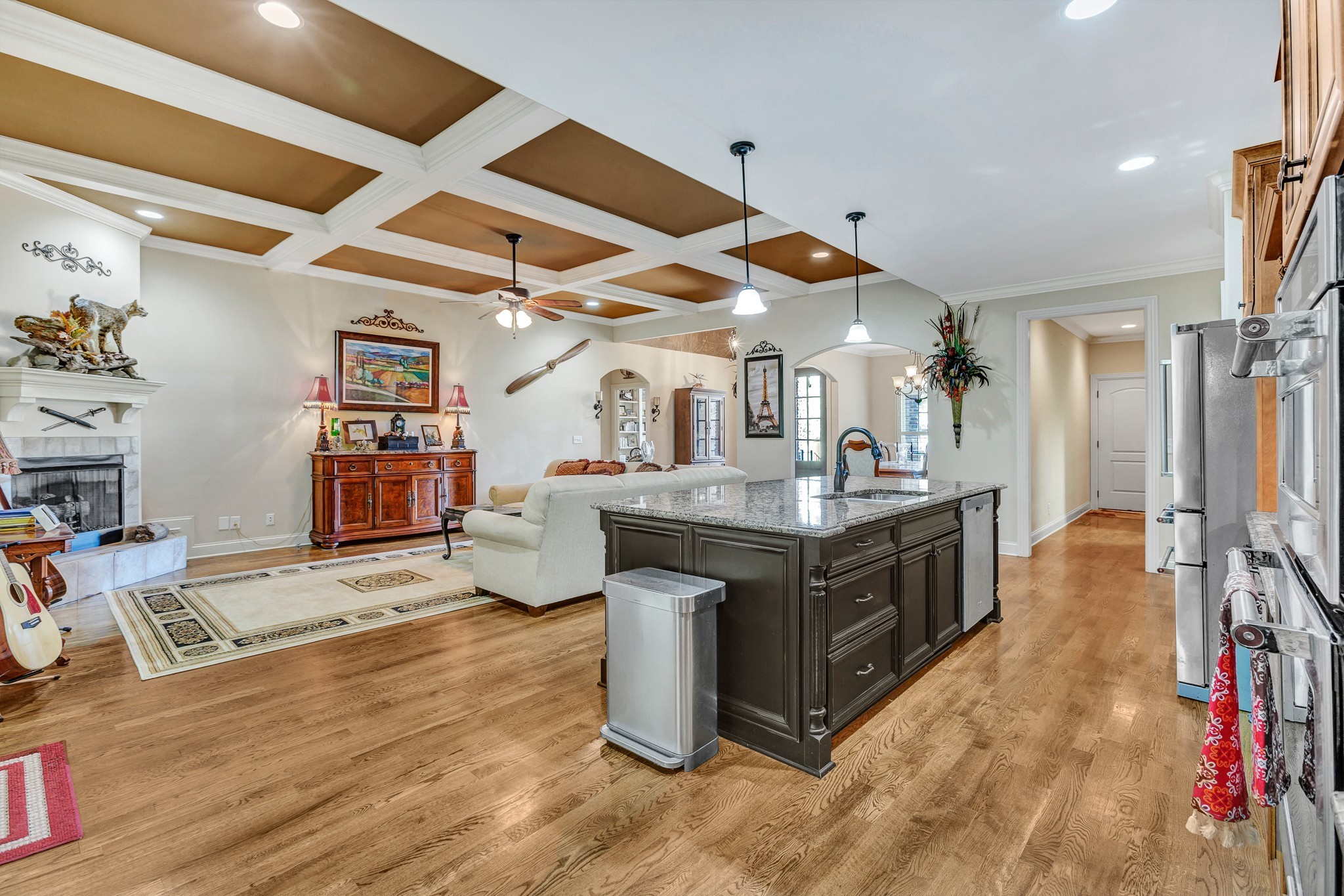 Custom-built brick home on 1-acre with PRIVATE LAKE ACCESS to Old Hickory Lake. Ideally located with an easy commute to Nashville and Wilson County, this home offers both convenience and serenity with peaceful lake view from back yard and deck. NO HOA, so park your boat on the oversized driveway, around the corner from LOCK 4 public boat ramp, Gallatin Marina, and Lock 4 Park & Bike trails. A Must See with 5 BR's, 3 Baths, rich Finished Wood Floors & cabinets, an inviting foyer with faux painted barrel ceiling, coffered ceiling in living room, and tray ceilings in formal dining, breakfast room, and primary bedroom. PLANTATION SHUTTERS throughout, Spacious kitchen with an island perfect for gathering and entertaining. A covered deck with walk-down stairway leads to a carport and double doors opening to spacious crawl space for extra storage. This property is eligible for your own private path permit directly to lake.