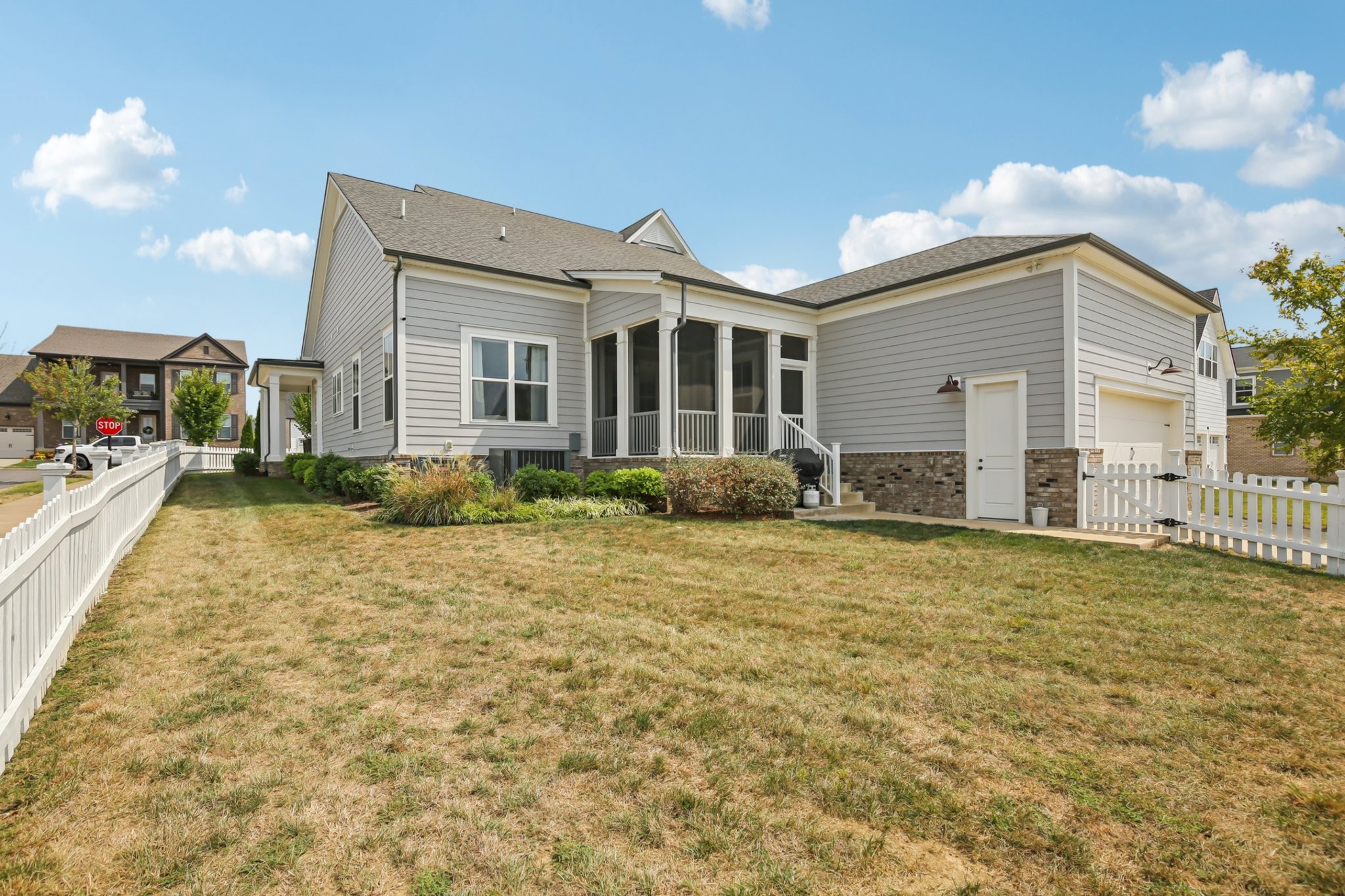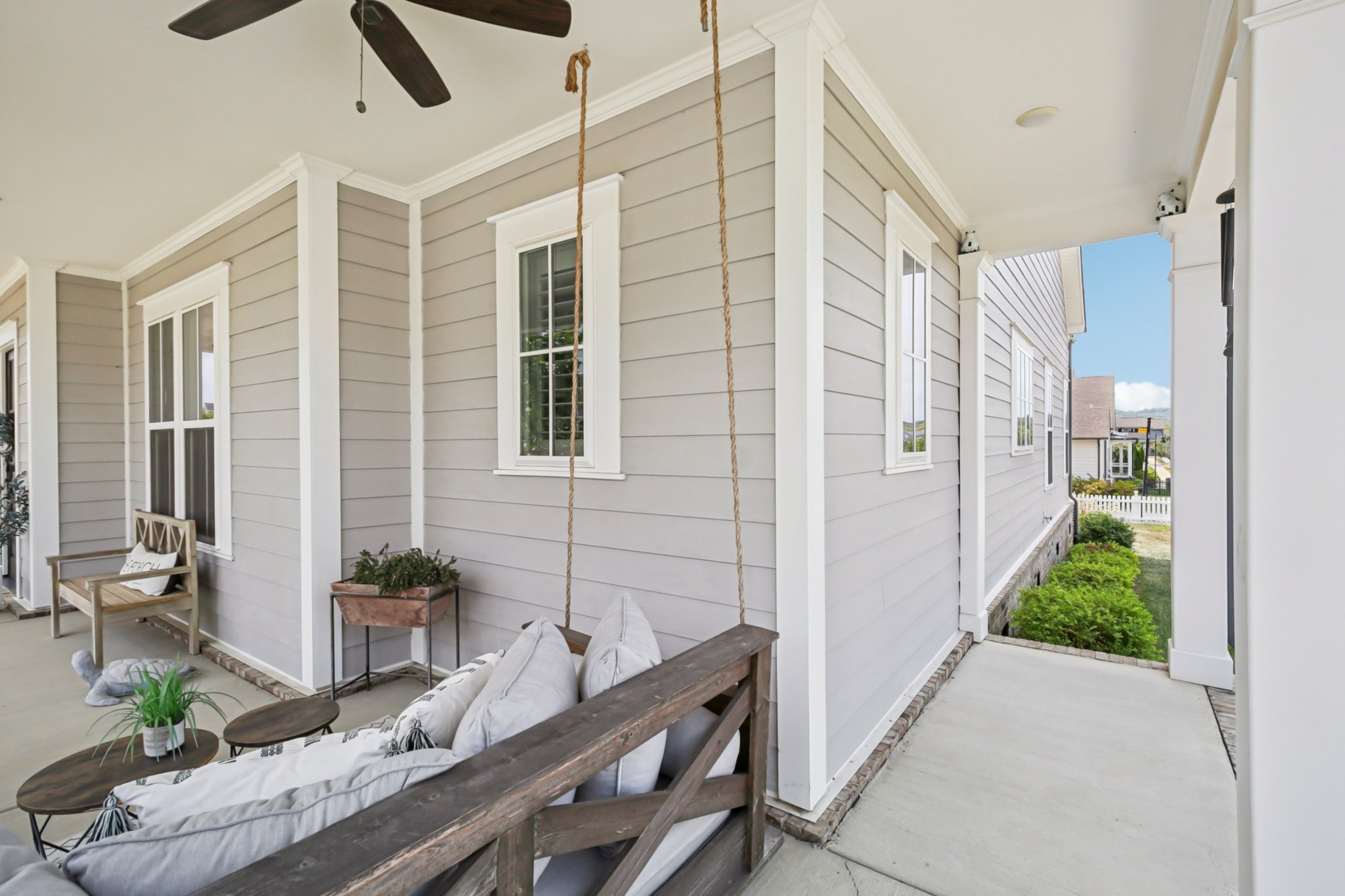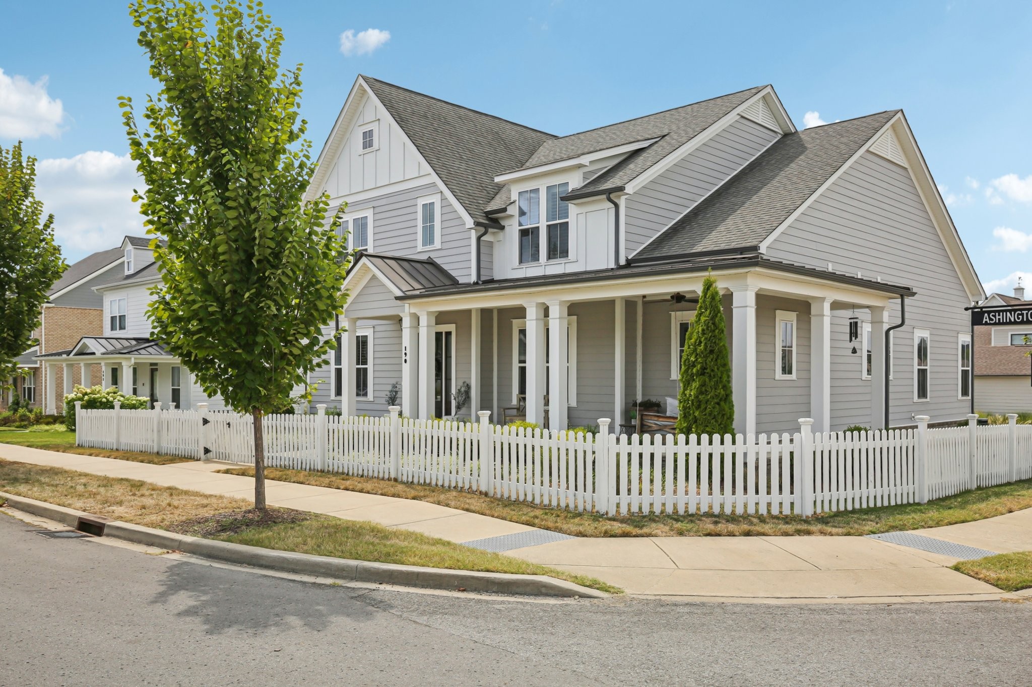 Welcome to this beautifully crafted home with a harmonious blend of style, space, and functionality--offering an exceptional living experience in a fantastic neighborhood. As you walk up, you'll be greeted by a classic wrap-around front porch, offering a welcoming space to enjoy your morning coffee. The front and back yards are fully enclosed with a picturesque white picket fence, providing both privacy and a charming aesthetic.For those who enjoy cooking or hosting, the home’s layout is both functional and inviting. The kitchen connects effortlessly to 2 dining areas, the cozy living room, & a private outdoor space, making entertaining a breeze. Don't miss the fabulous community amenities at the Farmhouse - fitness center, playground, community pool, & ability to reserve space for events/meetings.