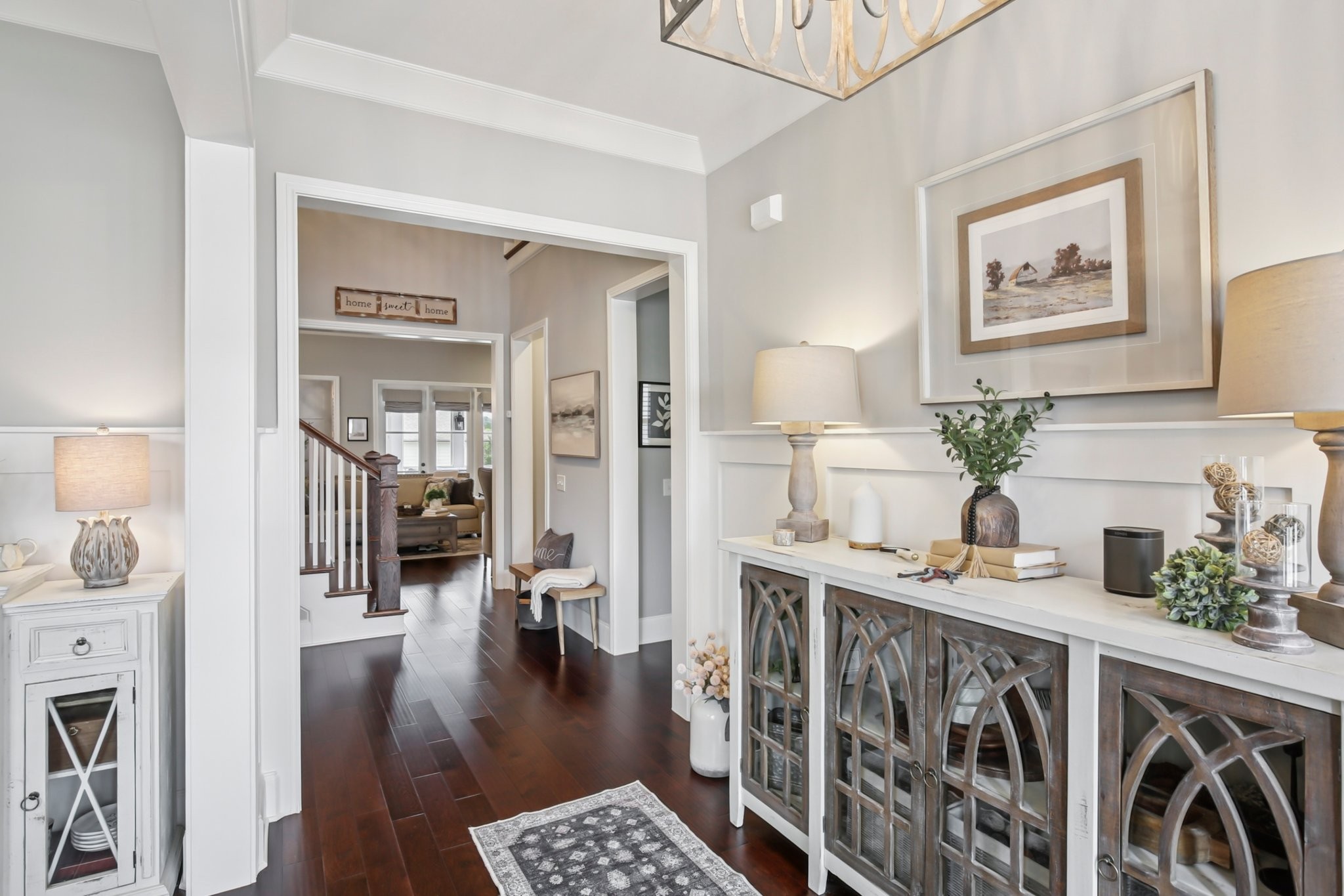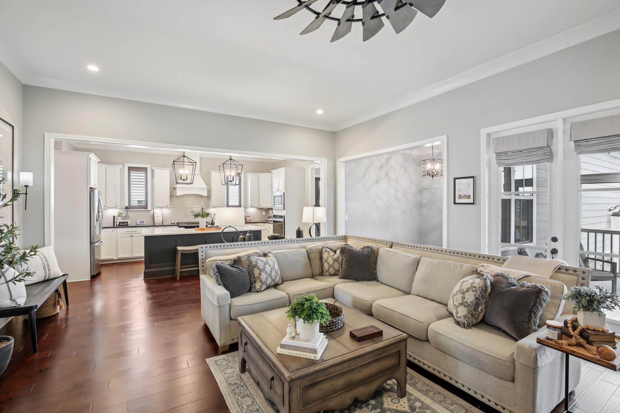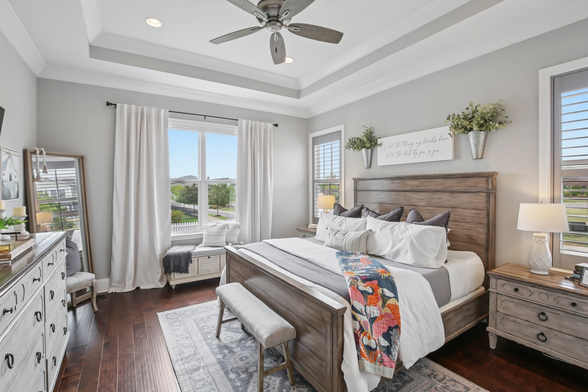 Welcome to this beautifully crafted home with a harmonious blend of style, space, and functionality--offering an exceptional living experience in a fantastic neighborhood. As you walk up, you'll be greeted by a classic wrap-around front porch, offering a welcoming space to enjoy your morning coffee. The front and back yards are fully enclosed with a picturesque white picket fence, providing both privacy and a charming aesthetic.For those who enjoy cooking or hosting, the home’s layout is both functional and inviting. The kitchen connects effortlessly to 2 dining areas, the cozy living room, & a private outdoor space, making entertaining a breeze. Don't miss the fabulous community amenities at the Farmhouse - fitness center, playground, community pool, & ability to reserve space for events/meetings.