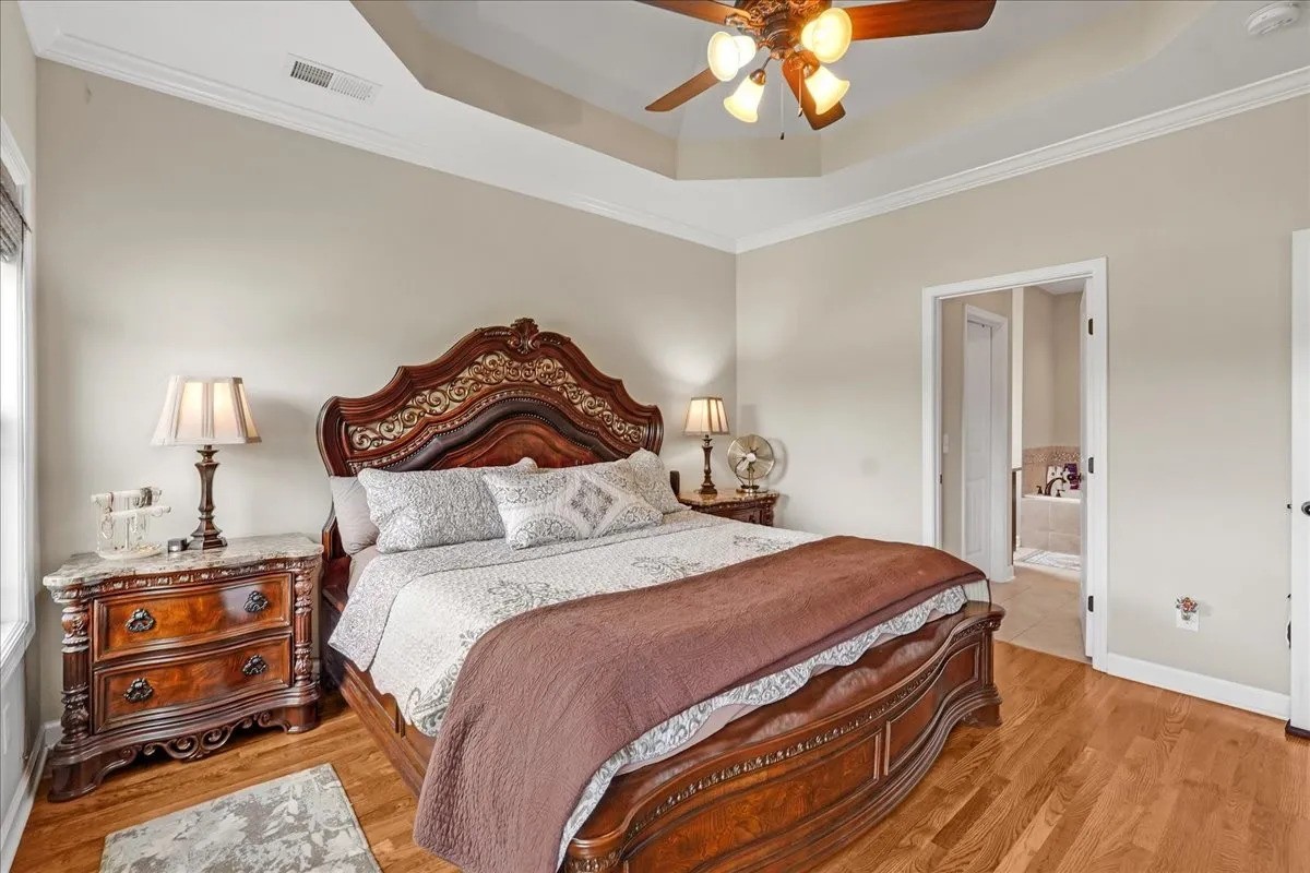 The master bedroom boasts gorgeous high ceilings and a luxurious ensuite bathroom with a tiled walk-in shower and a separate soaking tub—your own private retreat. The secondary bedrooms offer large closets and plenty of space for comfort and functionality.