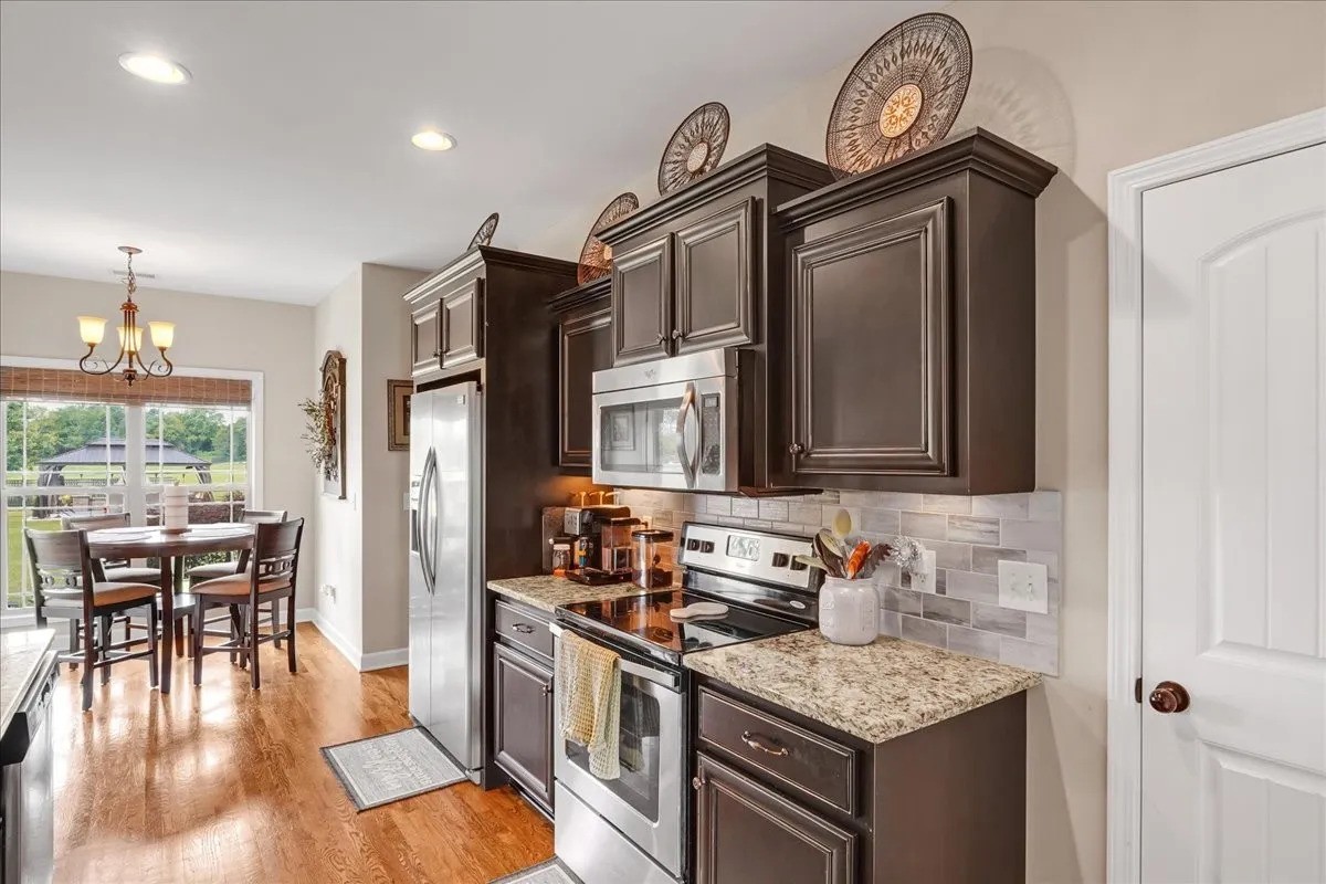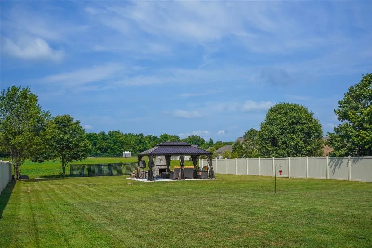 Enjoy the elegance of hardwood floors throughout and the ease of a fully fenced yard with top-grade vinyl fencing for added privacy. Outdoor living is elevated with a covered patio, a covered gazebo, and a charming outdoor brick fireplace, all set on its own concrete slab—perfect for gatherings year-round.