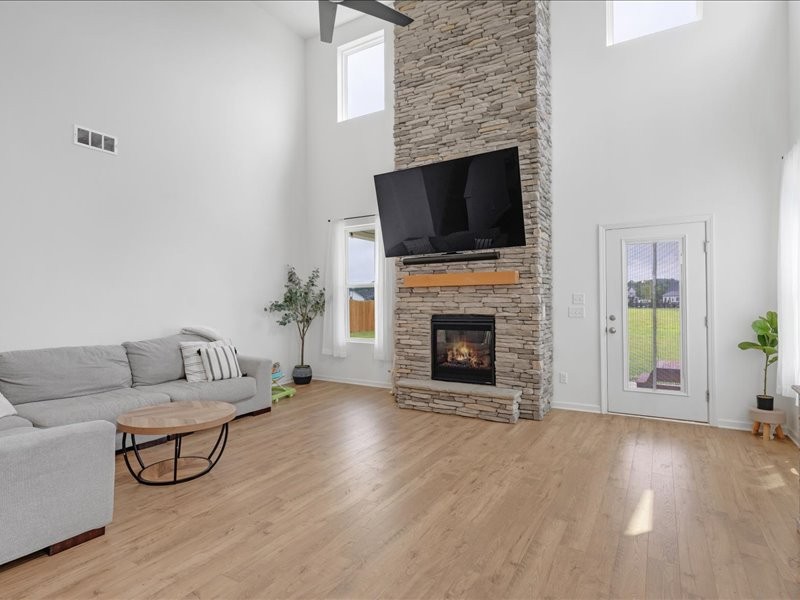 Highly Sought Dogwood Plan. Largest Floorplan in Community with over 3300 sq feet. Mt. Juliet Schools. Currently sold out in neighborhood. Instant value. Beautiful and well-maintained Home perfect for family. Features a primary suite with full bathroom and walk in shower, separate soaking tub, double sinks, and large walk-in closet on the main level. In addition to the primary, the main floor of the home has a formal dining room/office space and butler’s pantry, with large living space. High ceilings and nice open concept. Quartz Countertops, Backsplash Tile, Hardwood Flooring, Jack and Jill Bathroom upstairs. Elegant show-stopping floor to ceiling stone fireplace. Enjoy cozy nights by the fire inside and out. Back porch has extended concrete patio perfect for entertaining and fire pit. Upstairs you will find a spacious loft area, 2 bathrooms, and 4 bedrooms – each with their own walk-in closet. Garage is wired for an electric car voltage outlet if desired. Waverly features an amenity center that is a very short walk from home, with state-of-the-art fitness center, pool, outdoor showers, farmers pavilion, playground, and walking trails.