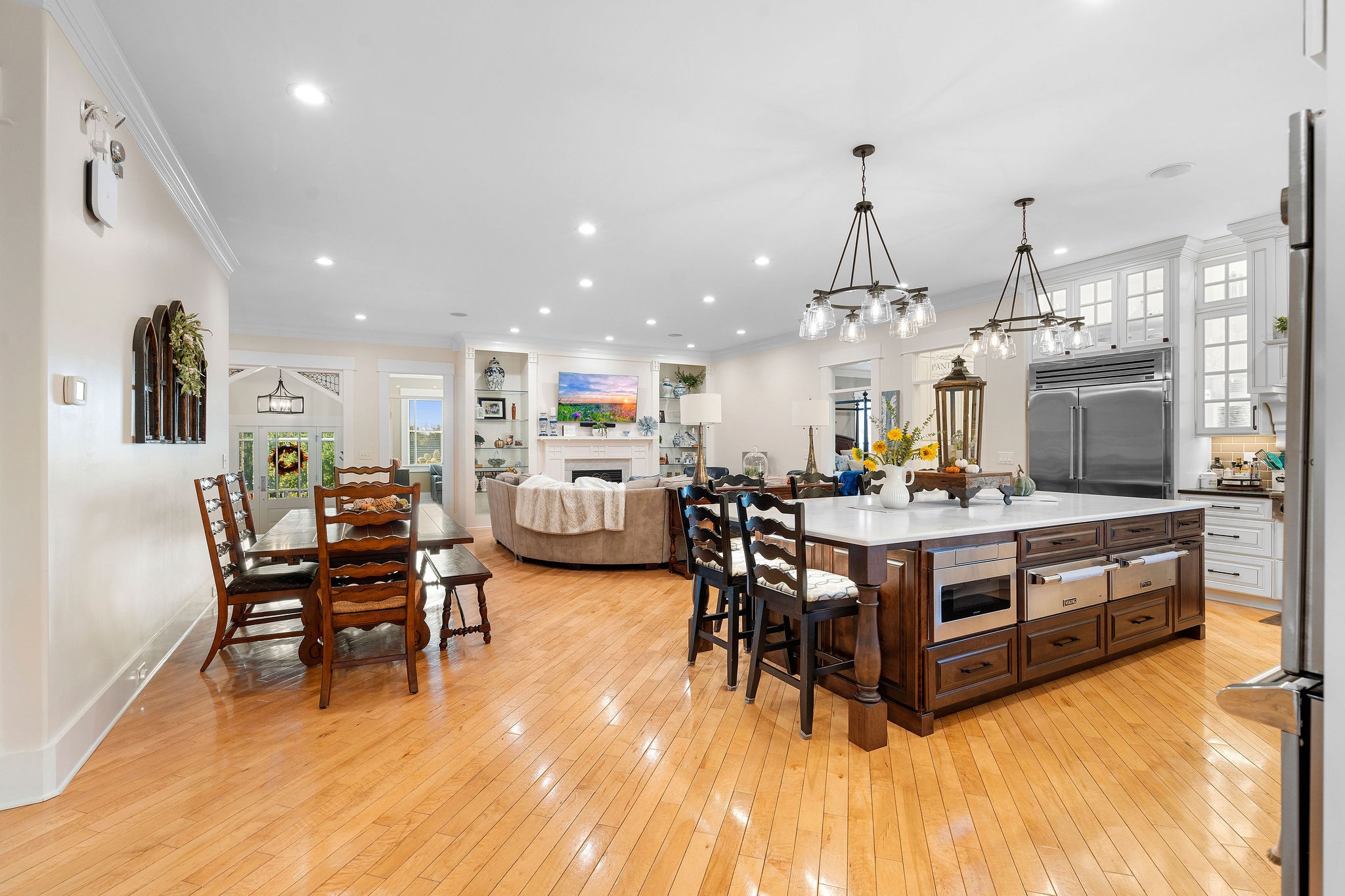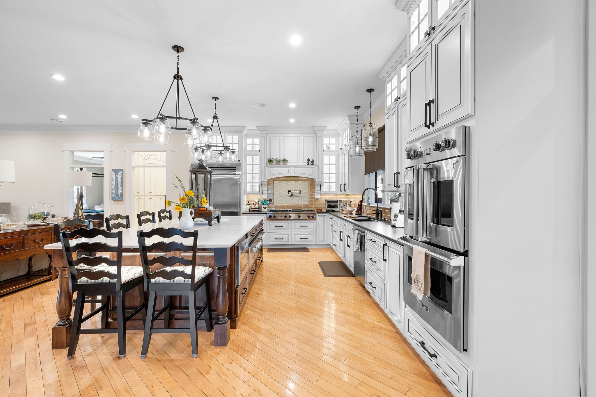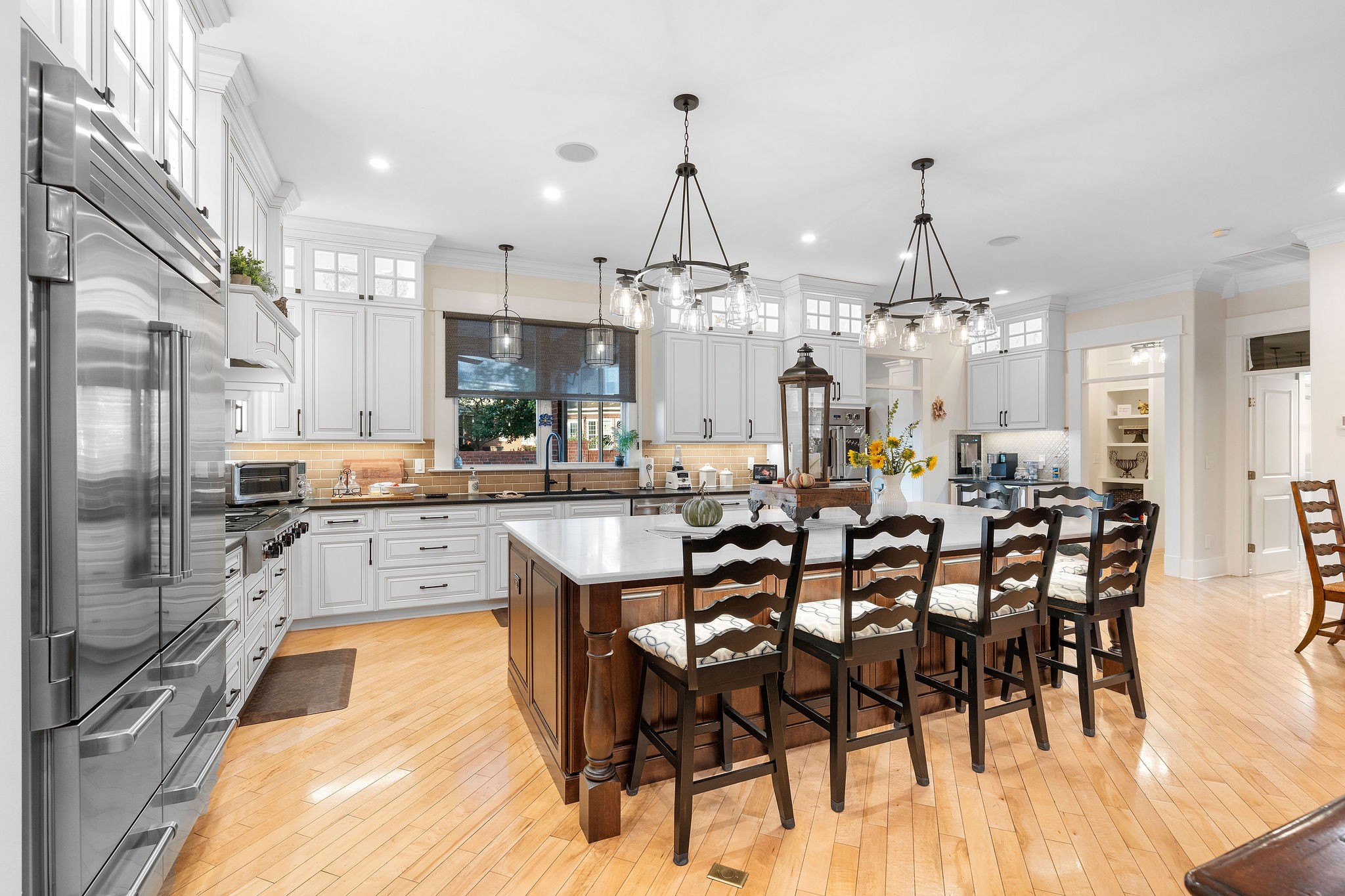 Exquisite Estate in Franklin!! Welcome yourself home through a grand entryway, and step through stunning glass french doors into your private office. Floor-to-ceiling bookshelves fill the walls, and beg for your belongings. Continue on and Enter to a kitchen that any Chef would aspire towards. Tastefully appointed with not a penny spared turning this kitchen into the one of dreams. Carefully planned with Sub-Zero & Viking appliances, masterful craftsmanship and elegant/timeless designs, this kitchen flows effortlessly. Comfort was in mind when the builder completed the home, with all the extra touches including: wired speakers throughout, storage cabinets expertly placed, pot filler & pellet ice machine, and a built-in coffee bar (water chiller/filler added). As well as a bathroom for every bedroom, and a turn-key in-law/guest suite in a Rare Franklin basement, nothing is left to be desired. The primary Bath Suite is finished with a clawfoot soaking tub, open entry shower, and heated granite floors! With a Brand New whole home generator/transfer switch, and surge protector, never be without power. With a spacious and private backyard oasis, make it your own paradise. Low maintenance landscaping with ready piped Irrigation, Wired outside for Hot tub, outdoor speakers, and a gas fireplace/grill! Plenty of room for toys in the 3 car garage complete with storage and organizational built-ins. This home doesn't need anything due to its meticulous upkeep and maintenance and ample storage space. With New Hvac Units, Tankless Water heater, Central-Vac, Newer roof, gas fire-pit, hardwoods, Walk-in Crawlspace storage, garage attic, and a Safe-Room, worry-free living can be realized!!