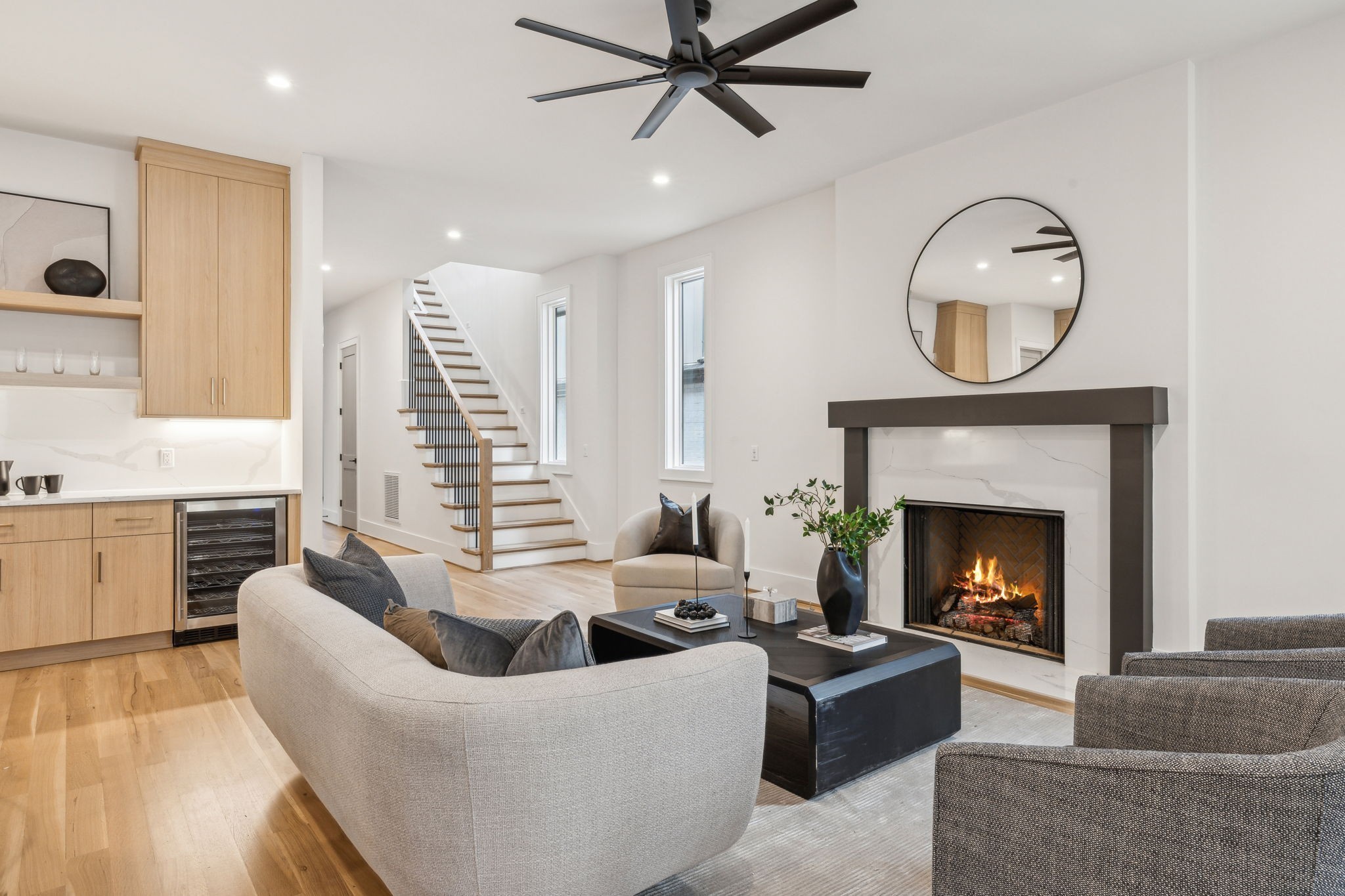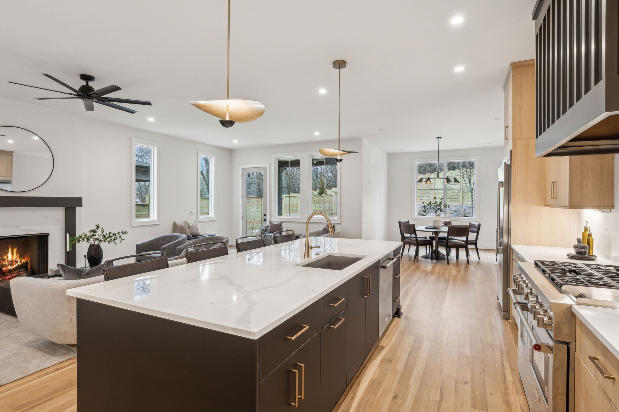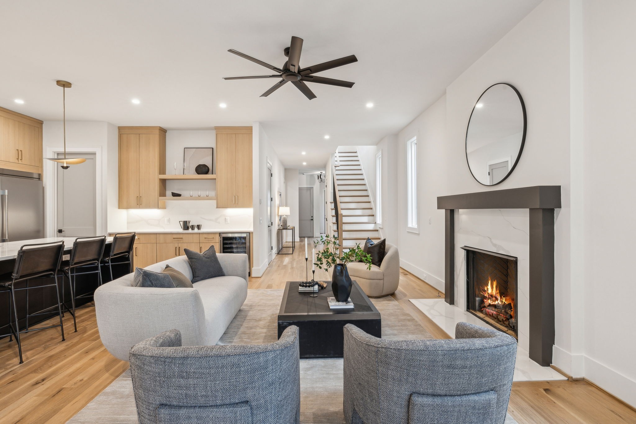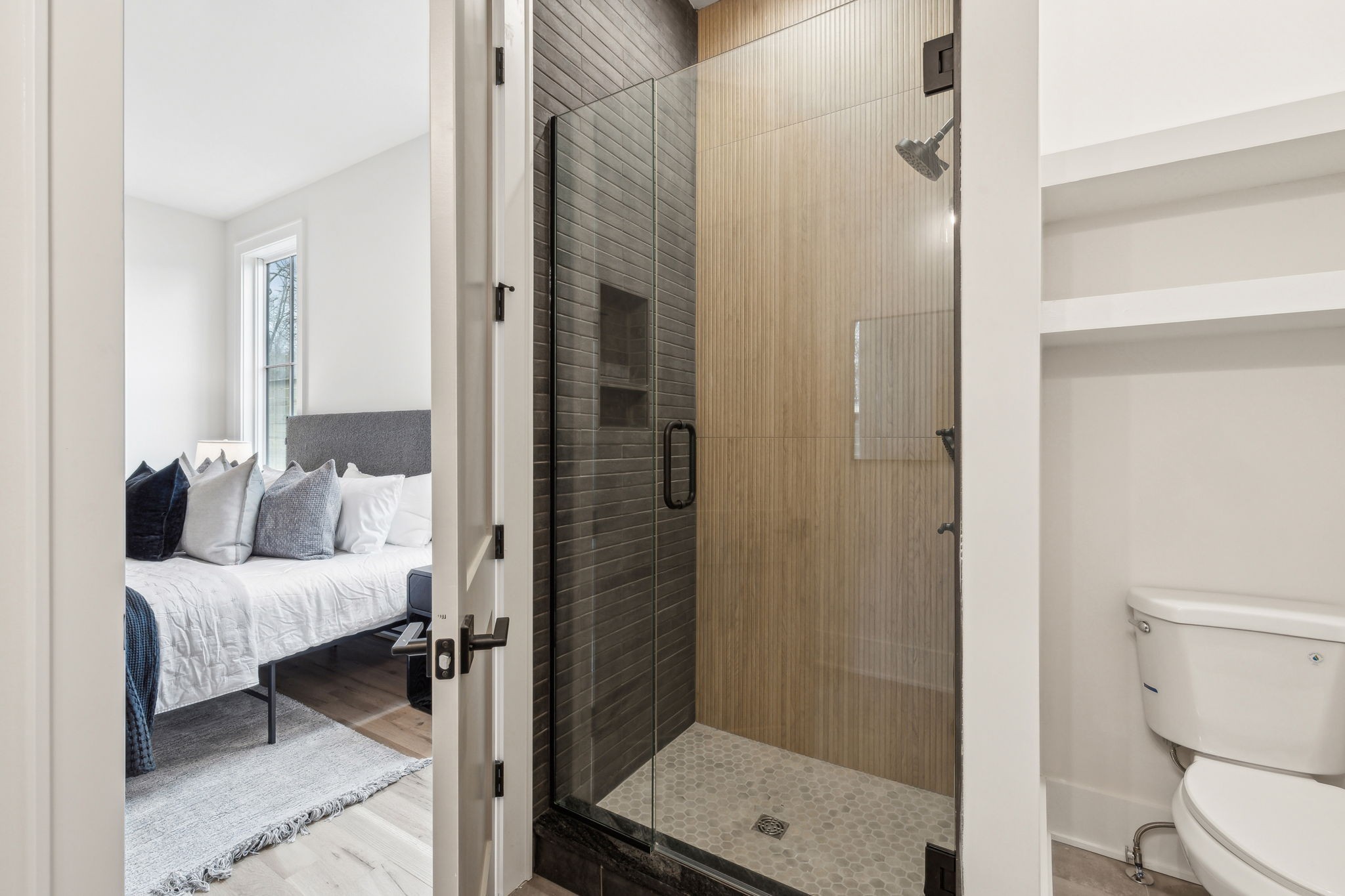 Introducing one of two exquisite new construction homes in Hillwood Terrace! The home features a covered front porch, light filled foyer, and living area with a beautiful fluted gas fireplace. The kitchen boasts a large island, quartz countertops, wet bar, huge walk-in pantry, and looks out over the living and dining areas. Gorgeous finishes can be found in the spacious primary suite en-suite bathroom and includes a large walk-in closet, along with an attached laundry room for convenience. Two additional bedrooms with en-suite baths, and gathering/bonus area upstairs. Guest suite or dedicated office space on main. Outside, relax on the covered porch overlooking the fenced backyard with a private fire pit area! Conveniently located just minutes from some of Nashville's most sought-after destinations, this property offers easy access to MBA, Vanderbilt University, and I-40 for quick commutes around the city. Shopping and dining are a breeze with Trader Joe's and Target just a short drive away. Whether you're heading to work, school, or grabbing a quick grocery run, this location provides the perfect balance of tranquility and accessibility. Don't miss your chance to own one of these stunning homes in the heart of Hillwood Terrace!