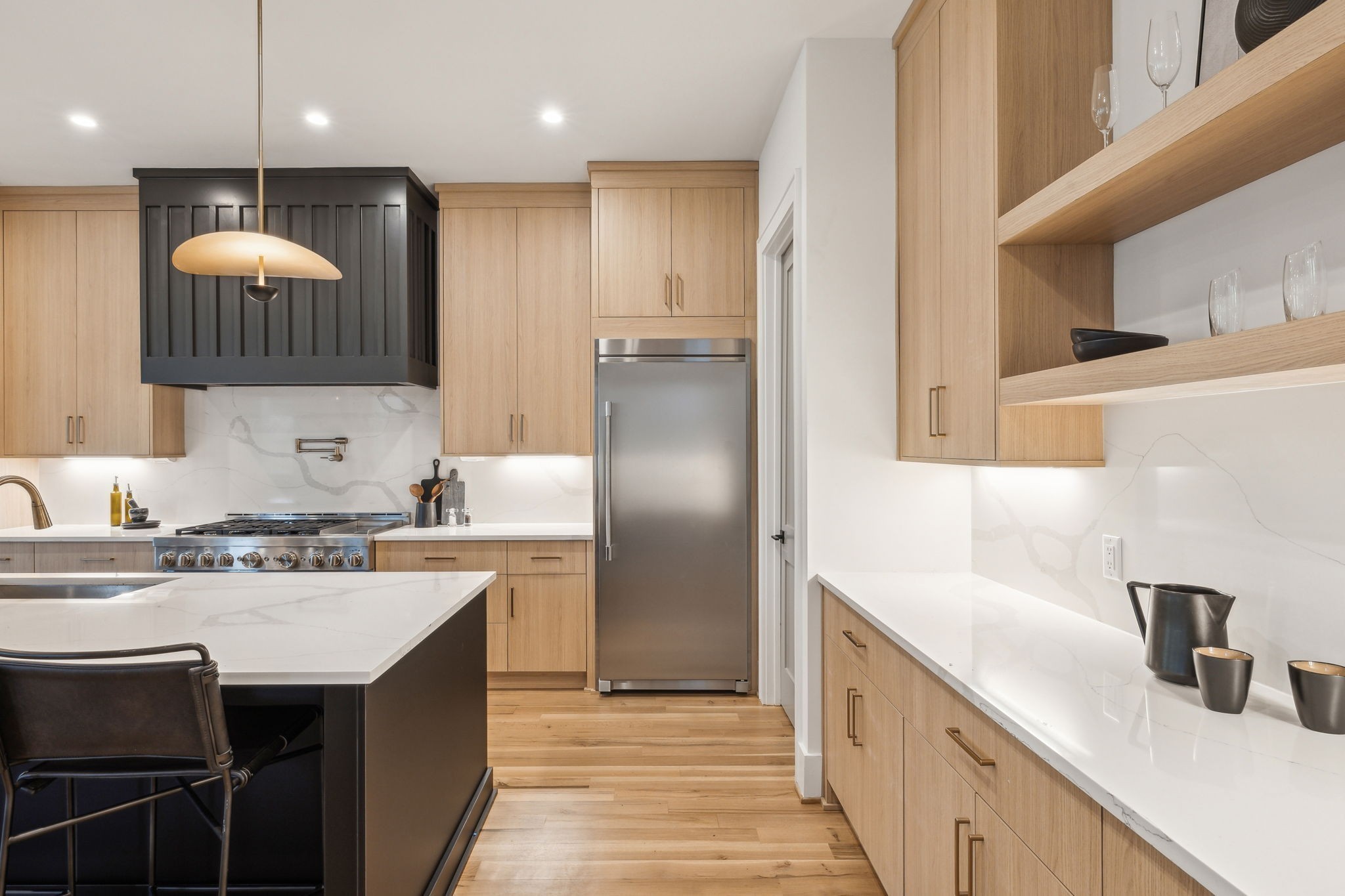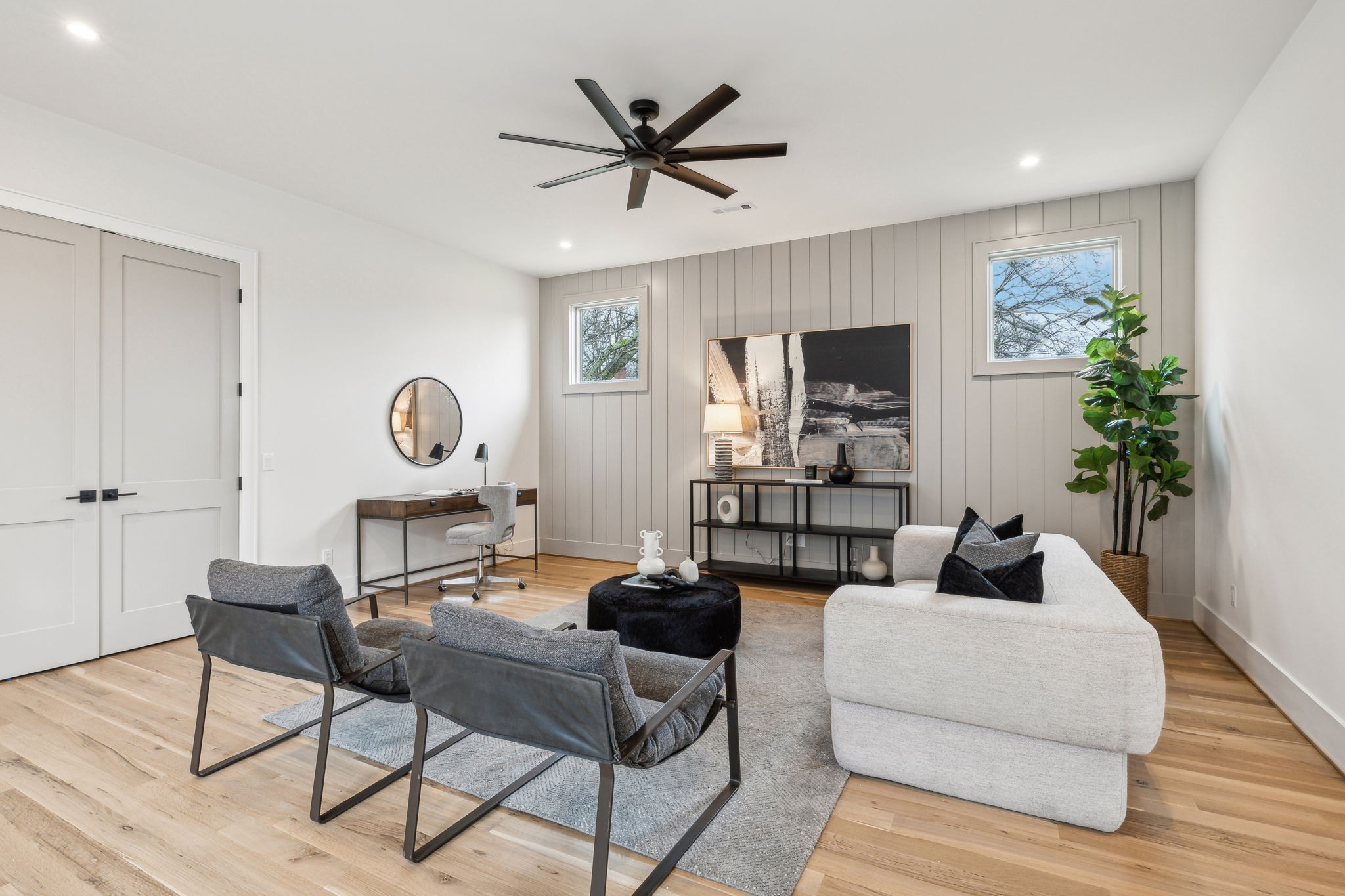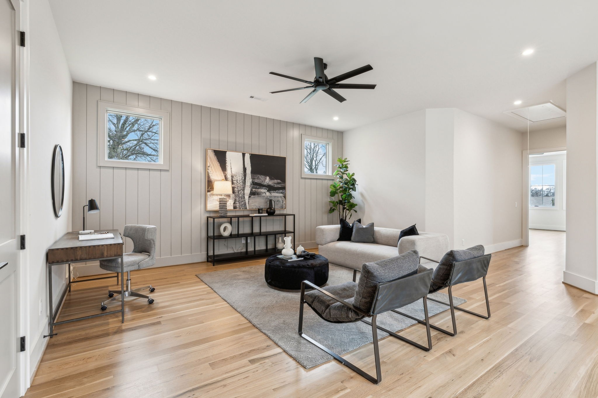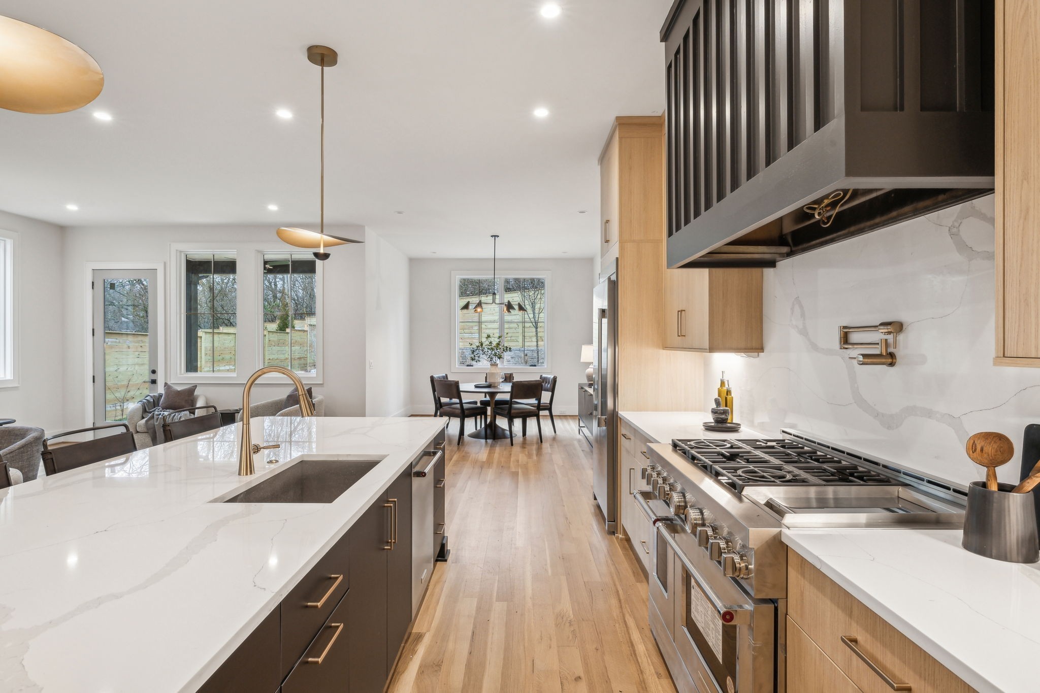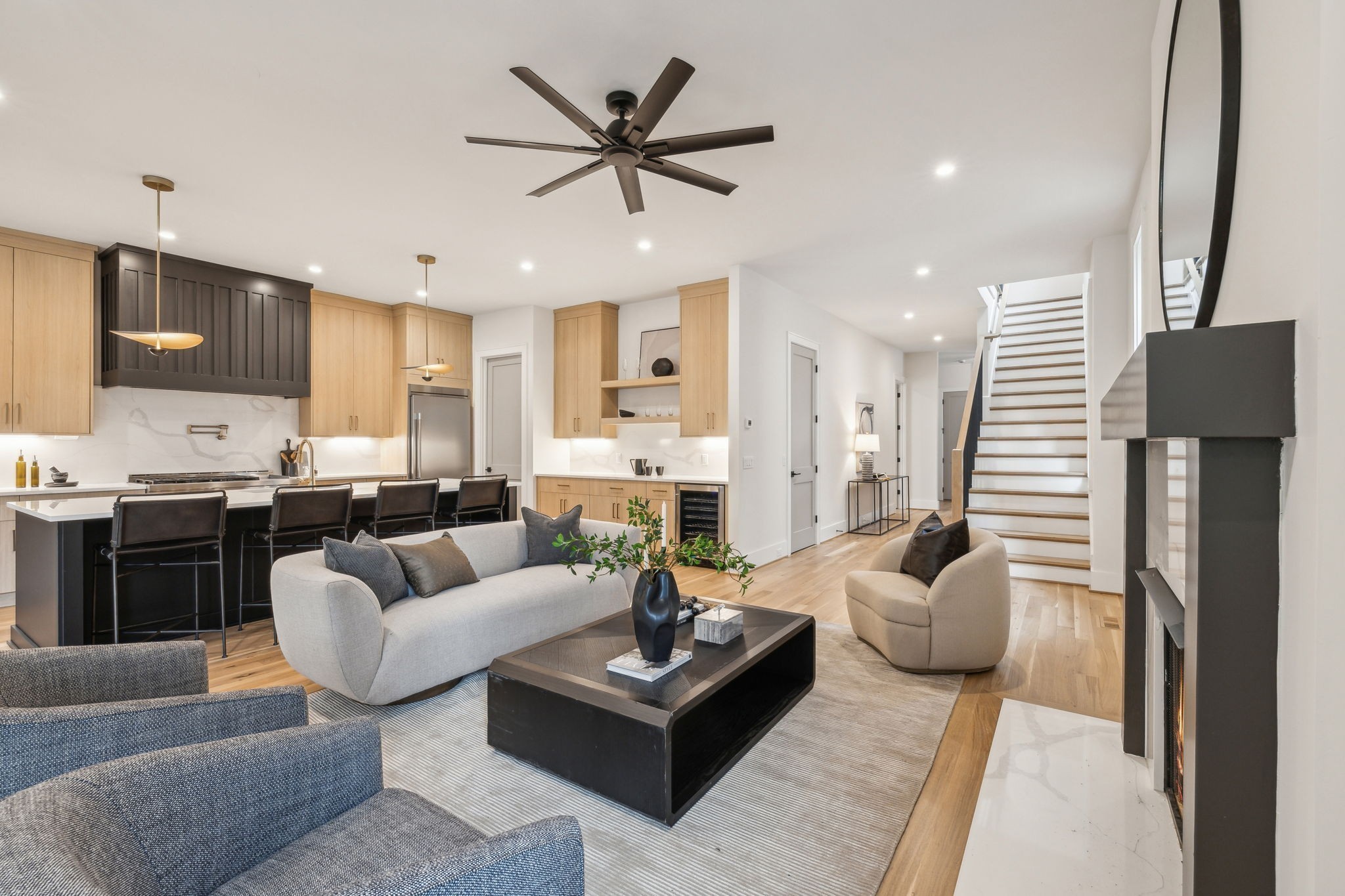 Introducing one of two exquisite new construction homes in Hillwood Terrace! The home features a covered front porch, light filled foyer, and living area with a beautiful fluted gas fireplace. The kitchen boasts a large island, quartz countertops, wet bar, huge walk-in pantry, and looks out over the living and dining areas. Gorgeous finishes can be found in the spacious primary suite en-suite bathroom and includes a large walk-in closet, along with an attached laundry room for convenience. Two additional bedrooms with en-suite baths, and gathering/bonus area upstairs. Guest suite or dedicated office space on main. Outside, relax on the covered porch overlooking the fenced backyard with a private fire pit area! Conveniently located just minutes from some of Nashville's most sought-after destinations, this property offers easy access to MBA, Vanderbilt University, and I-40 for quick commutes around the city. Shopping and dining are a breeze with Trader Joe's and Target just a short drive away. Whether you're heading to work, school, or grabbing a quick grocery run, this location provides the perfect balance of tranquility and accessibility. Don't miss your chance to own one of these stunning homes in the heart of Hillwood Terrace!