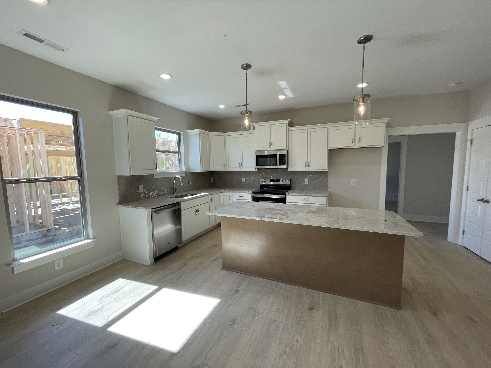 Enjoy one-level living in the Grant floor plan at The Paddock at Kennesaw Farms! This all-brick, 2-bedroom, 2-bath home offers 1,689 sq ft of thoughtfully designed space. The selections package features luxury laminate flooring in main areas, plush carpet in bedrooms, and designer tile in baths. The open-concept layout includes a spacious living room with gas fireplace, a formal dining room, and a gourmet kitchen with quartz countertops, white cabinetry, a tile backsplash, stainless appliances, and an island. The primary suite boasts a walk-in closet and a private bath with quartz vanity and shower. Additional highlights include a flex room, wainscoting in the foyer, upgraded lighting, and a rear-entry 2-car garage. Stylish exterior details and full irrigation add curb appeal. Ask us about our preferred lender and seller incentives!