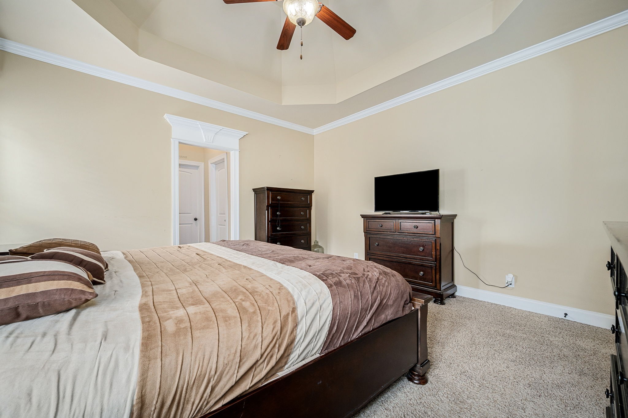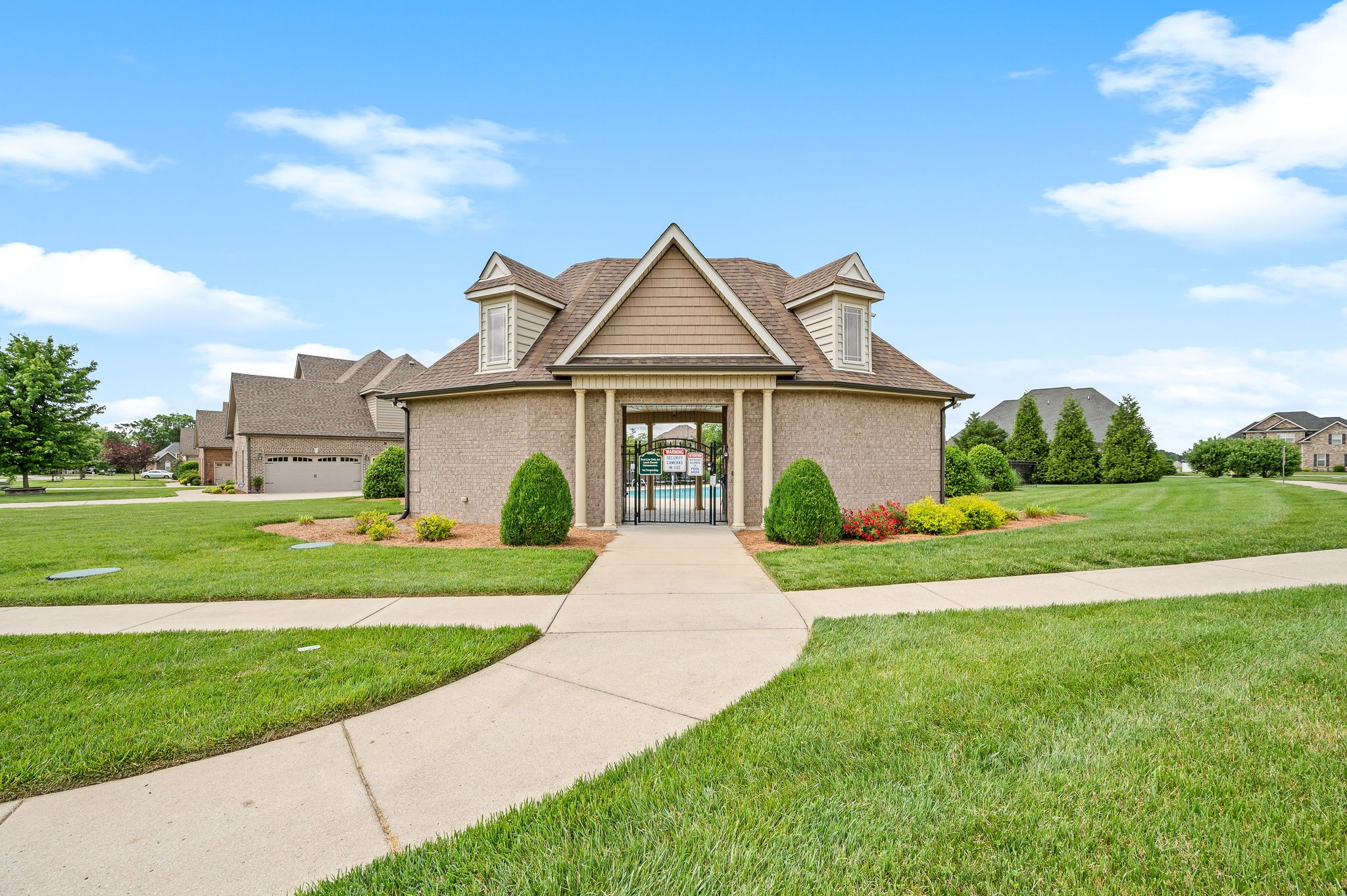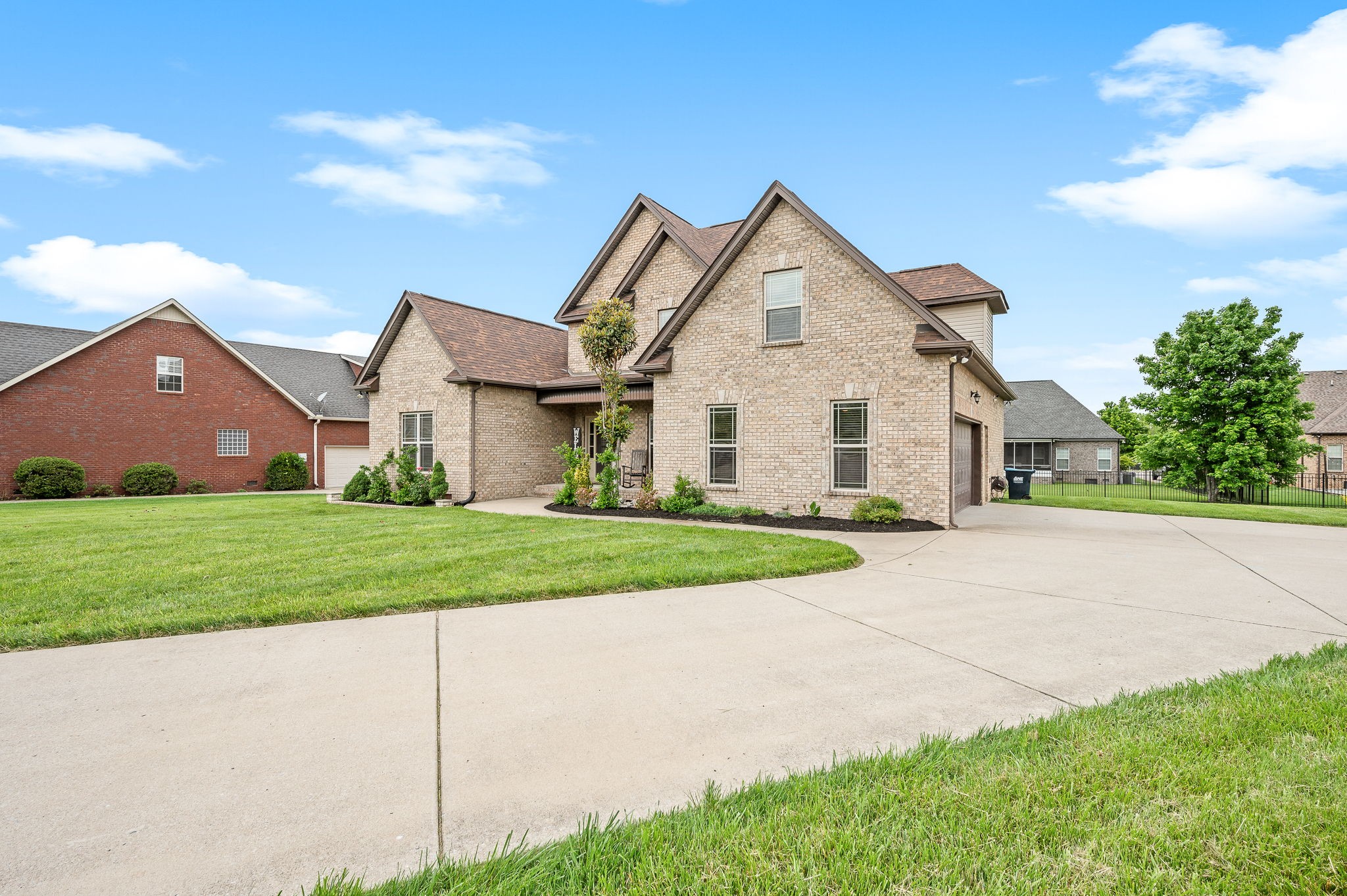 This elegant 4-bedroom, 3-bath all-brick home sits on a quiet cul-de-sac in one of the area’s most desirable neighborhoods. With 2 bedrooms on the main level and 2 upstairs, the layout offers both comfort and function. Highlights include a tiled walk-in shower, granite countertops, custom cabinetry with under-cabinet lighting, detailed trim work, and decorative columns throughout. The spacious bonus room with wet bar is perfect for entertaining. Step outside to the patio with a brick fireplace ideal for year-round enjoyment.