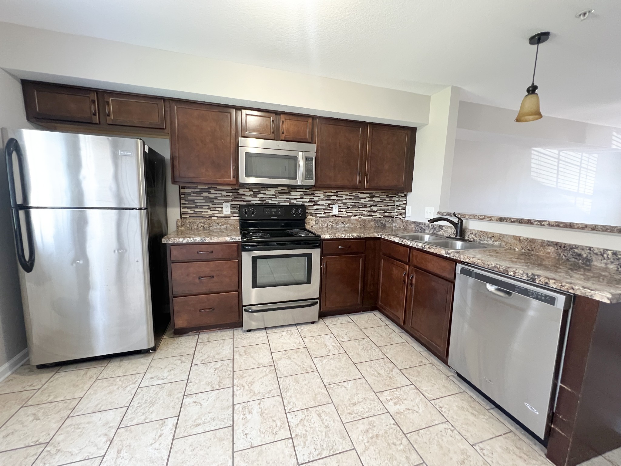 First month FREE with a 13-month lease! Welcome home to this beautifully designed 2-bedroom, 1.5-bathroom townhome! The main floor features a bright and open layout with a convenient half bathroom, perfect for guests. The modern kitchen comes equipped with stainless steel appliances, a high-top bar for additional seating, and a full-size washer and dryer tucked neatly into the laundry closet.