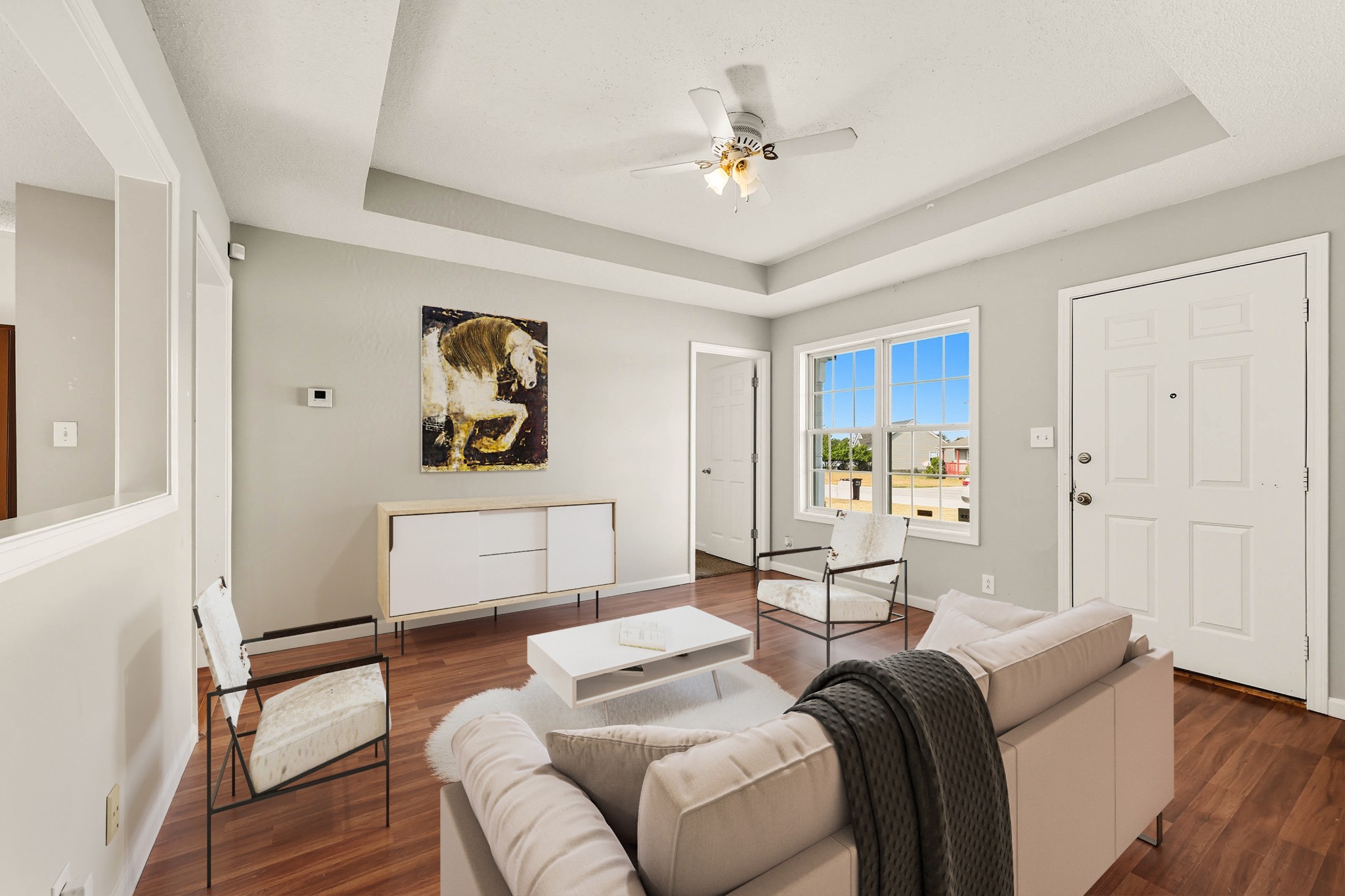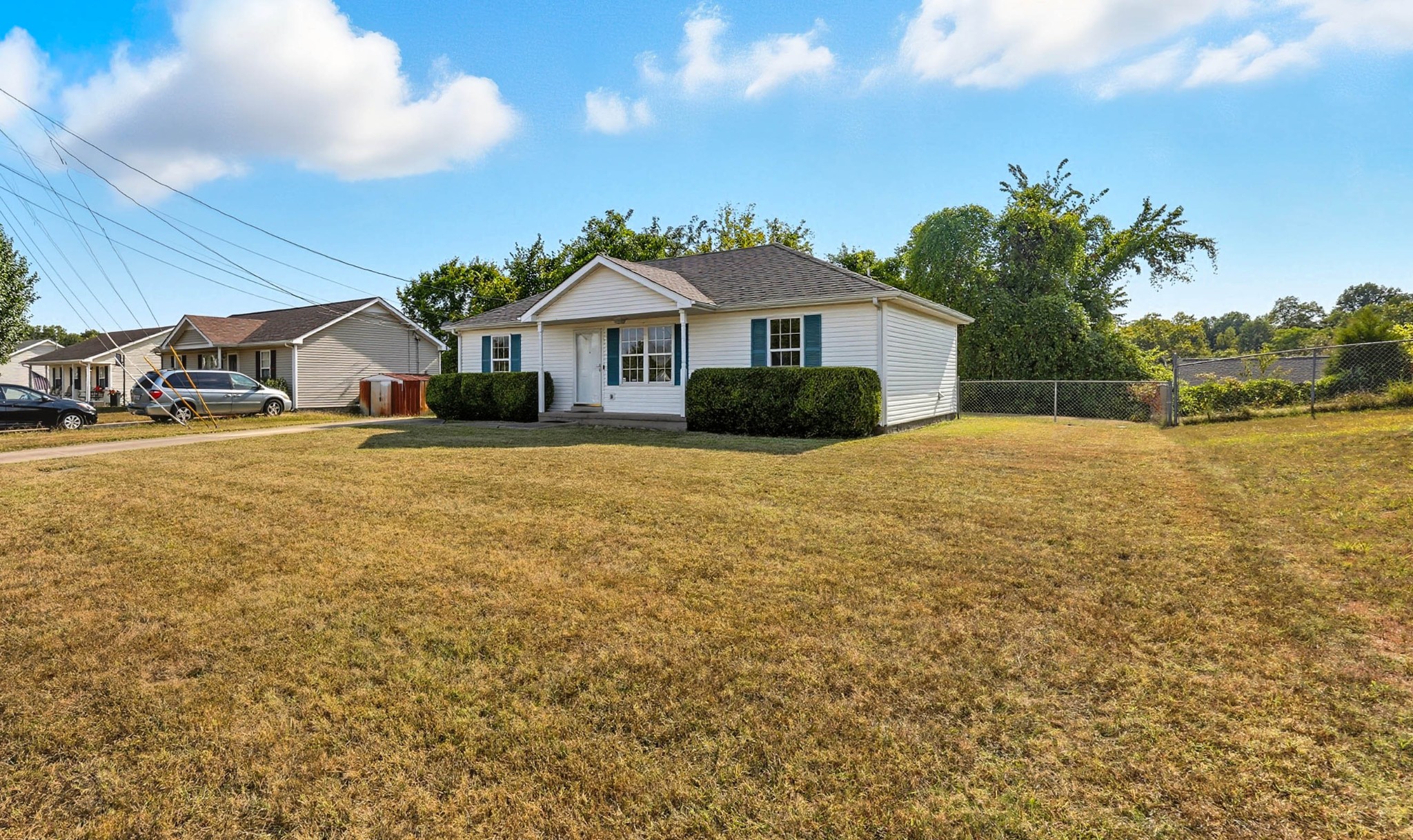 Move-in ready and vacant! This charming single-level home offers a bright and welcoming layout with freshly painted interiors, a spacious living room, and a functional kitchen featuring an updated backsplash and a stainless steel refrigerator. The home includes a dedicated laundry area and comfortable bedrooms with good closet space. Outside, enjoy a large fenced backyard—perfect for pets, play, or entertaining—plus a private patio for relaxing evenings. Conveniently located near shopping, dining, and Fort Campbell, this home is ideal for first-time buyers or anyone seeking a great investment opportunity in Clarksville.