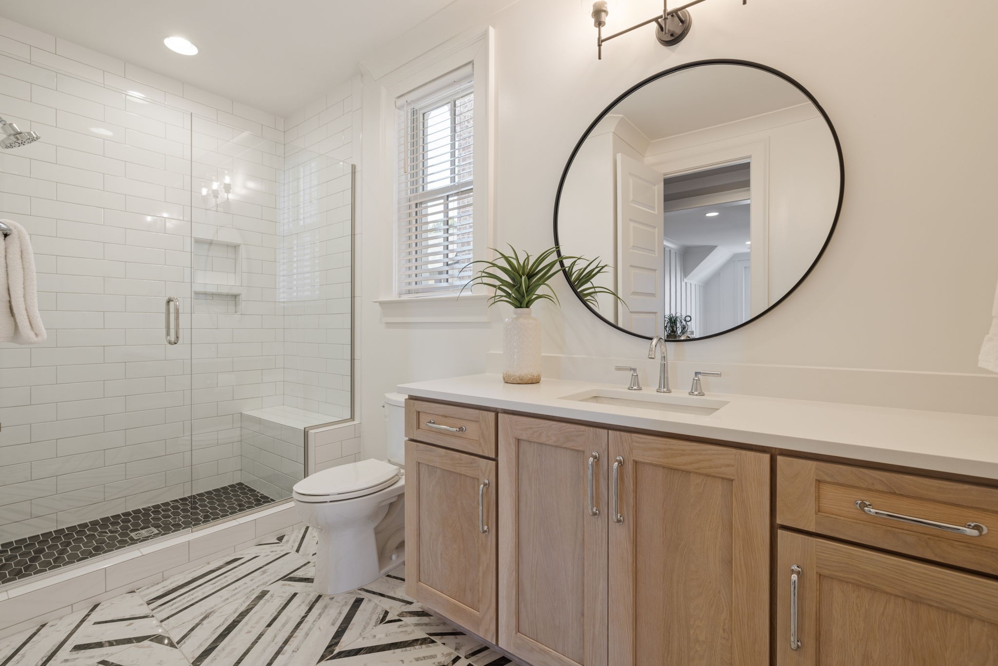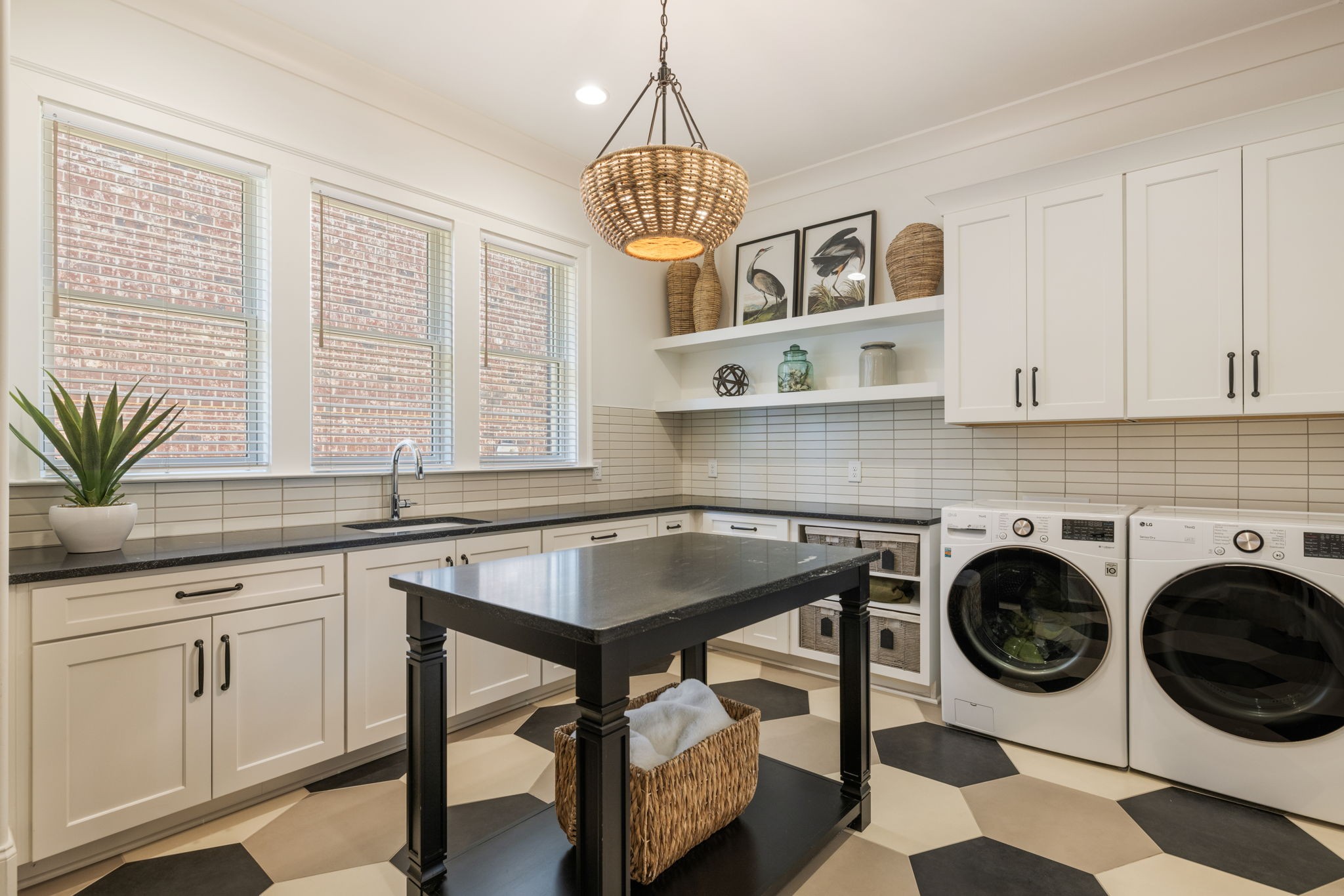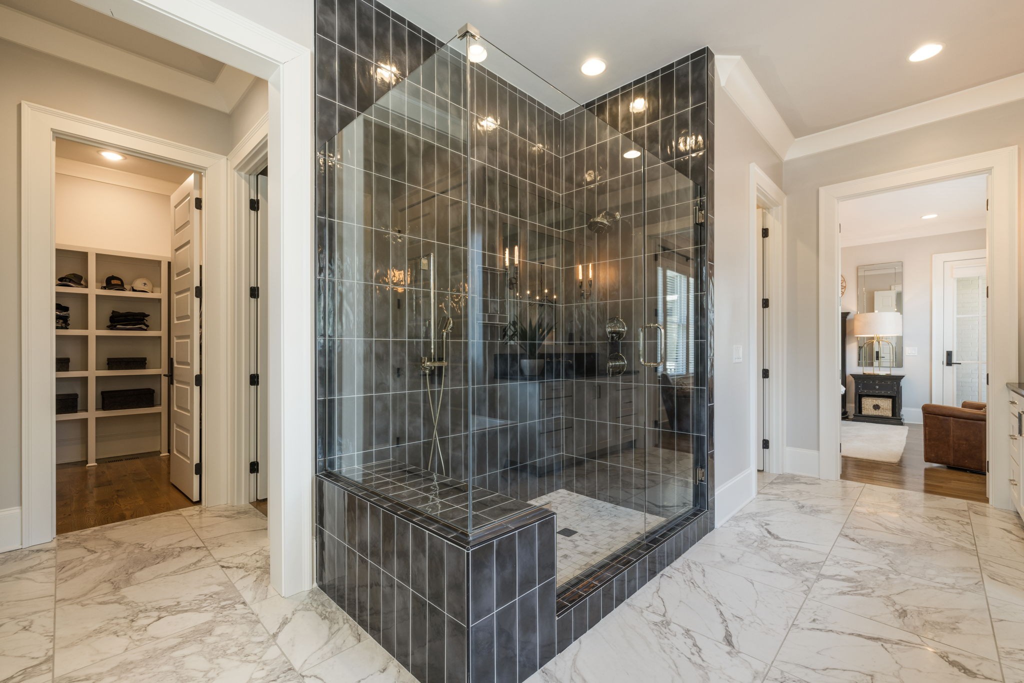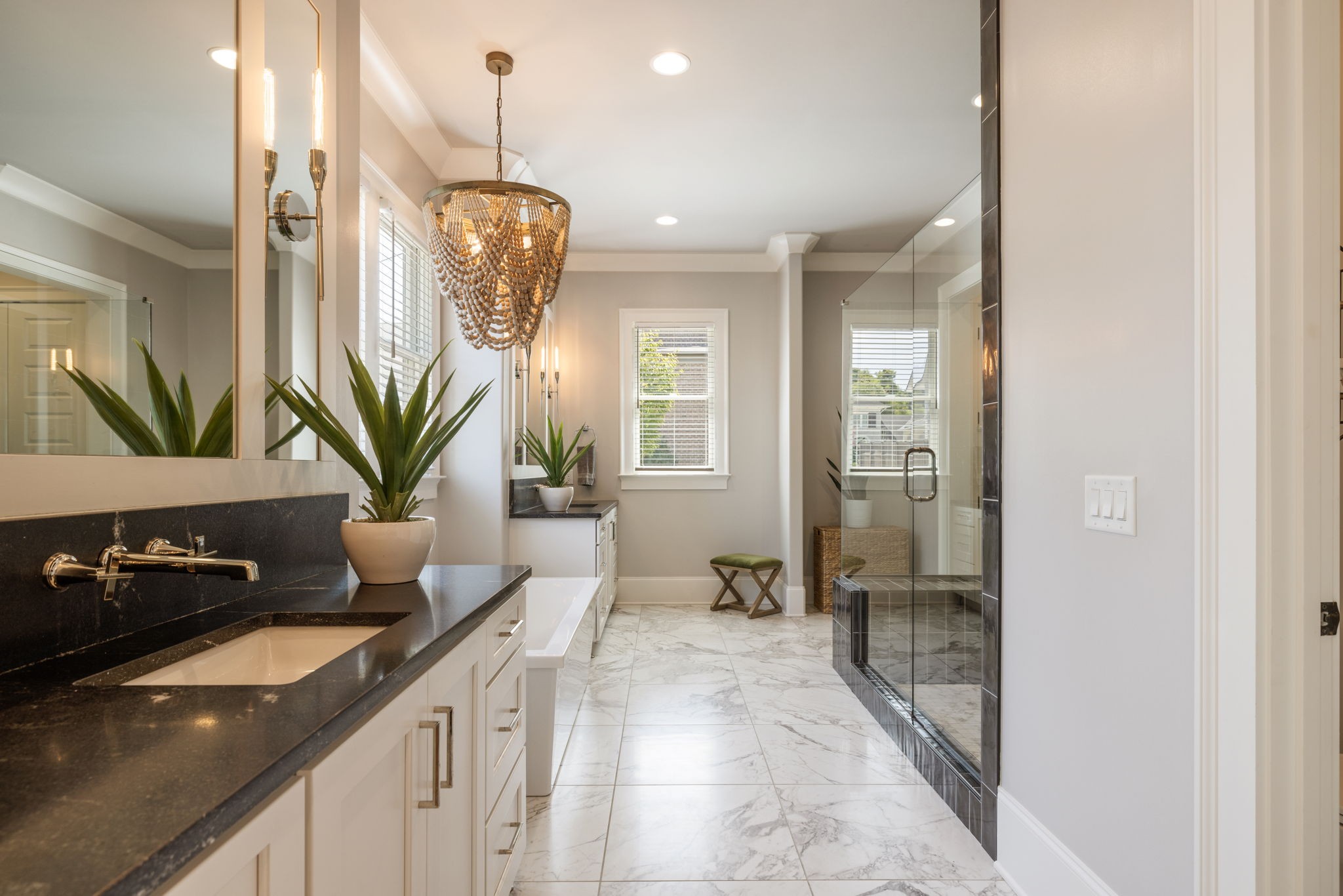 Throughout the home, you’ll find one-of-a-kind tile selections, custom trim, designer lighting, and rich hardwood flooring that elevate every space.