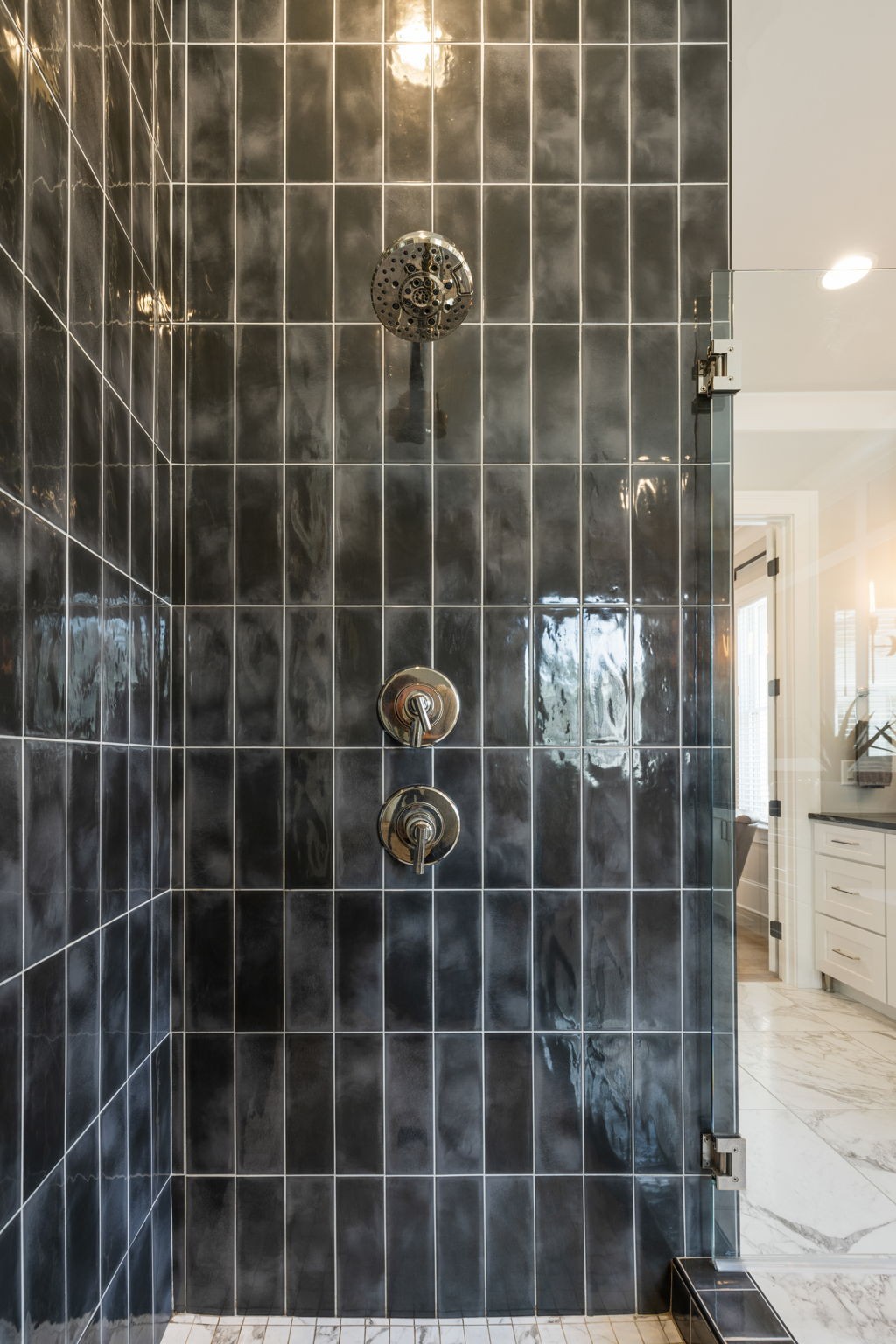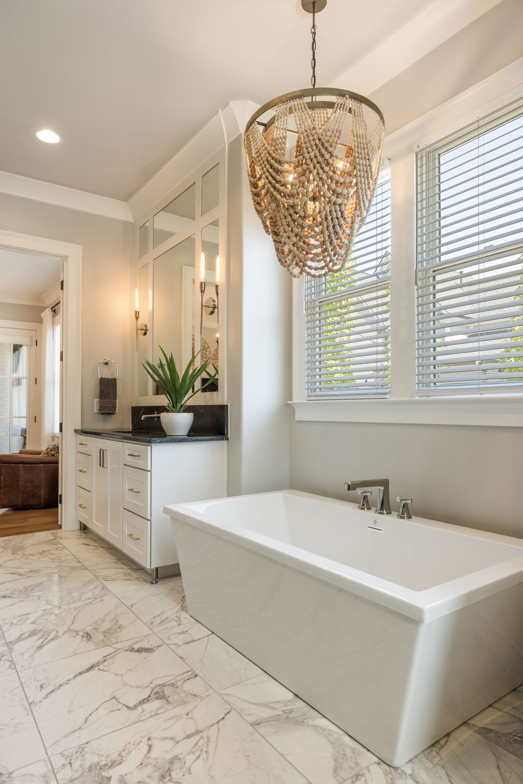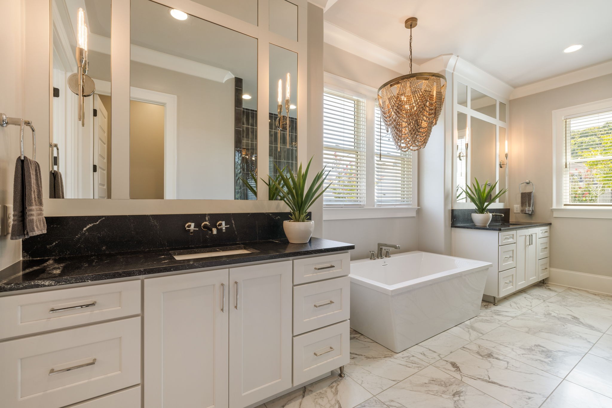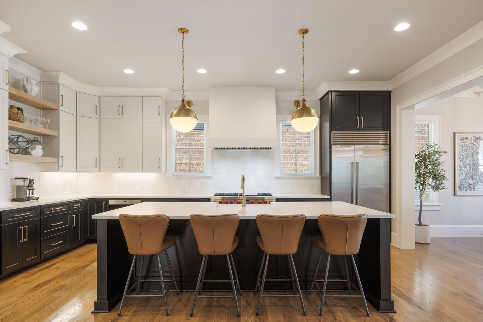 Throughout the home, you’ll find one-of-a-kind tile selections, custom trim, designer lighting, and rich hardwood flooring that elevate every space.