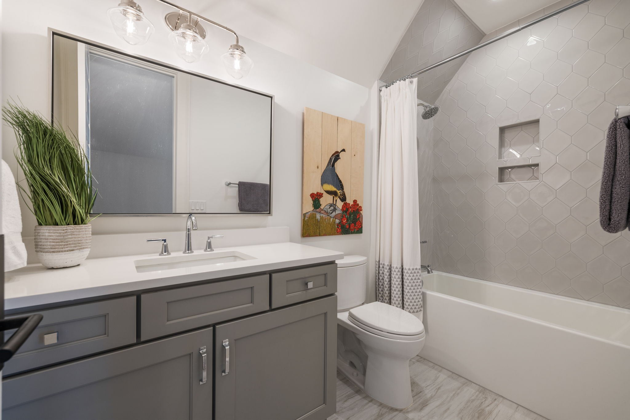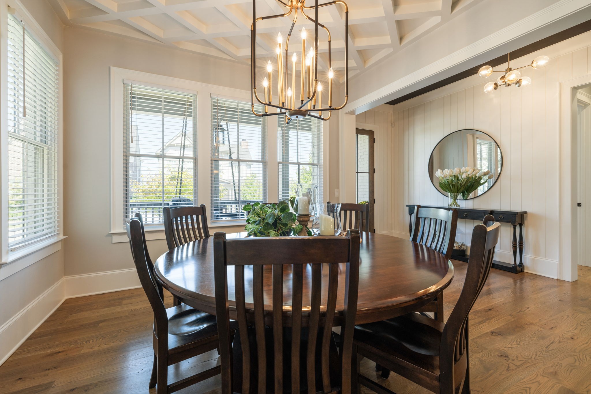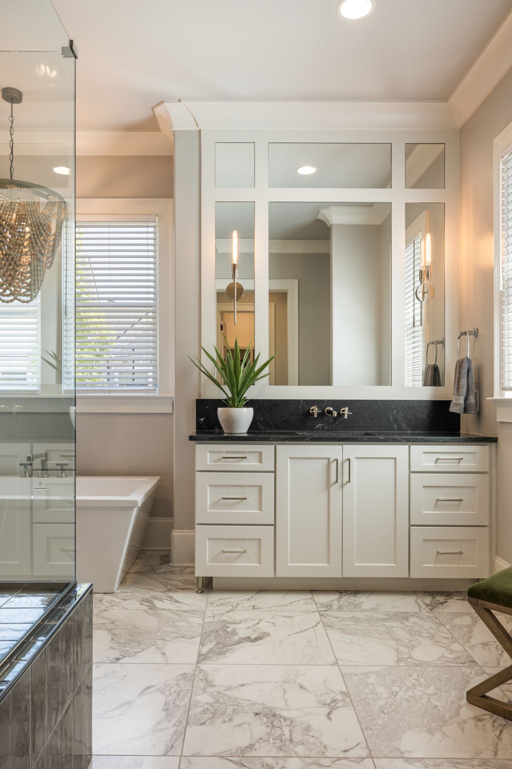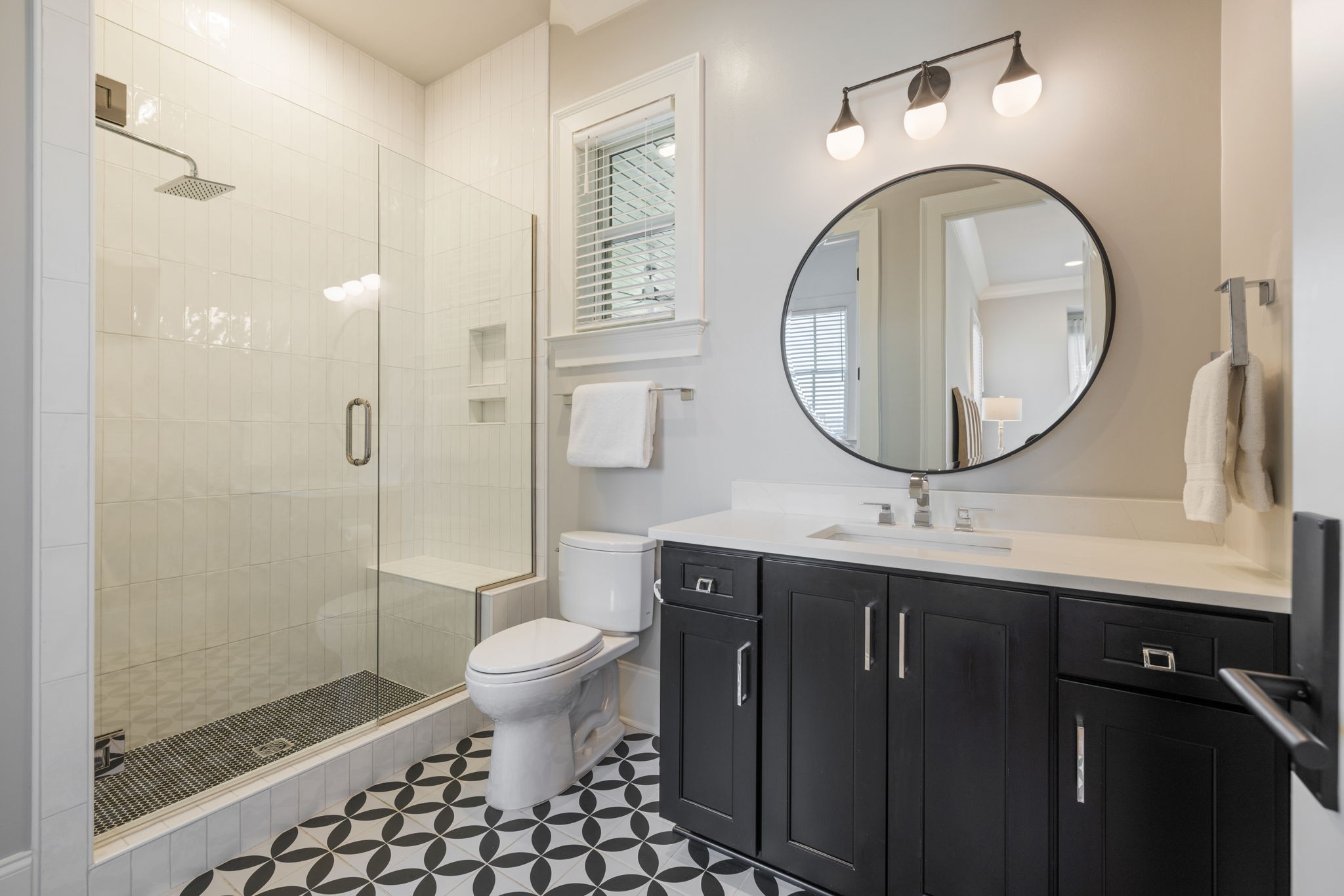 Throughout the home, you’ll find one-of-a-kind tile selections, custom trim, designer lighting, and rich hardwood flooring that elevate every space.