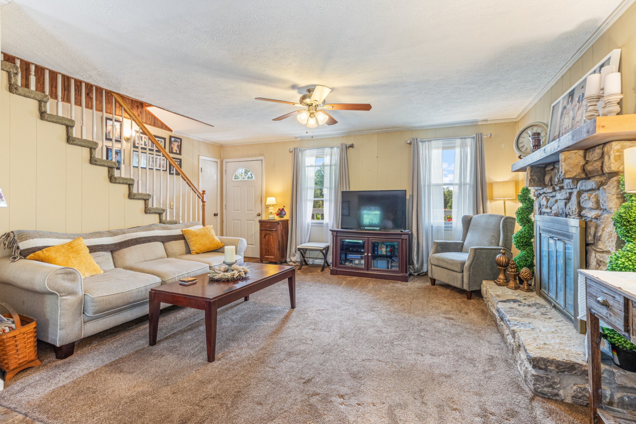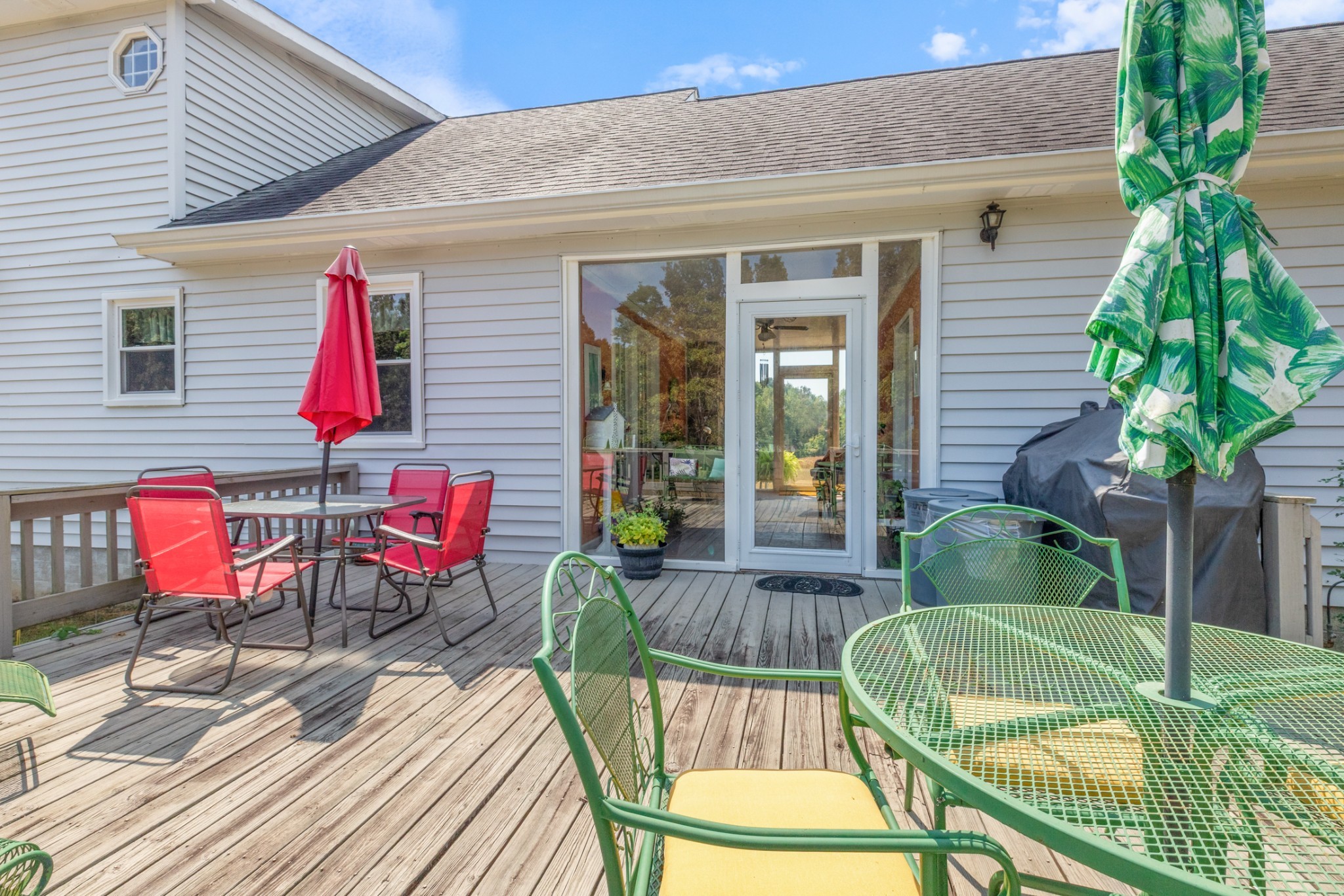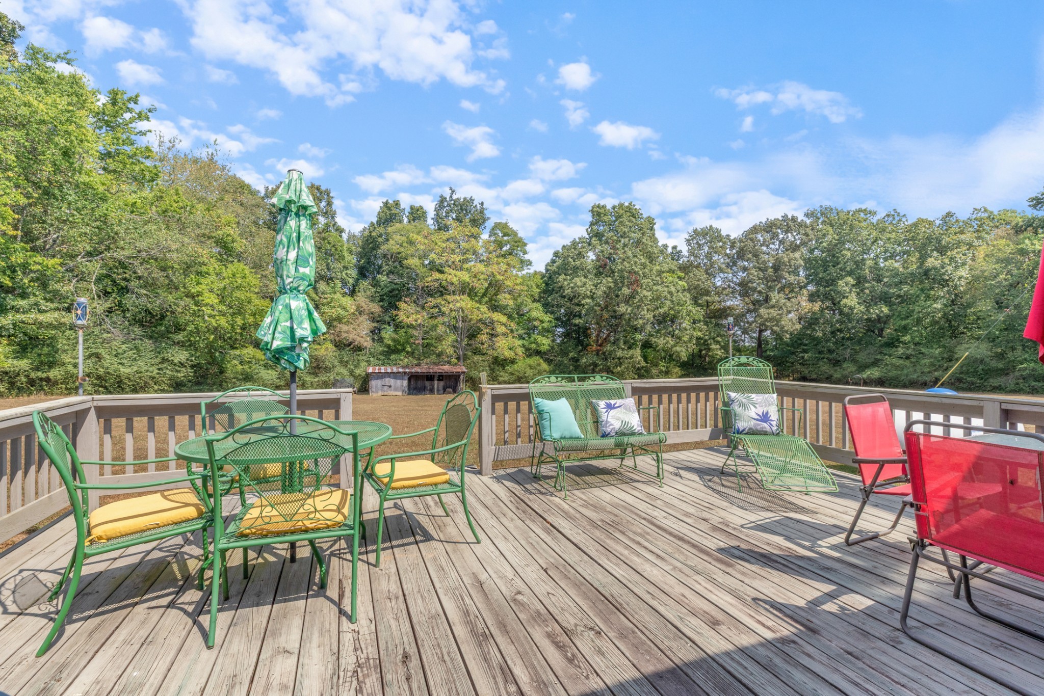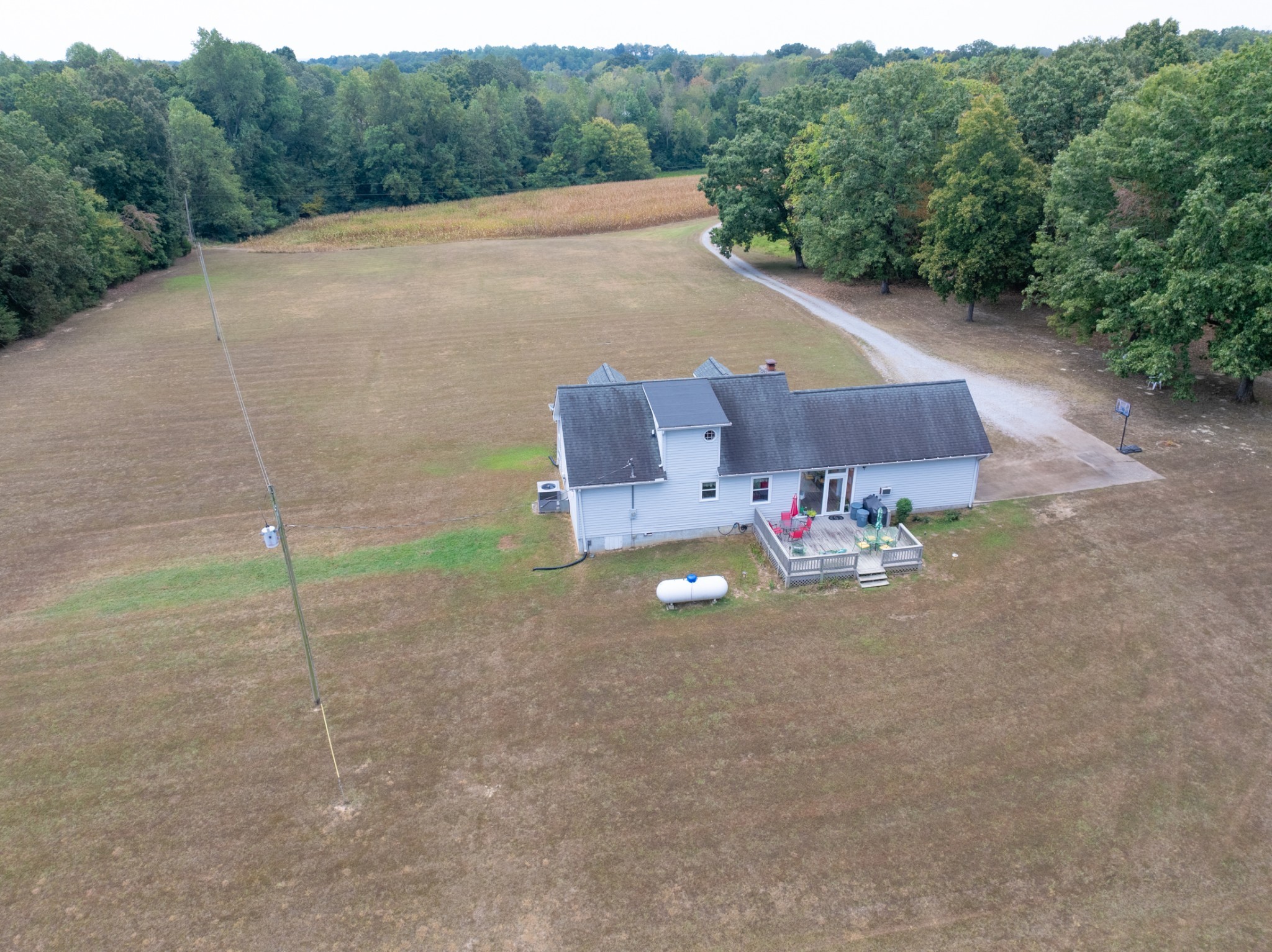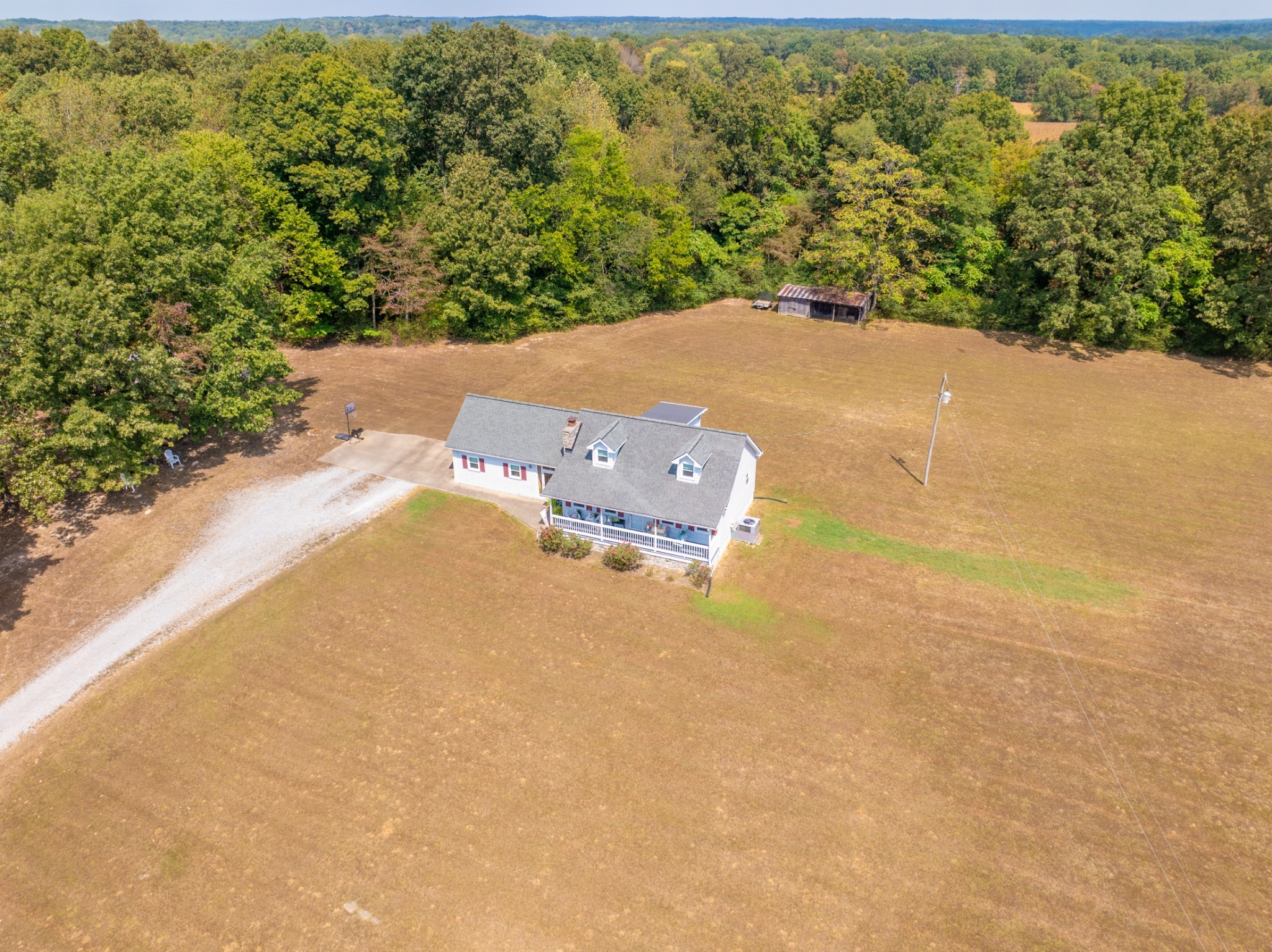 New windows were installed in 2025, and the living room fireplace has been converted from wood to propane. The enclosed glass breezeway connecting the house and family room provides a comfortable outdoor experience without exposure to the elements. The expansive back deck is perfect for entertaining guests or enjoying a quiet morning coffee while watching the sunrise over the rolling pastures. Mature trees dot the landscape, providing shade and a serene backdrop for outdoor activities. The two horse barn adds charm and functionality, making it ideal for equestrian enthusiasts or anyone looking to embrace a rural lifestyle.