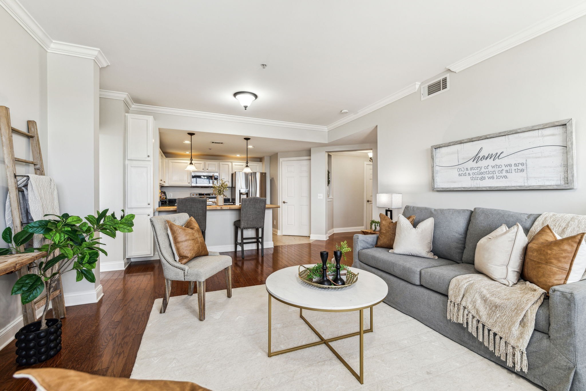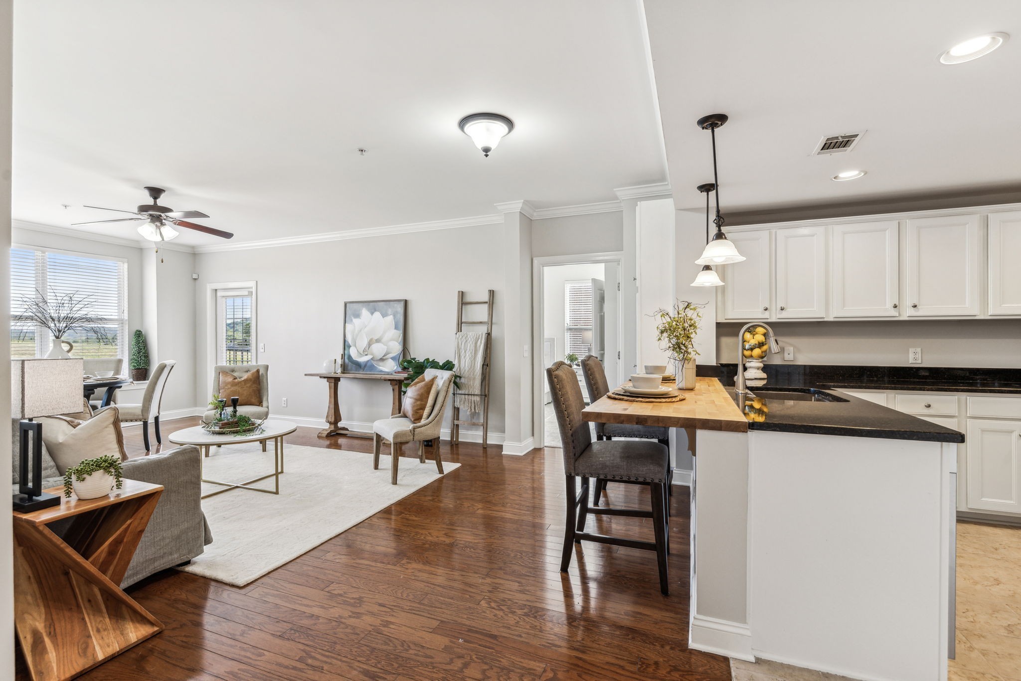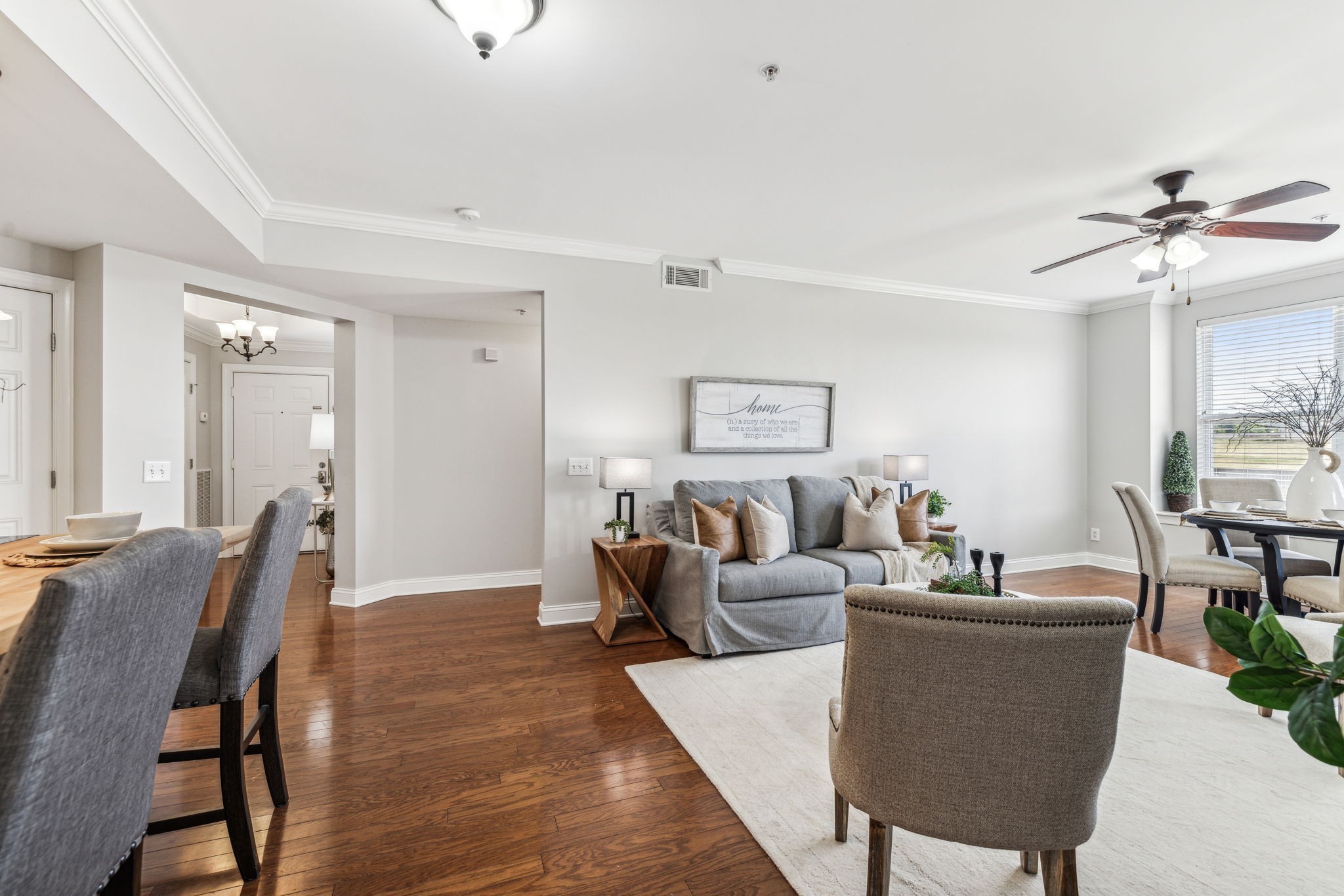 Rare one level living immaculate condo in highly desirable Tollgate Village. Unit comes with an ATTACHED GARAGE. Pristine 2 bedroom 2 bath condo with generously sized bedrooms and bathrooms. Open concept living with spacious kitchen, walk in pantry and laundry room make this an ideal space for hosting entertaining. This condo is move-in-ready with pristine wood flooring, tiled bathrooms, freshly carpeted bedrooms, fresh paint, brand new HVAC system, granite countertops and crown moulding. This condo also comes with 2 locked storage units for your convenience. Elevator access and coded entry doors. Resort style amenities including a pool, walking trails, dog park, pickle ball, basketball, bbq area with fireplace and large clubhouse for your next big event. Walk to local restaurants in the community or sip iced tea from your covered balcony. Don't miss this one!