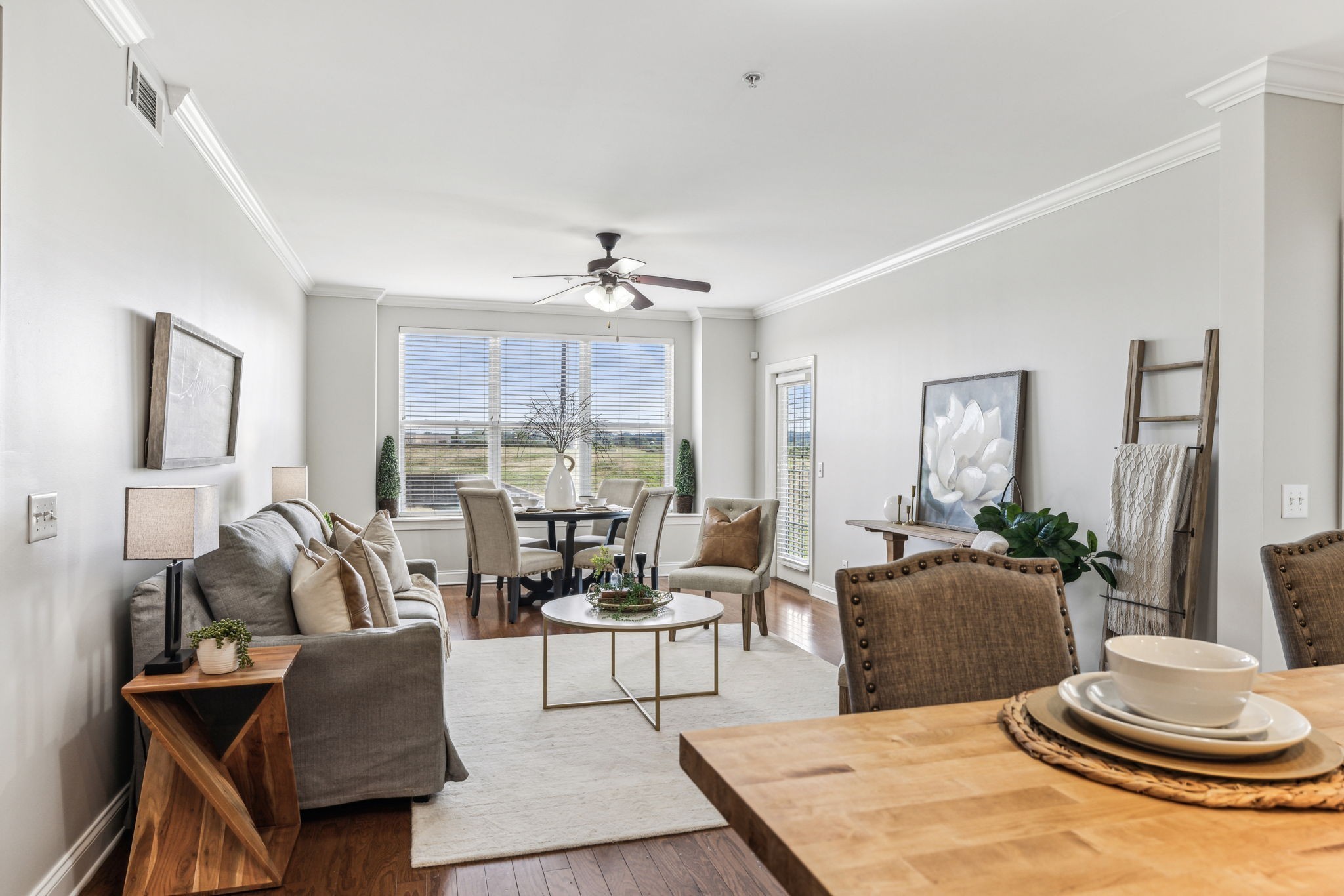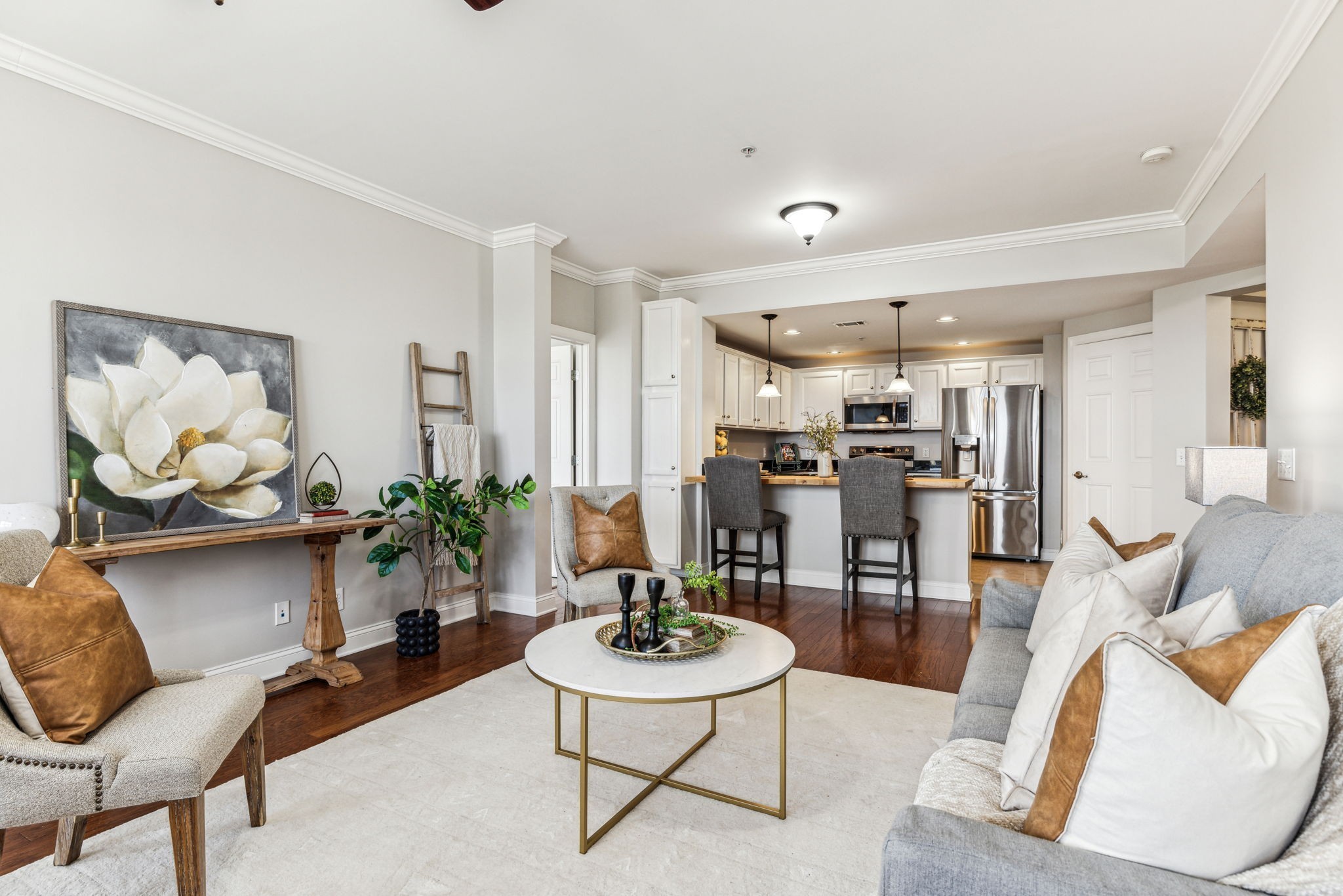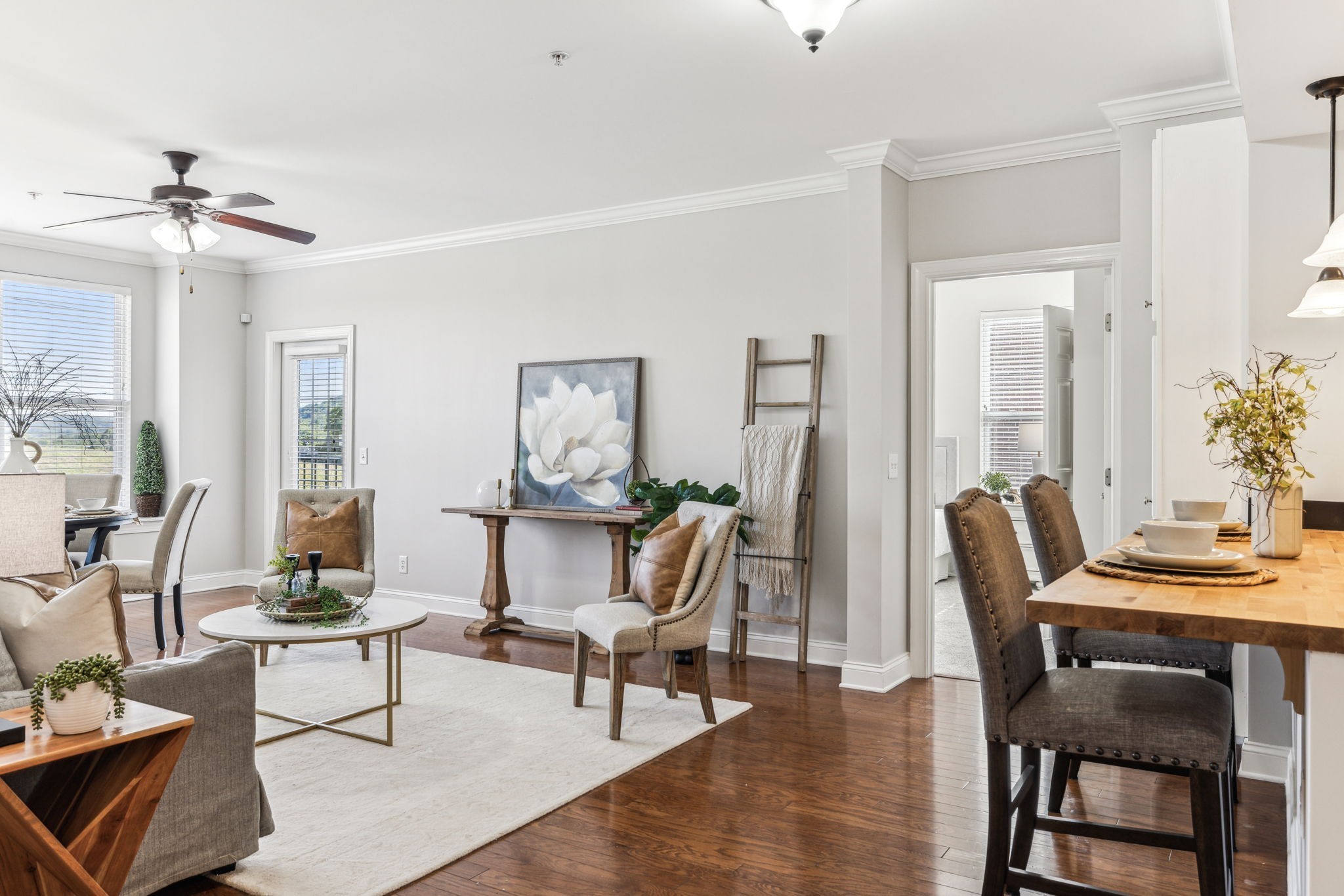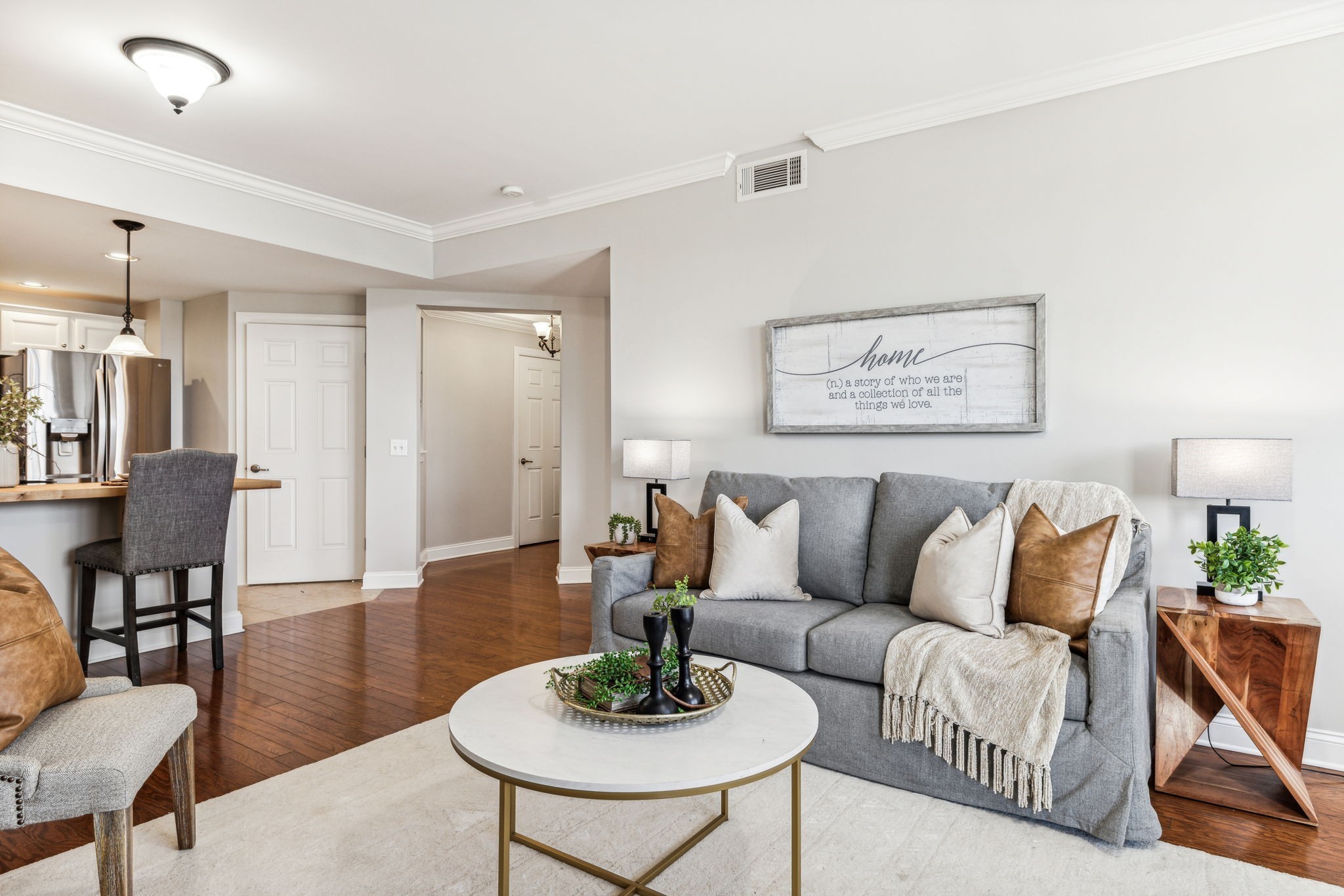 Rare one level living immaculate condo in highly desirable Tollgate Village. Unit comes with an ATTACHED GARAGE. Pristine 2 bedroom 2 bath condo with generously sized bedrooms and bathrooms. Open concept living with spacious kitchen, walk in pantry and laundry room make this an ideal space for hosting entertaining. This condo is move-in-ready with pristine wood flooring, tiled bathrooms, freshly carpeted bedrooms, fresh paint, brand new HVAC system, granite countertops and crown moulding. This condo also comes with 2 locked storage units for your convenience. Elevator access and coded entry doors. Resort style amenities including a pool, walking trails, dog park, pickle ball, basketball, bbq area with fireplace and large clubhouse for your next big event. Walk to local restaurants in the community or sip iced tea from your covered balcony. Don't miss this one!