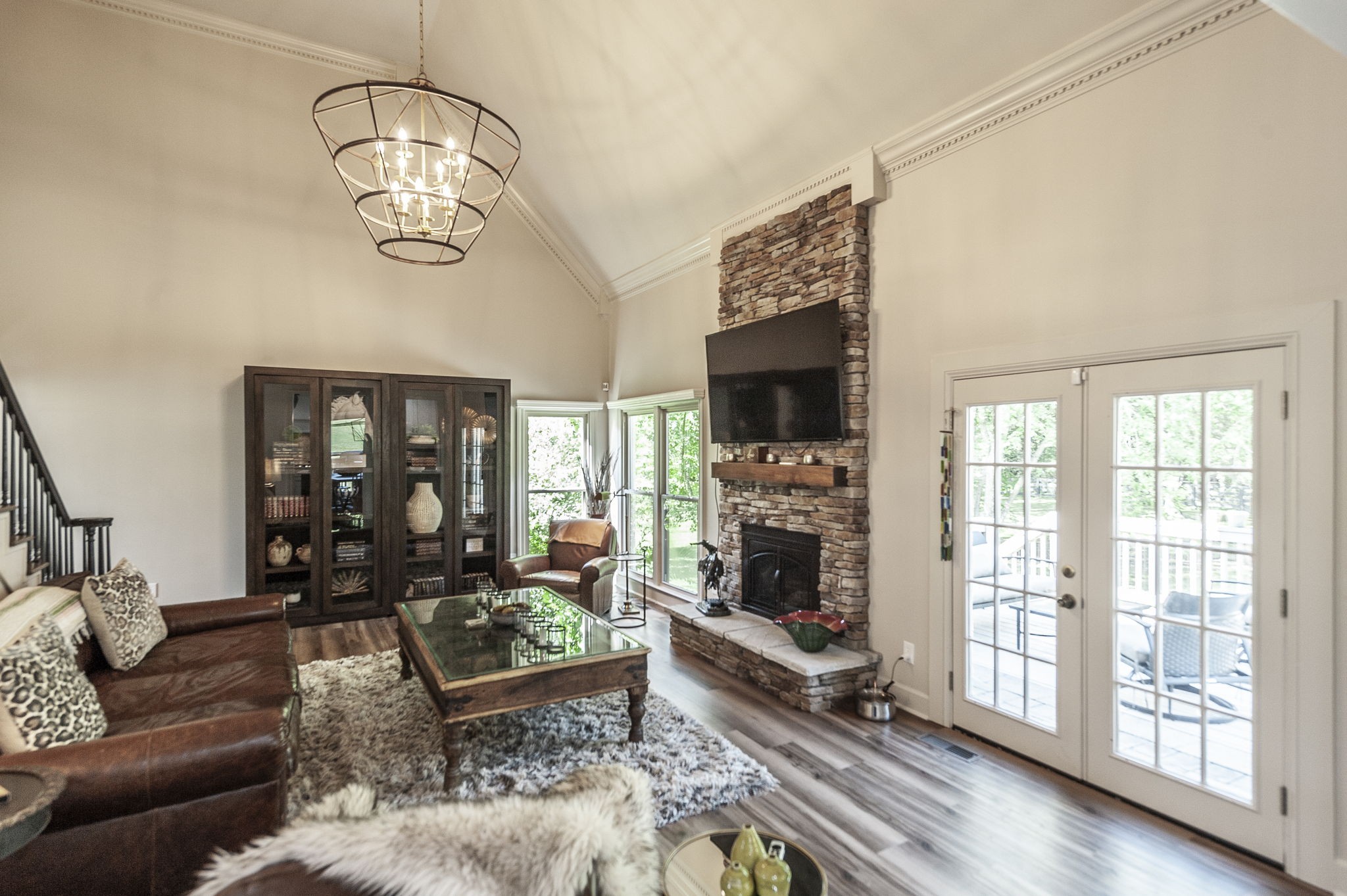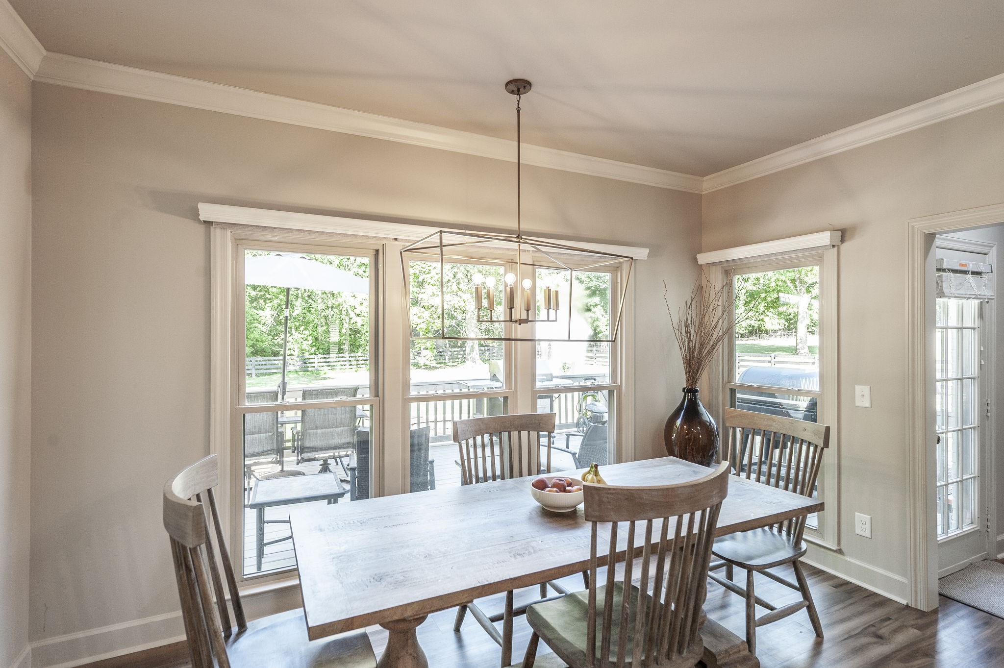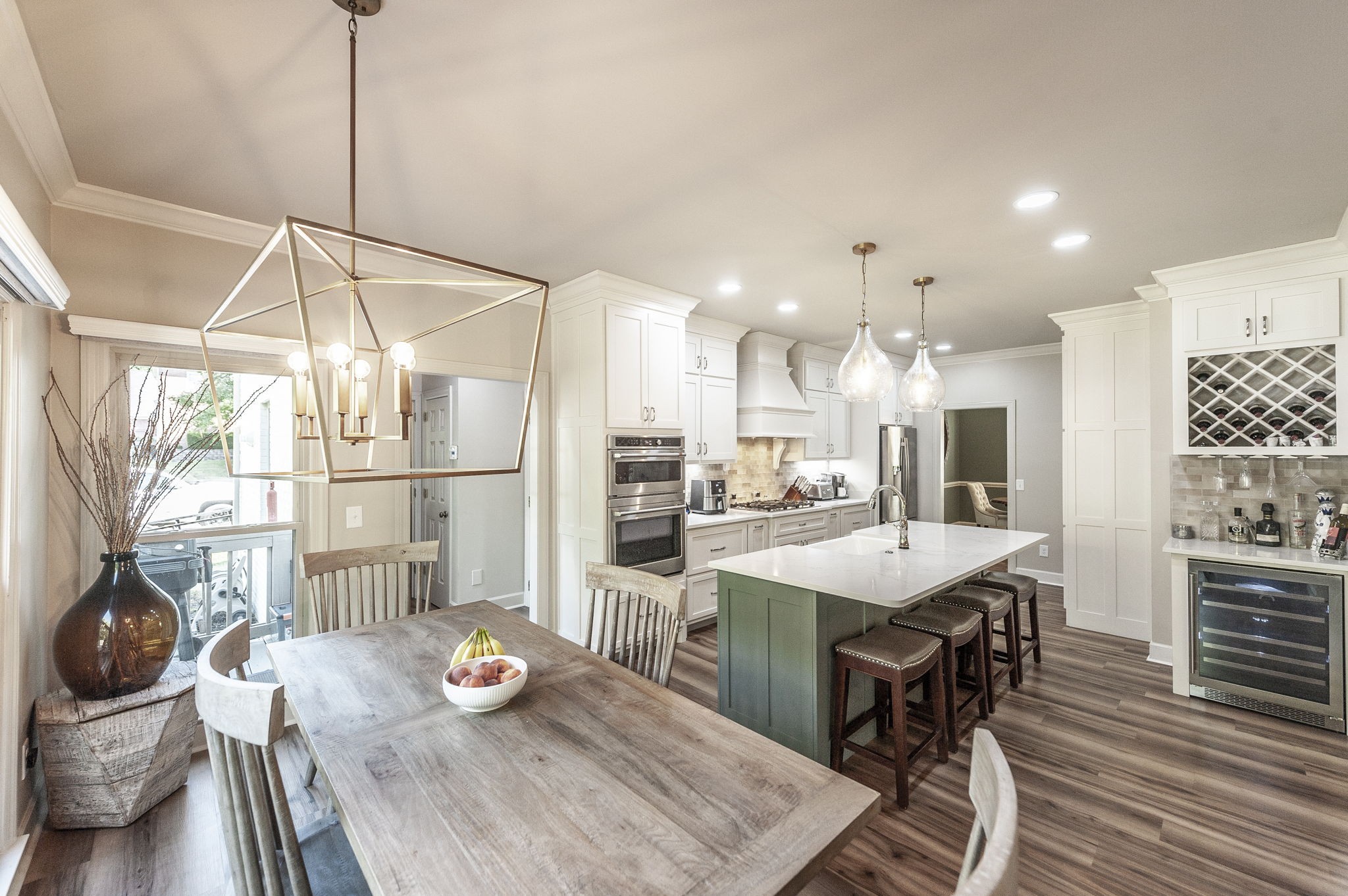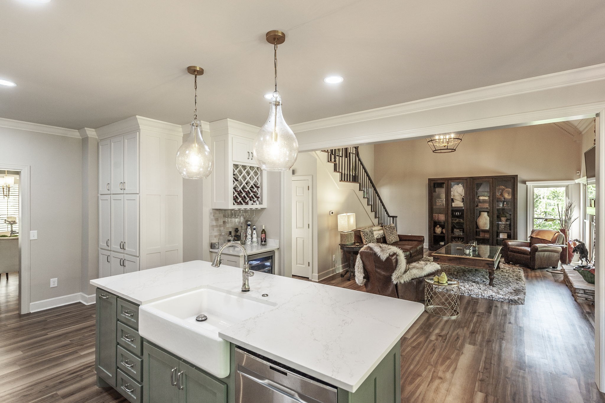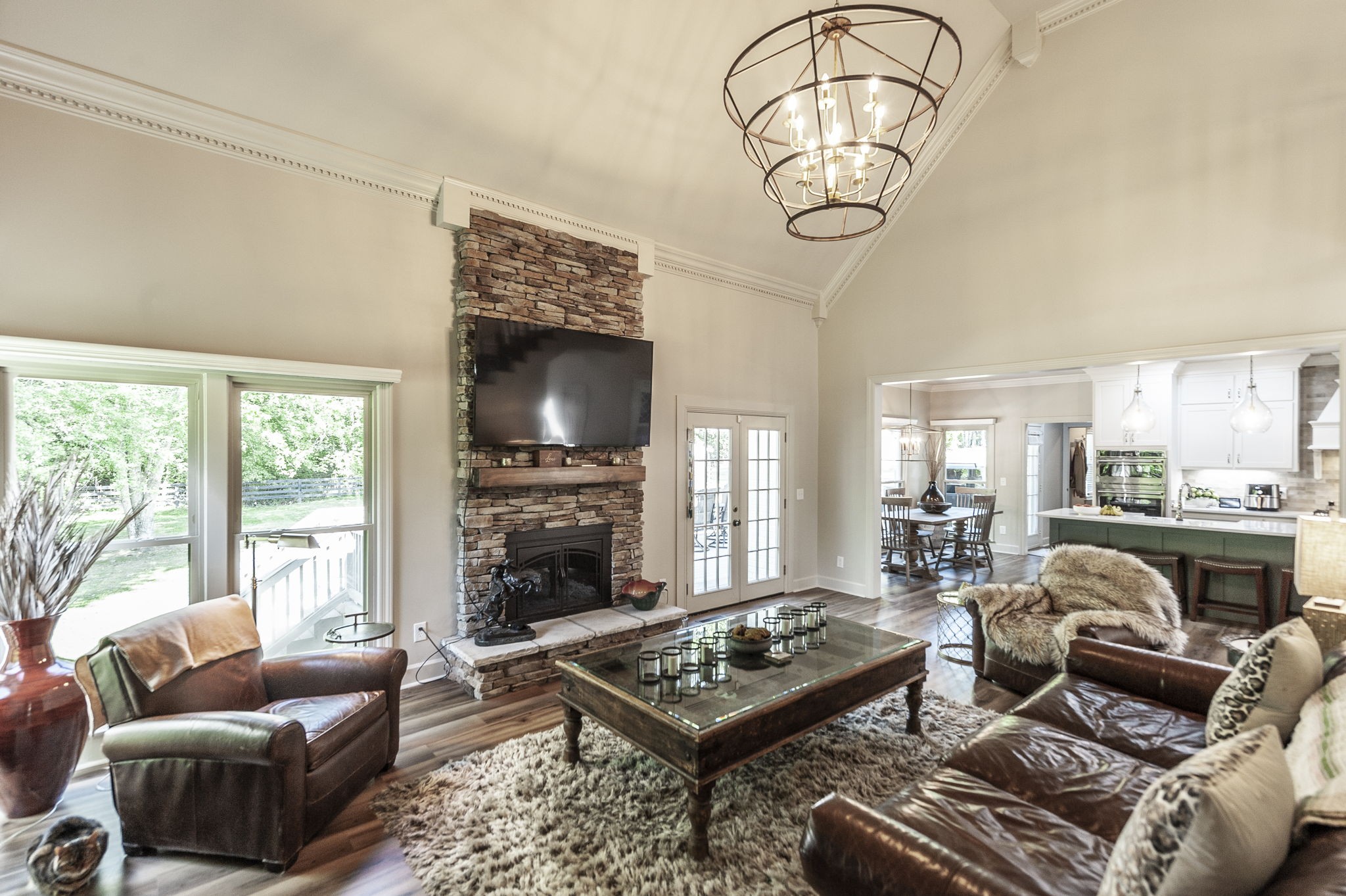 Inside, the large chef’s kitchen opens seamlessly to the living room, creating a bright and inviting space with soaring ceilings and an effortless flow for both daily living and entertaining. The kitchen features a gas stove, expansive counter space, and a design that brings people together at the heart of the home. Modern updates throughout complement timeless finishes, while expansive windows frame views of the grounds and fill the home with natural light.