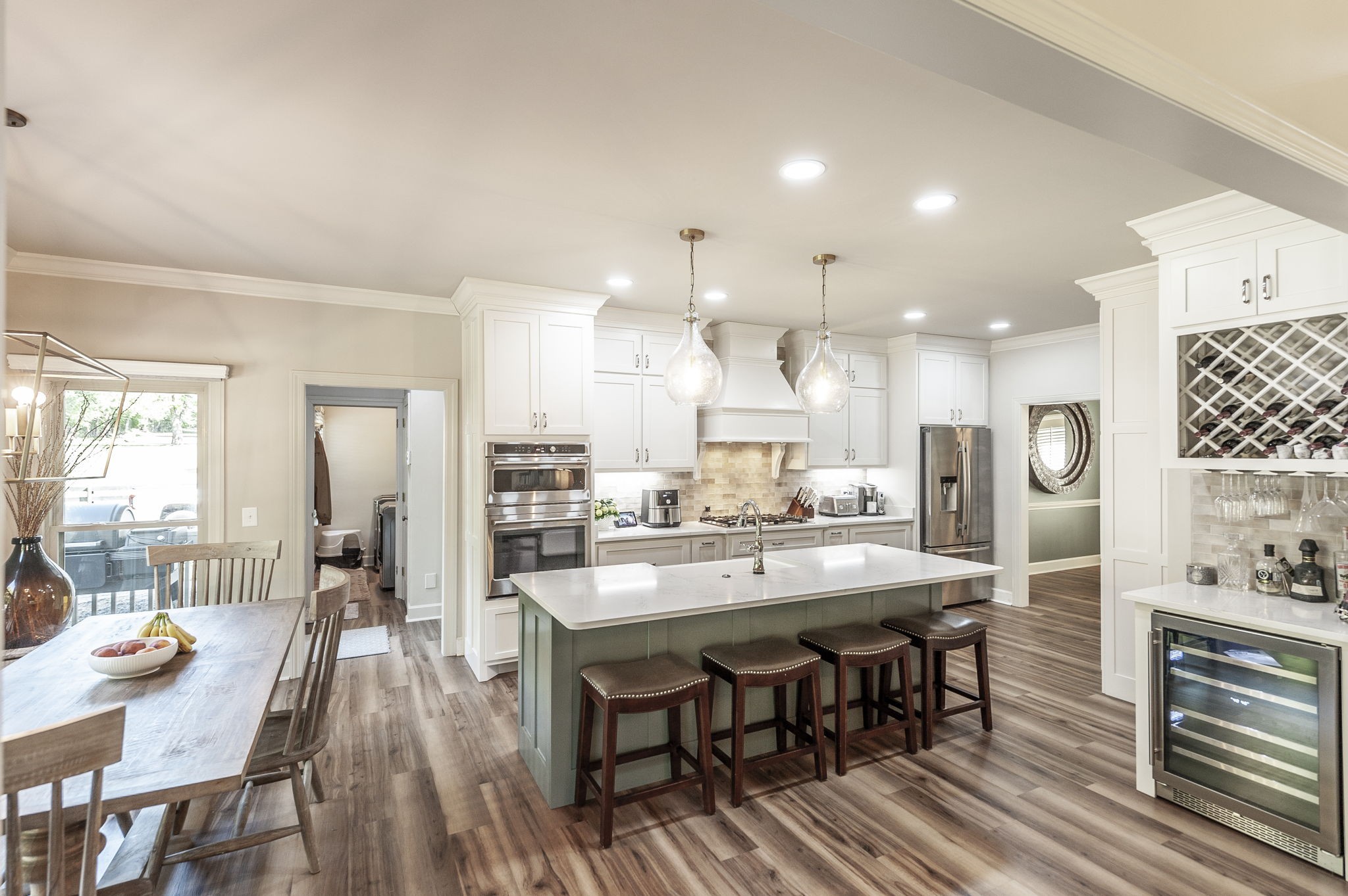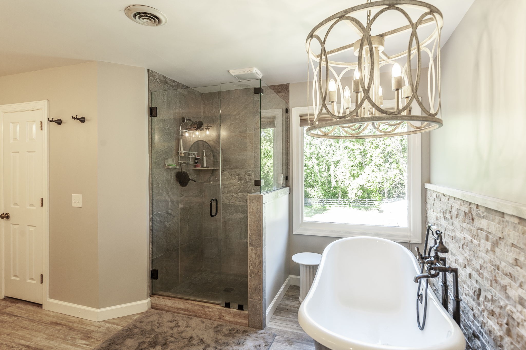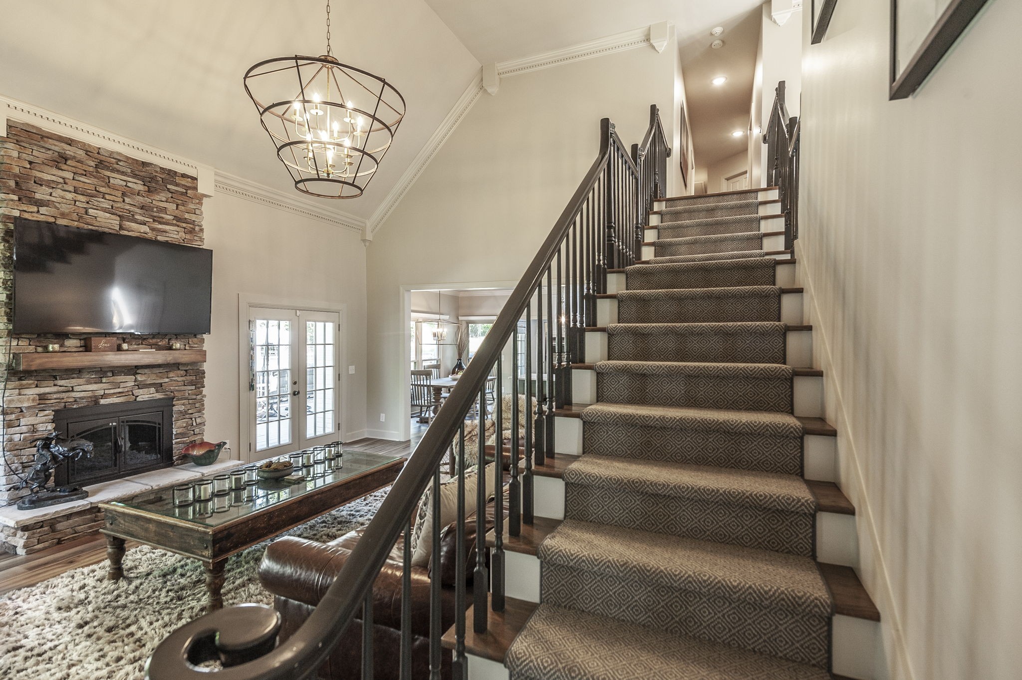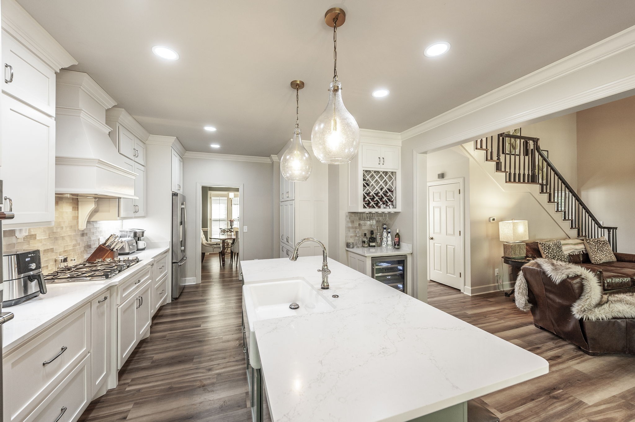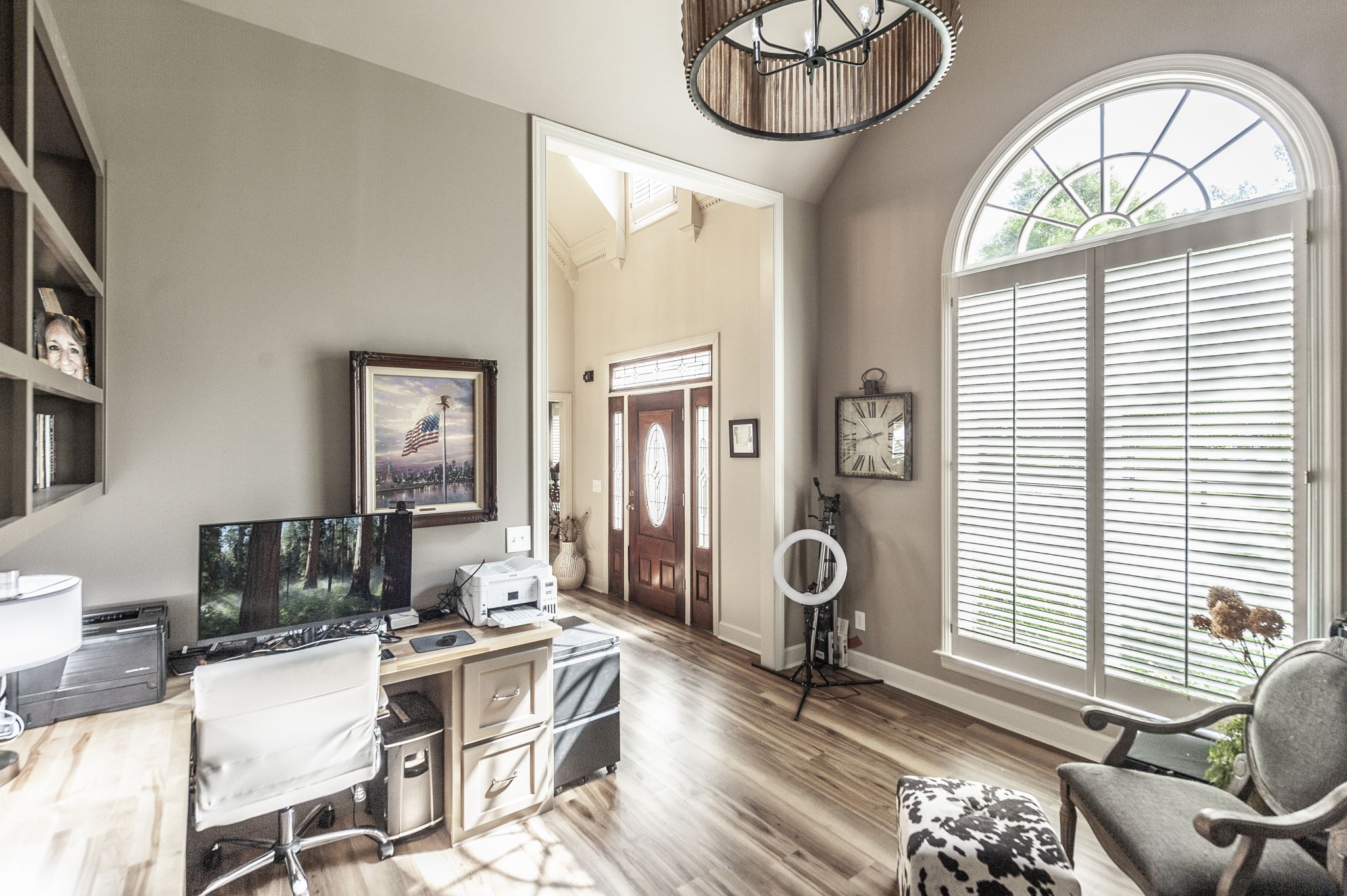 Inside, the large chef’s kitchen opens seamlessly to the living room, creating a bright and inviting space with soaring ceilings and an effortless flow for both daily living and entertaining. The kitchen features a gas stove, expansive counter space, and a design that brings people together at the heart of the home. Modern updates throughout complement timeless finishes, while expansive windows frame views of the grounds and fill the home with natural light.