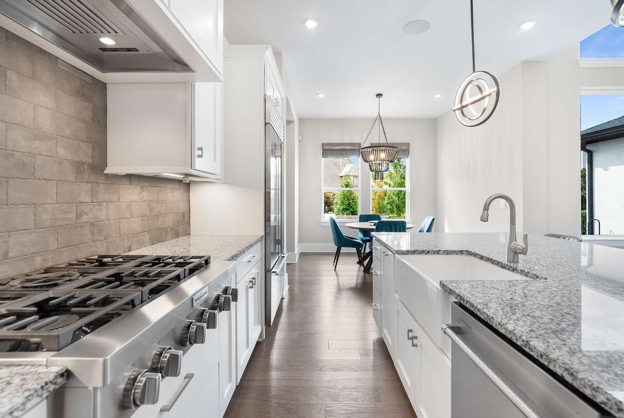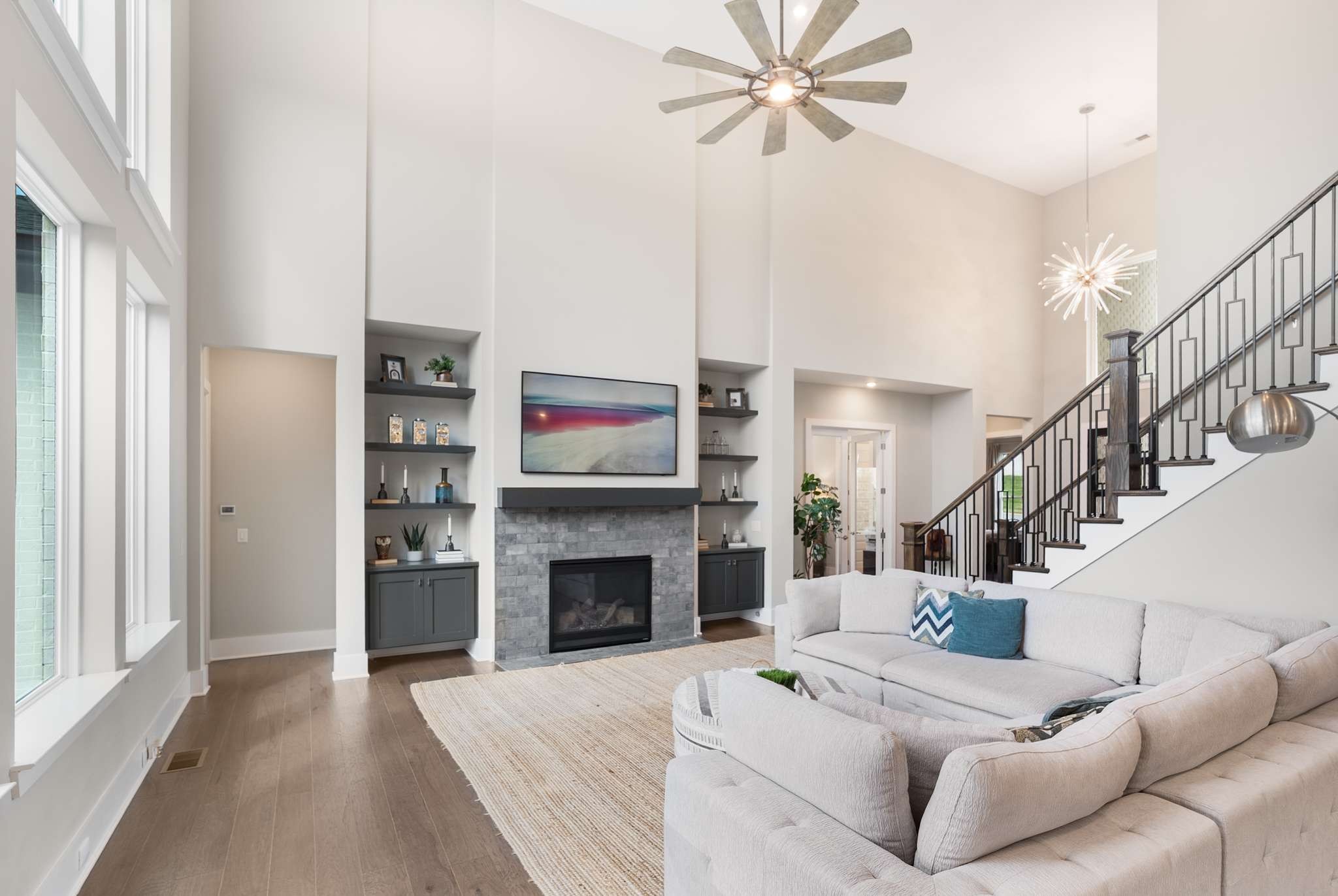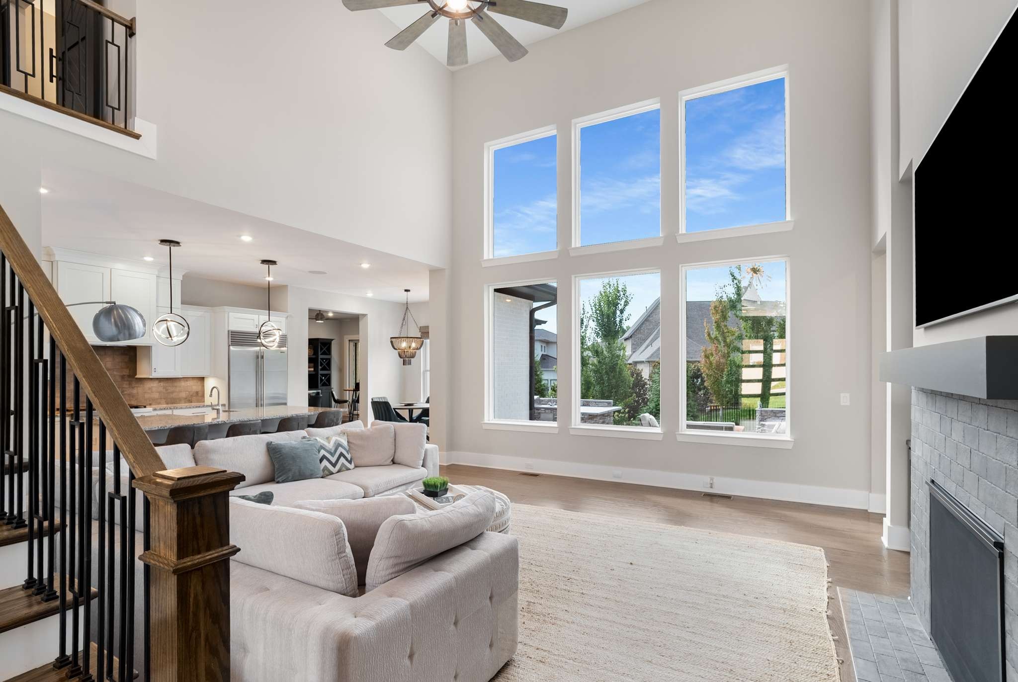 This distinguished residence is a showcase of timeless elegance and refined design, crafted to impress even the most discerning buyer. From the moment you step through the grand two-story foyer, the open, flowing floor plan draws you into the heart of the home. The soaring 20-foot ceilings of the family room create an airy sophistication, centered around a striking fireplace, and seamlessly connect to the gourmet kitchen and dining area—perfect for both grand entertaining and intimate gatherings.