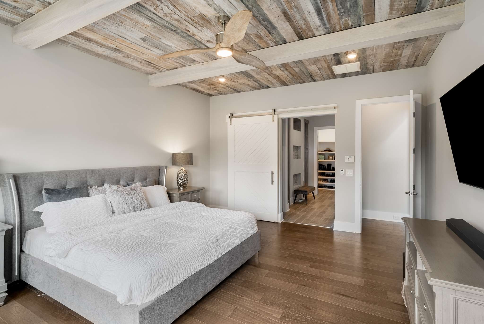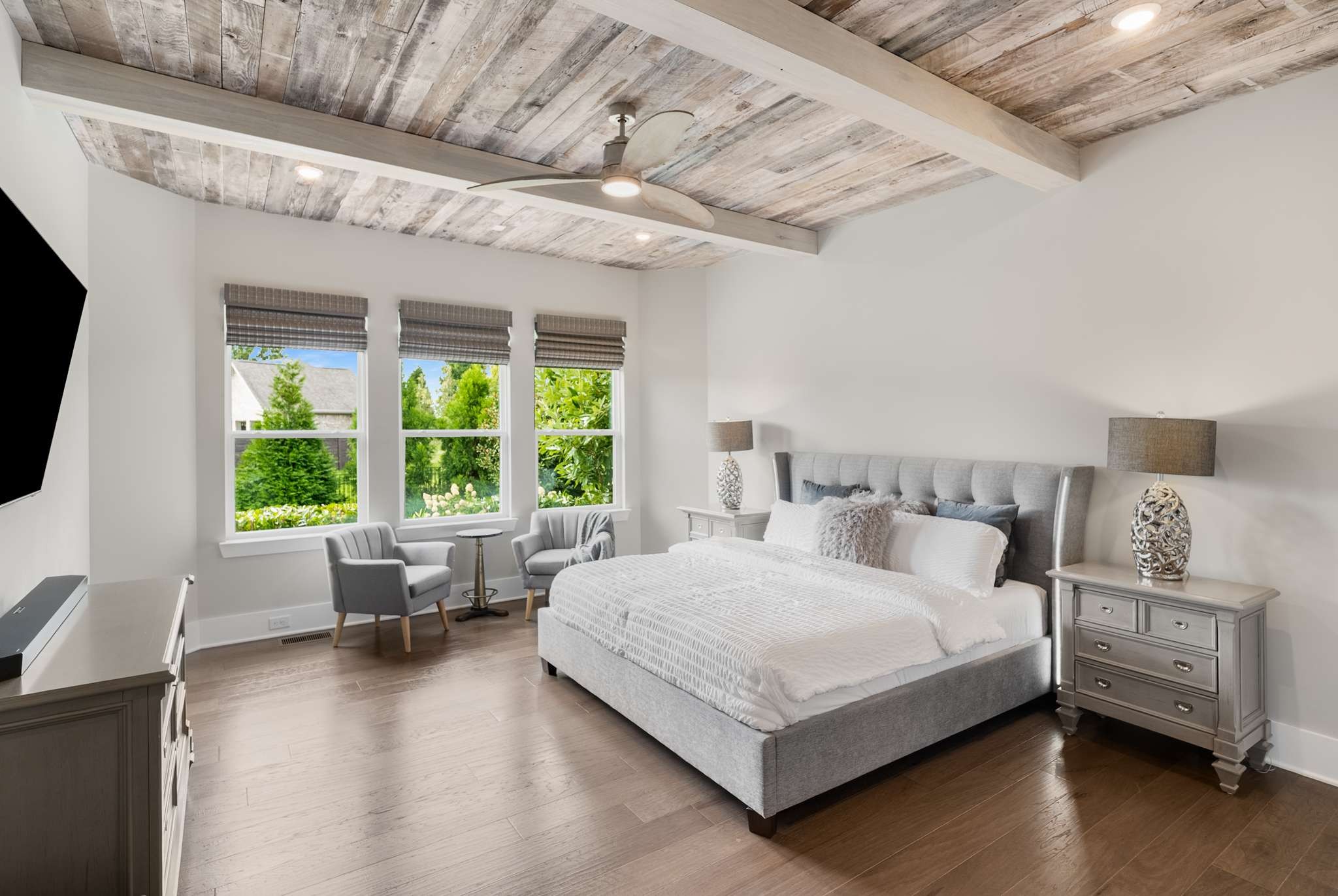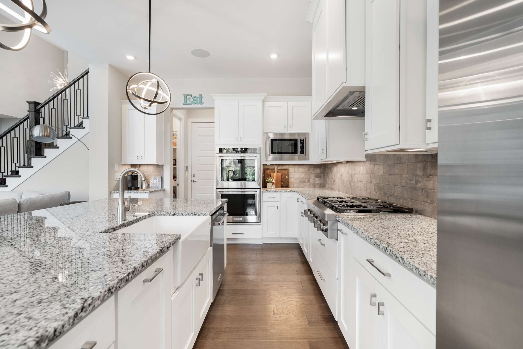 The owner’s suite is a true sanctuary, bathed in natural light with a spa-inspired bath featuring an oversized shower and expansive walk-in closet. A private first-floor guest suite with full bath offers comfort and flexibility, while French doors reveal a stately home office ideal for today’s executive lifestyle.