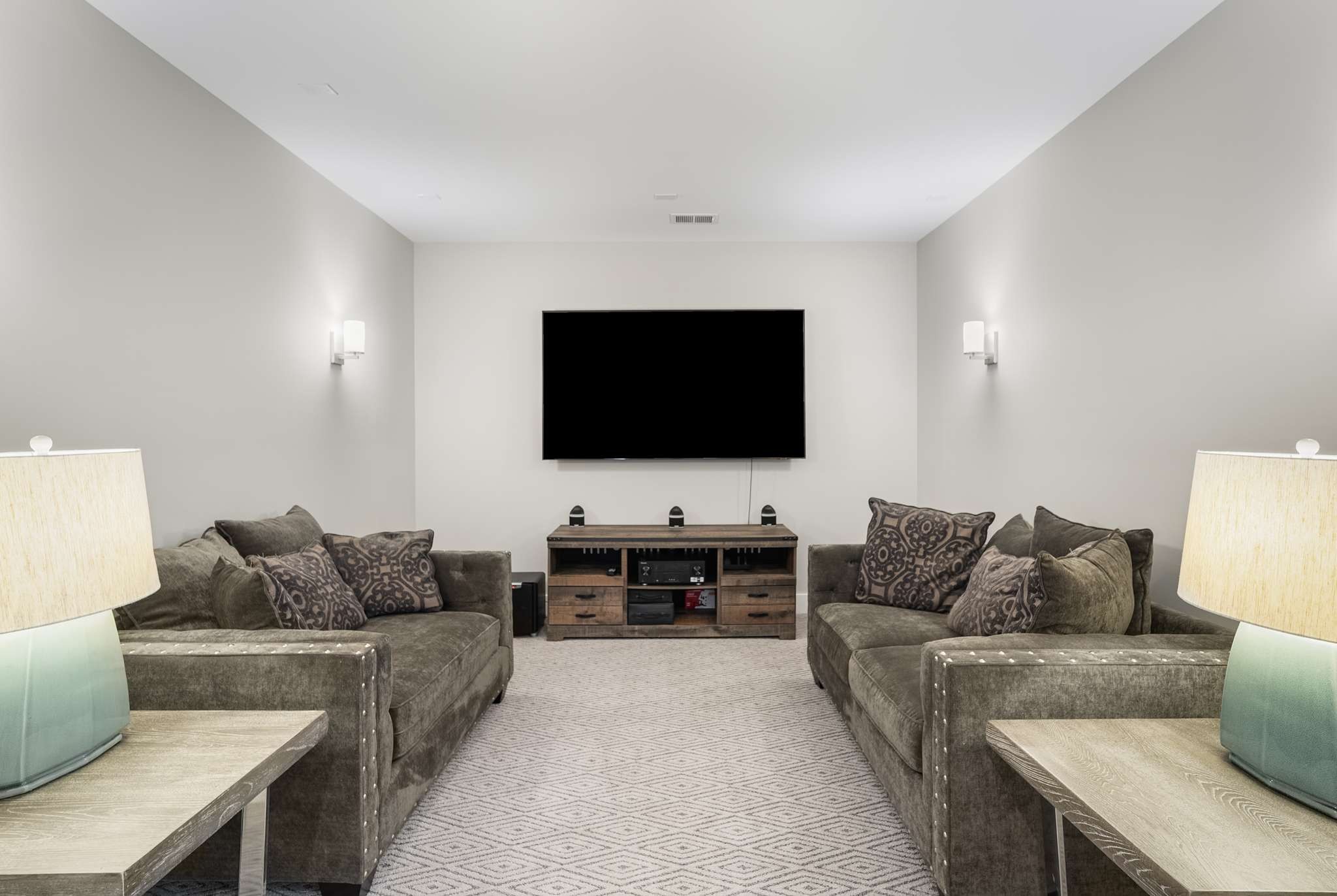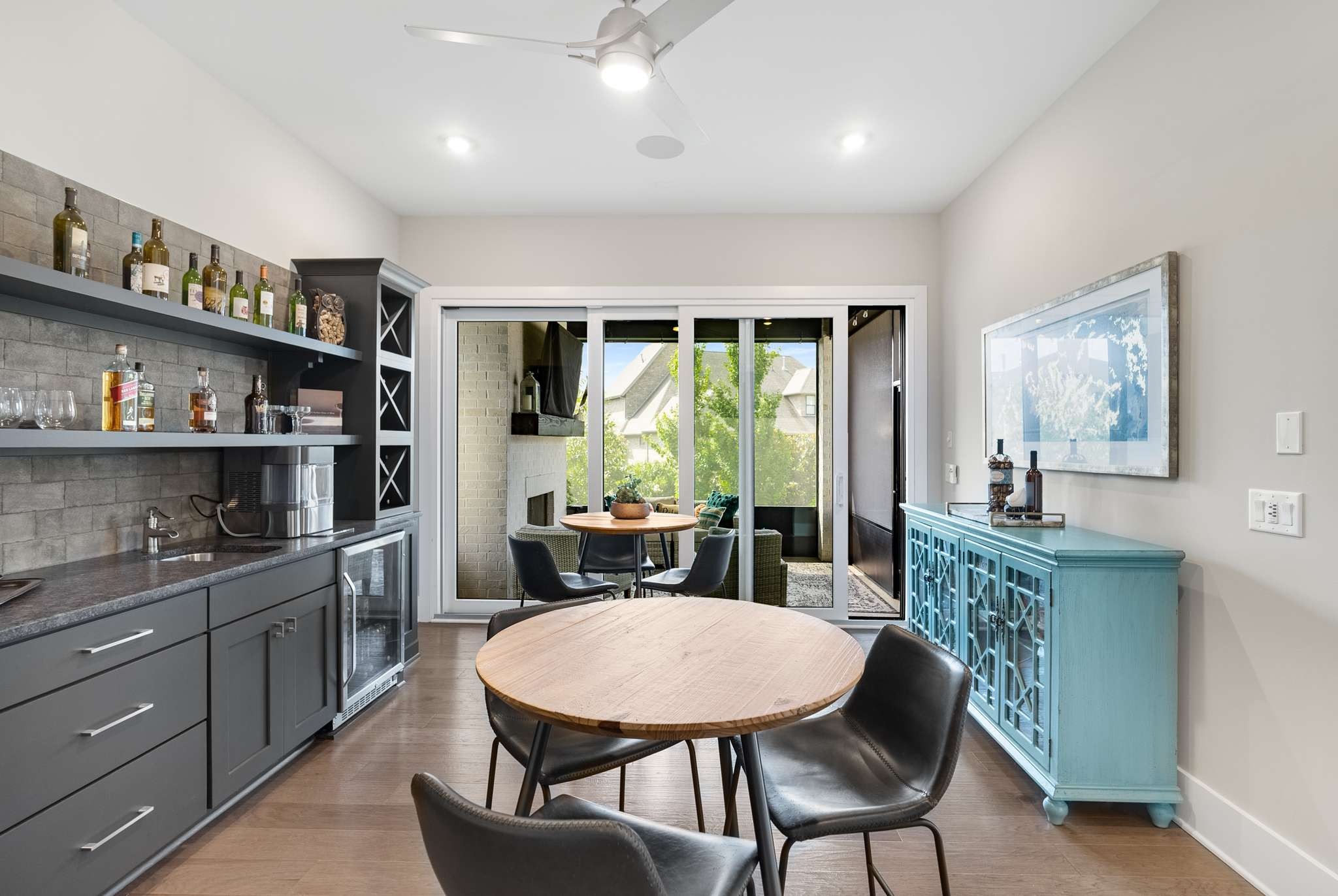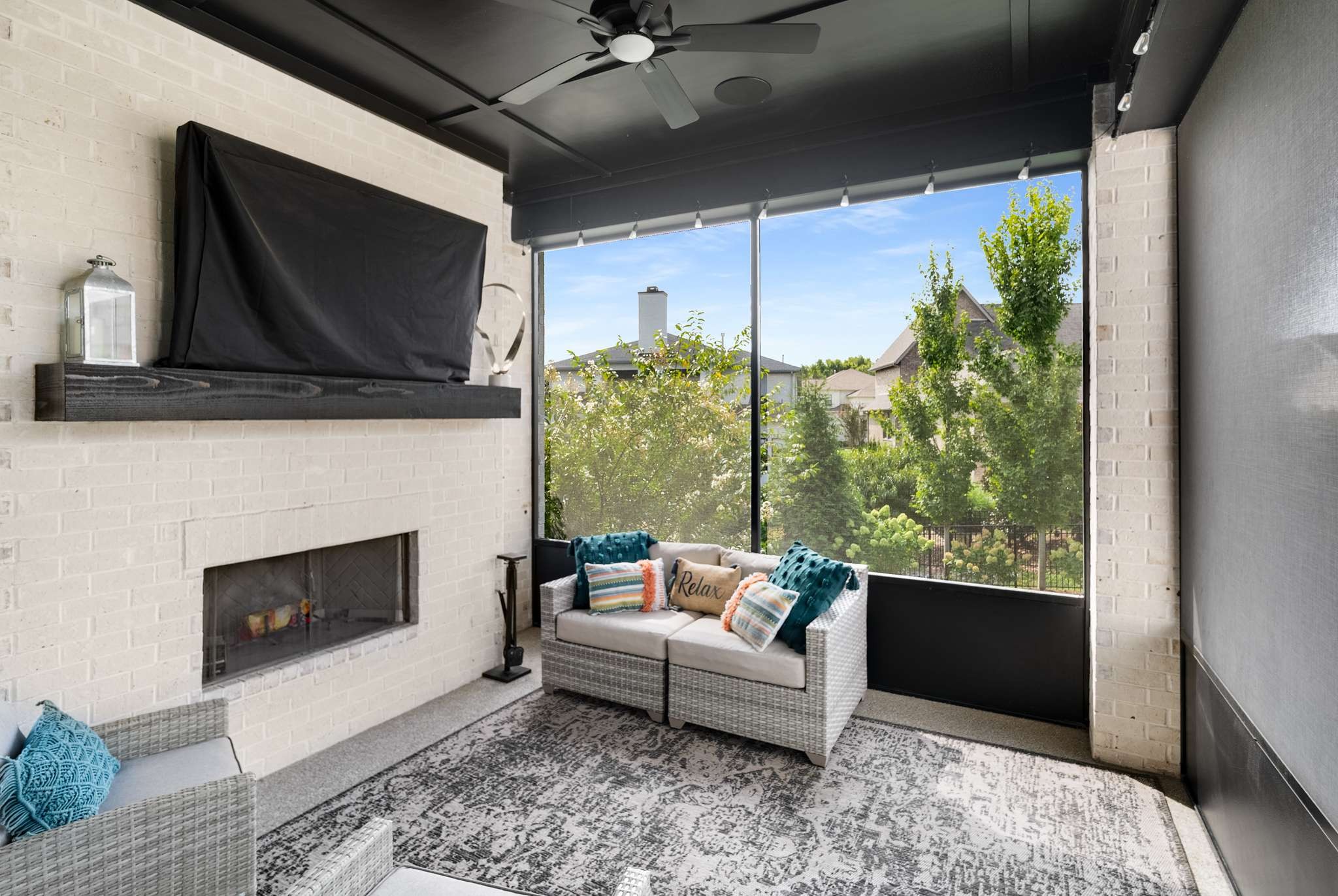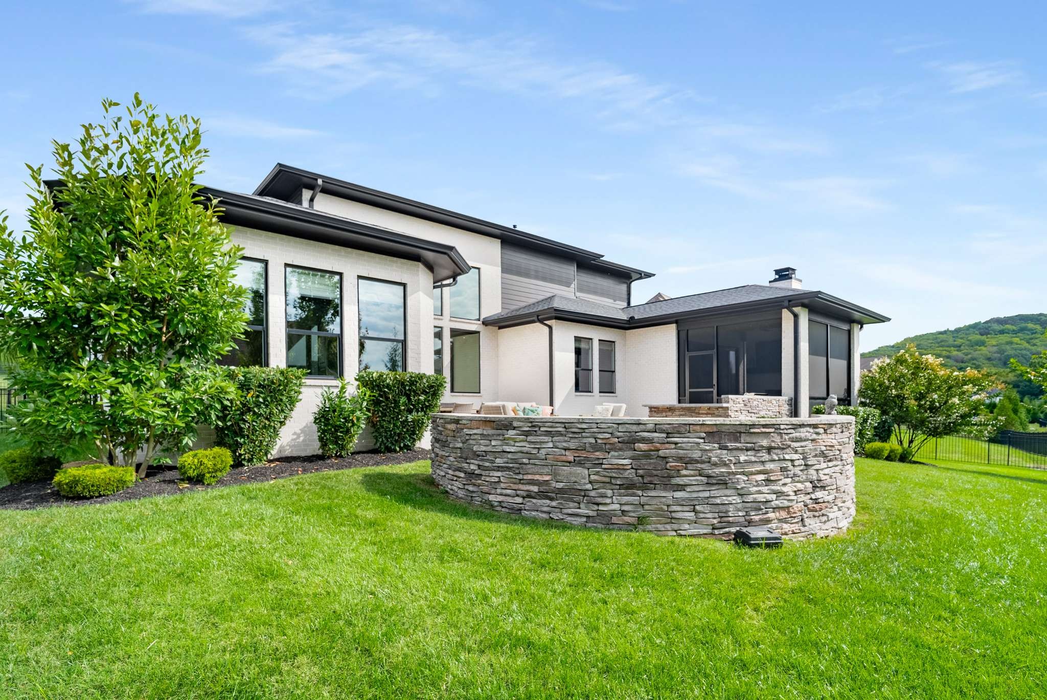 At the rear of the home, discover a remarkable game room—perfectly suited as a bourbon room or entertainment lounge—flowing out to an extraordinary covered patio with fireplace. The outdoor living space elevates every occasion with a full chef’s kitchen, firepit, and generous seating for unforgettable evenings under the stars.