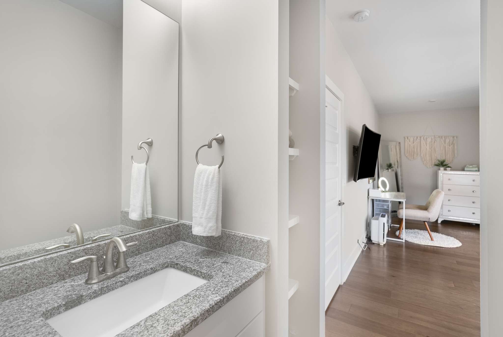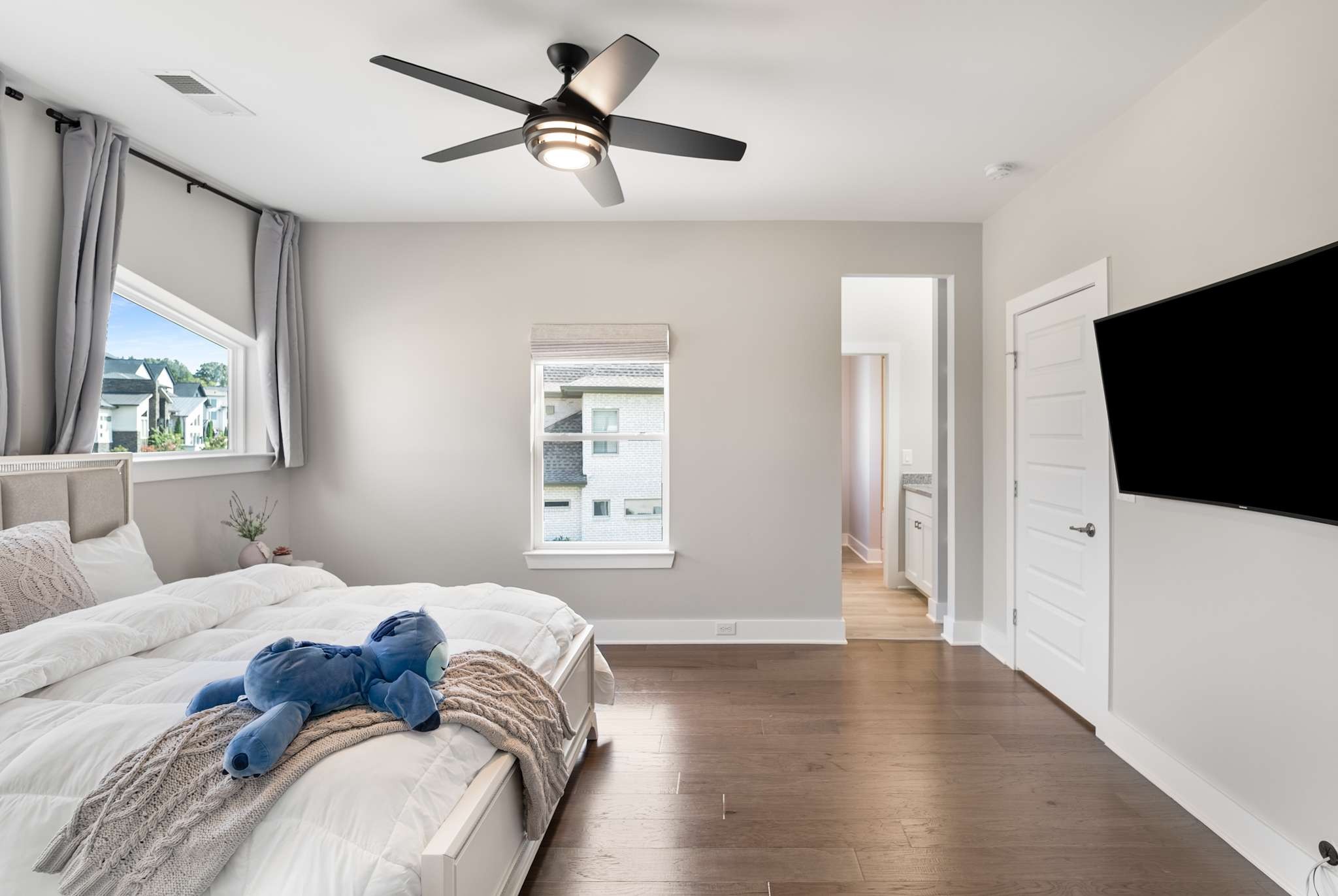 The second floor continues the thoughtful design with two spacious bedrooms connected by a Jack-and-Jill bath, as well as a versatile media room—an ideal retreat for study, gaming, or casual relaxation.
