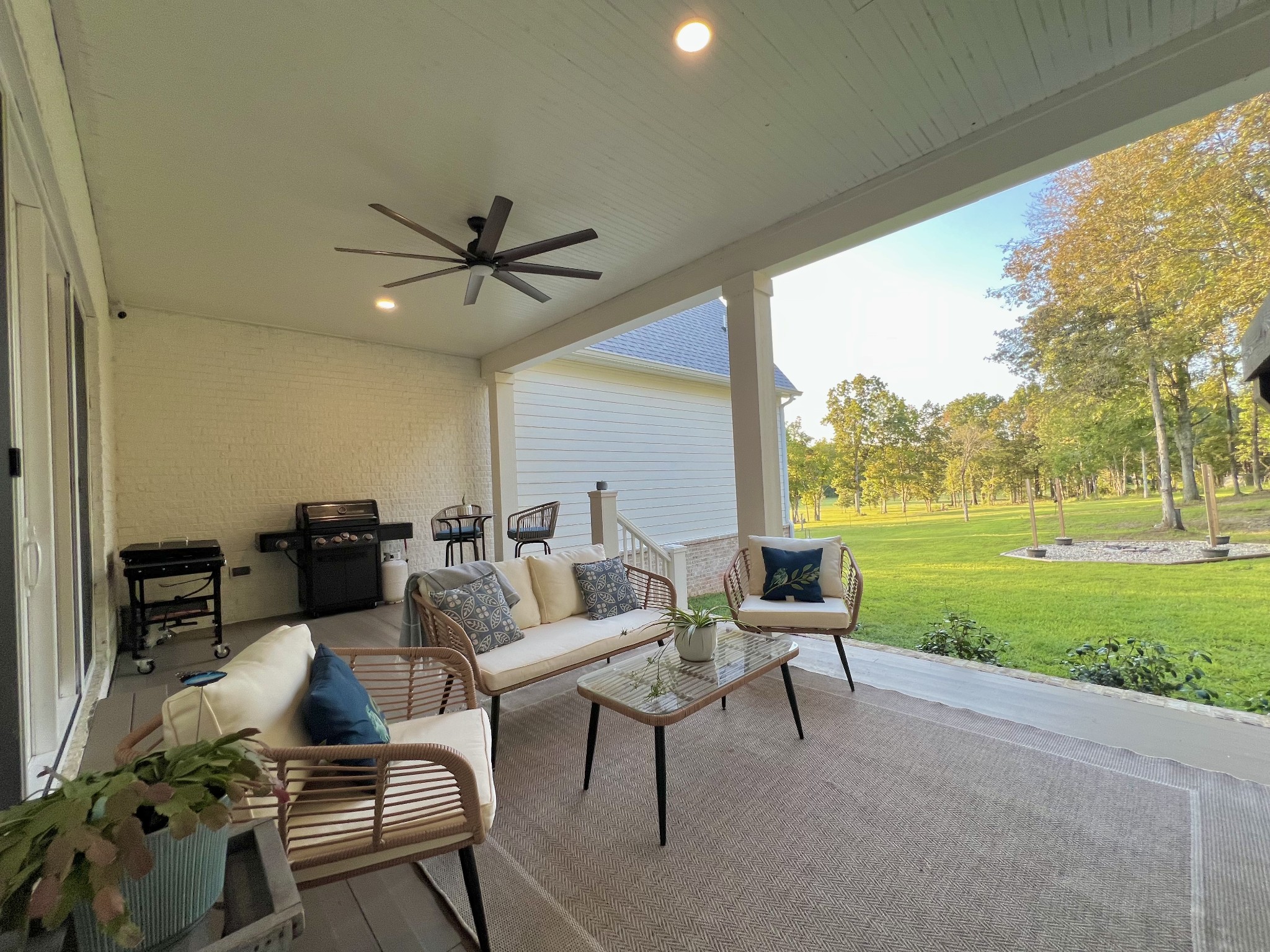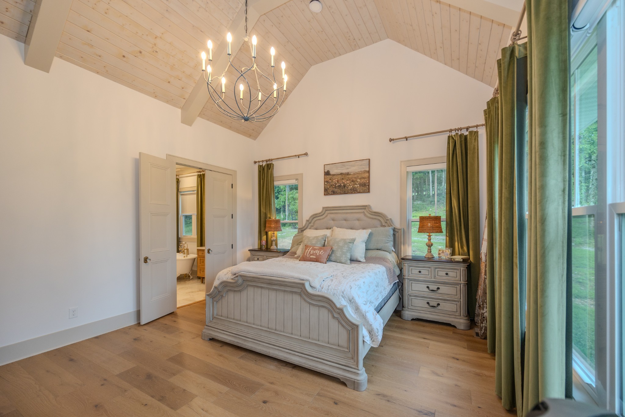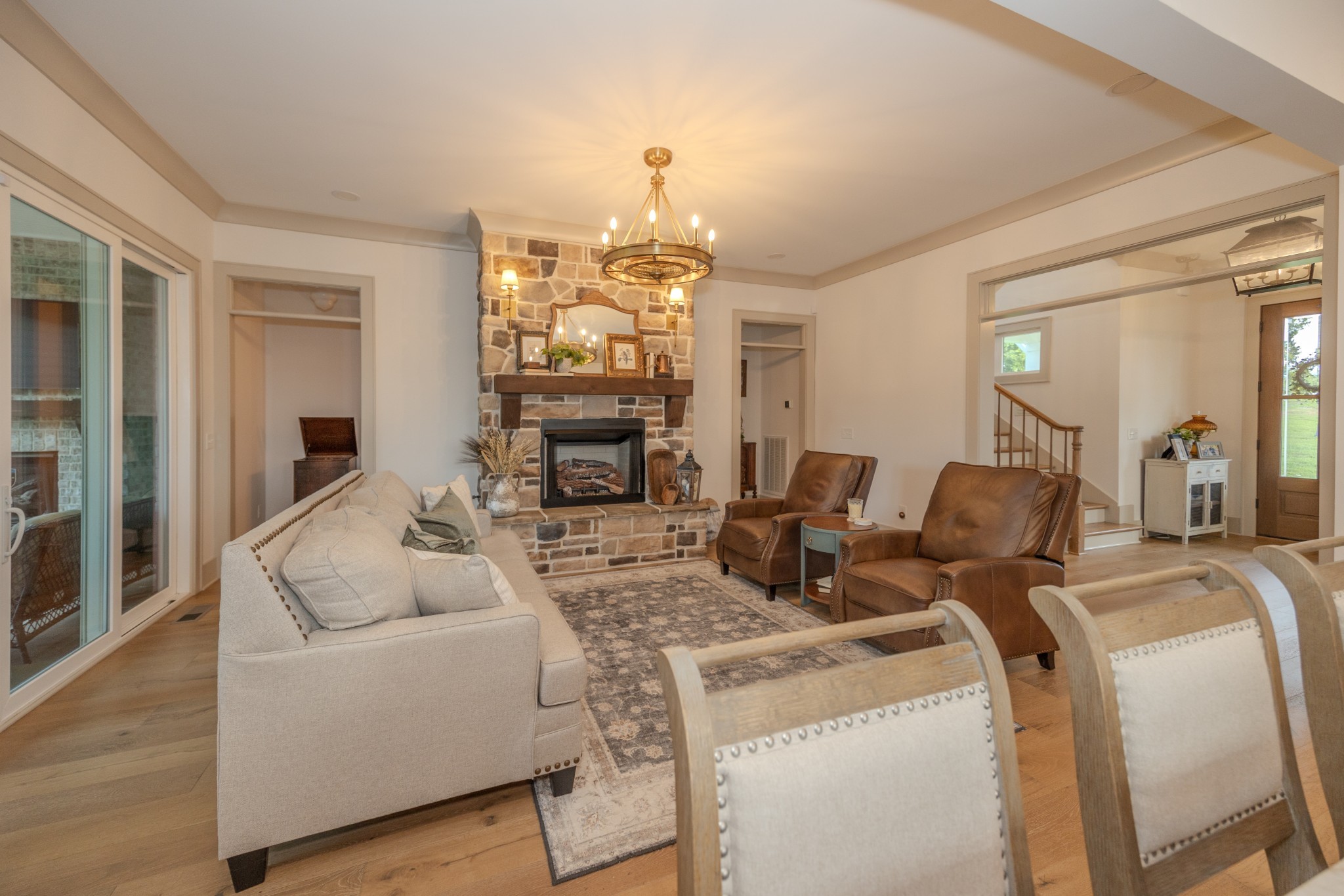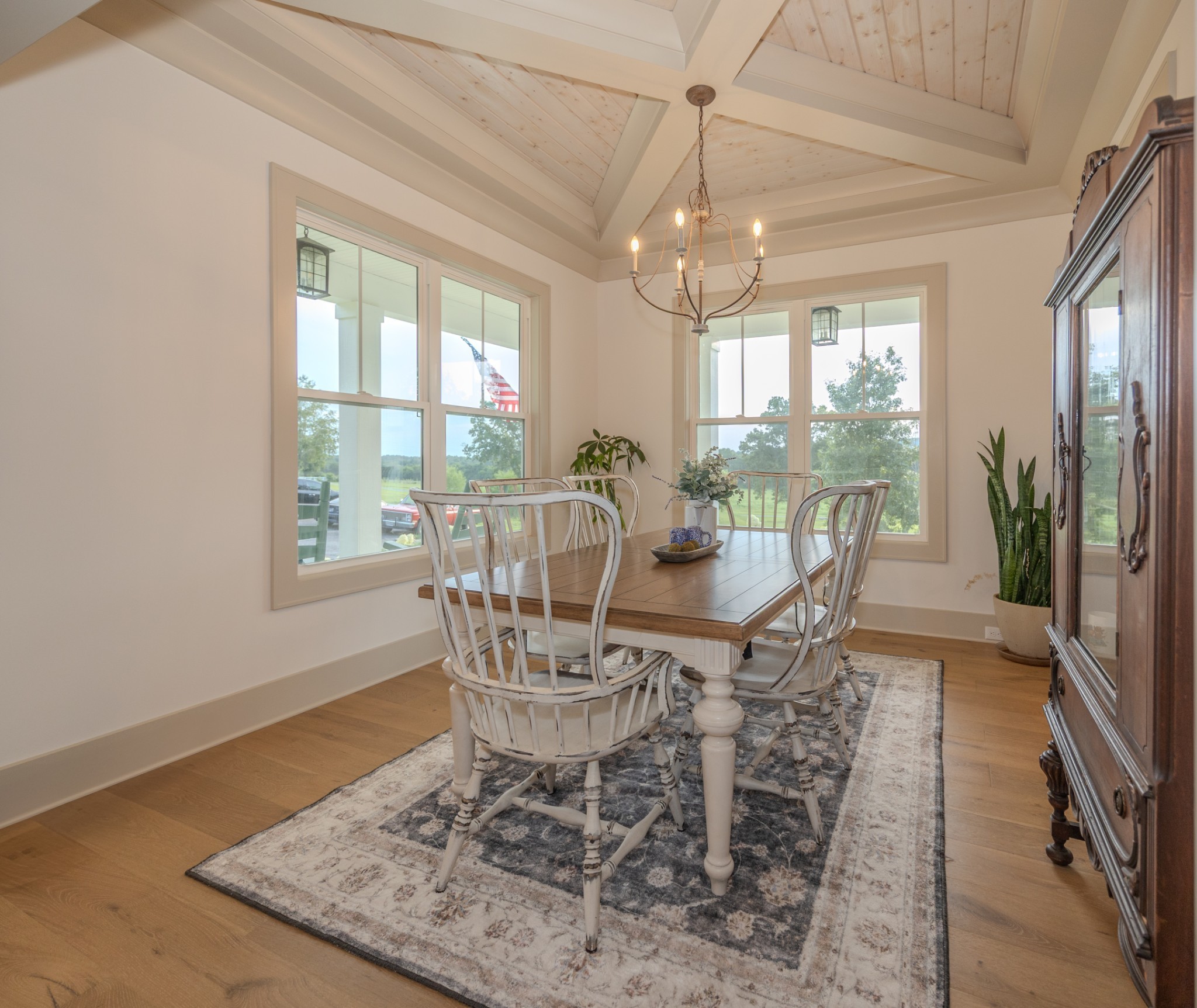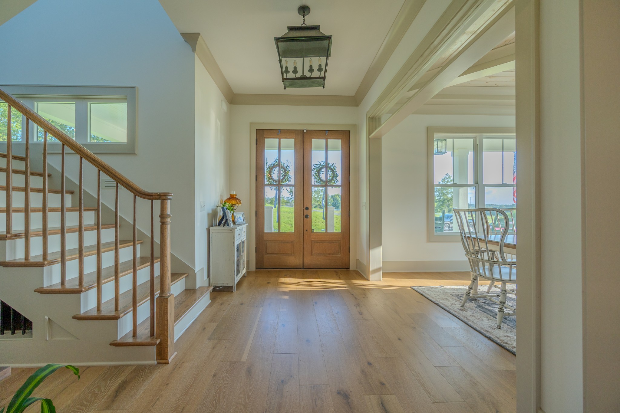 A wide, wrap-around porch welcomes you with Southern charm—perfect for rocking chairs, morning coffee, and evening conversations. Meticulously landscaped with flowering shrubs and warm exterior lighting, the home's curb appeal is second to none.