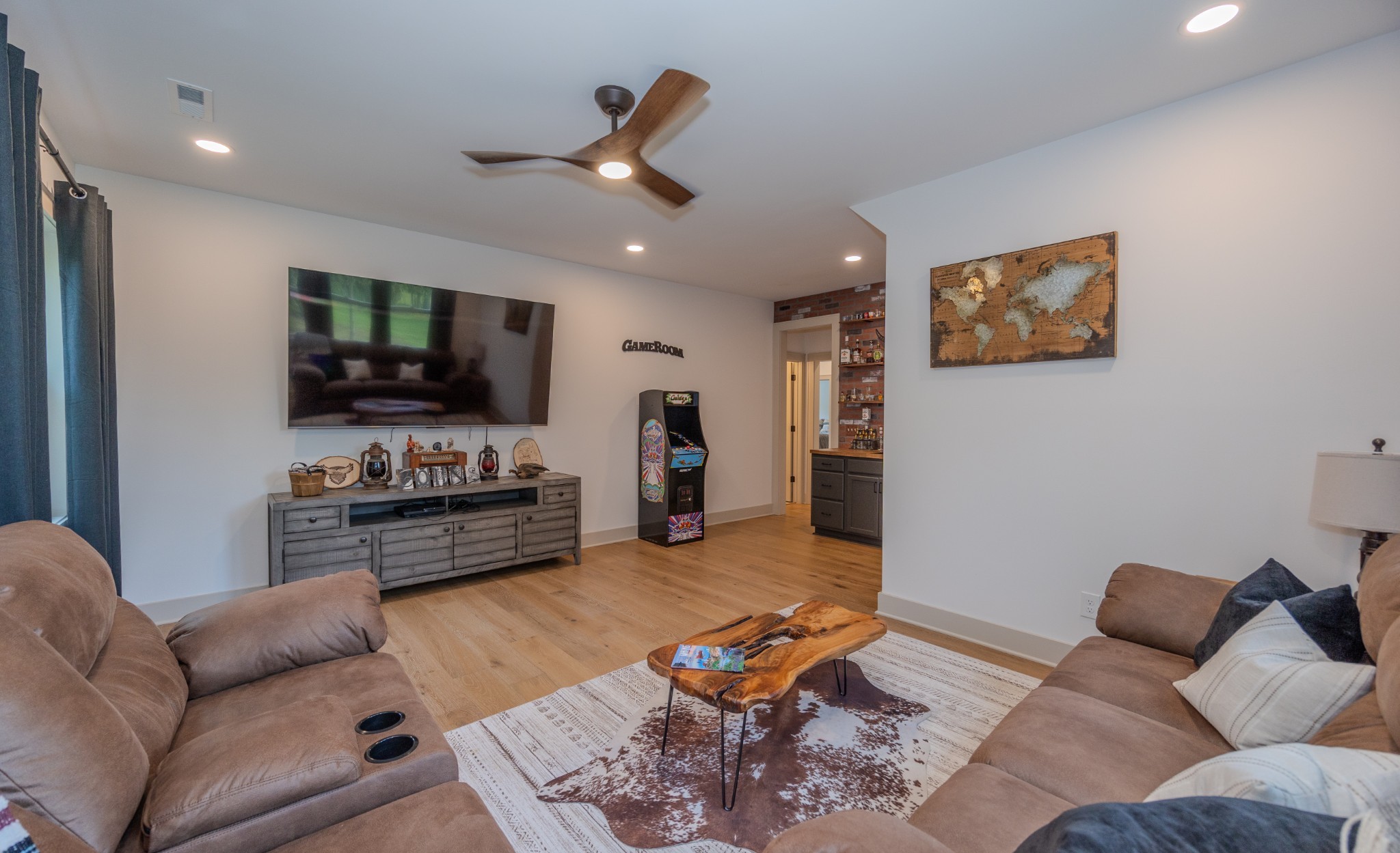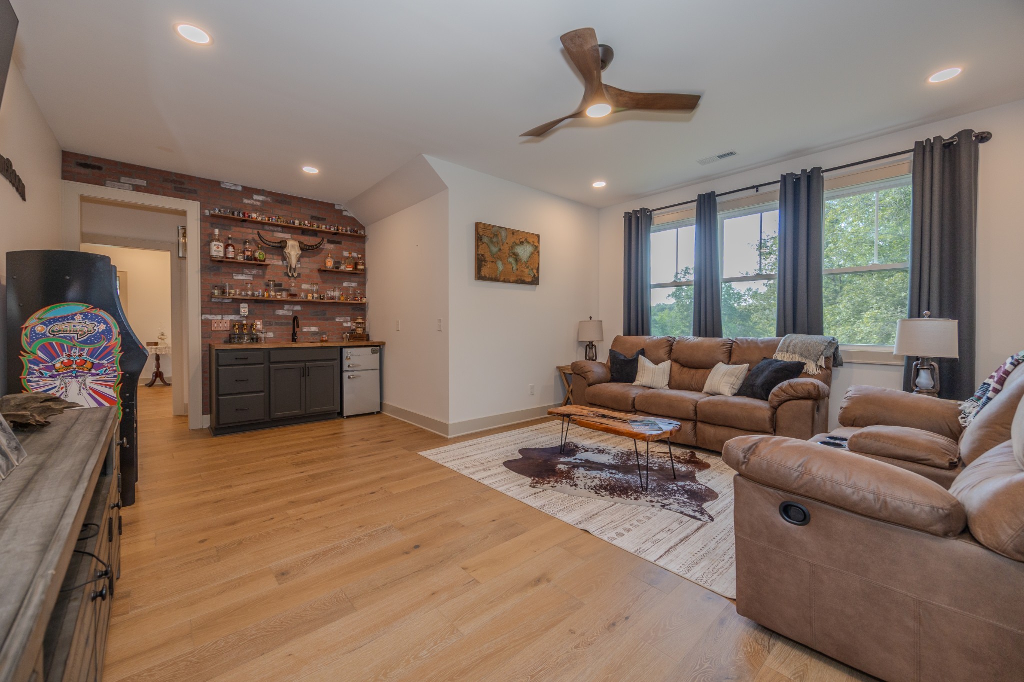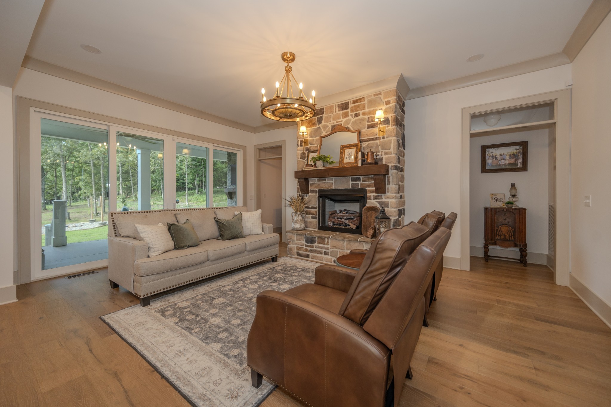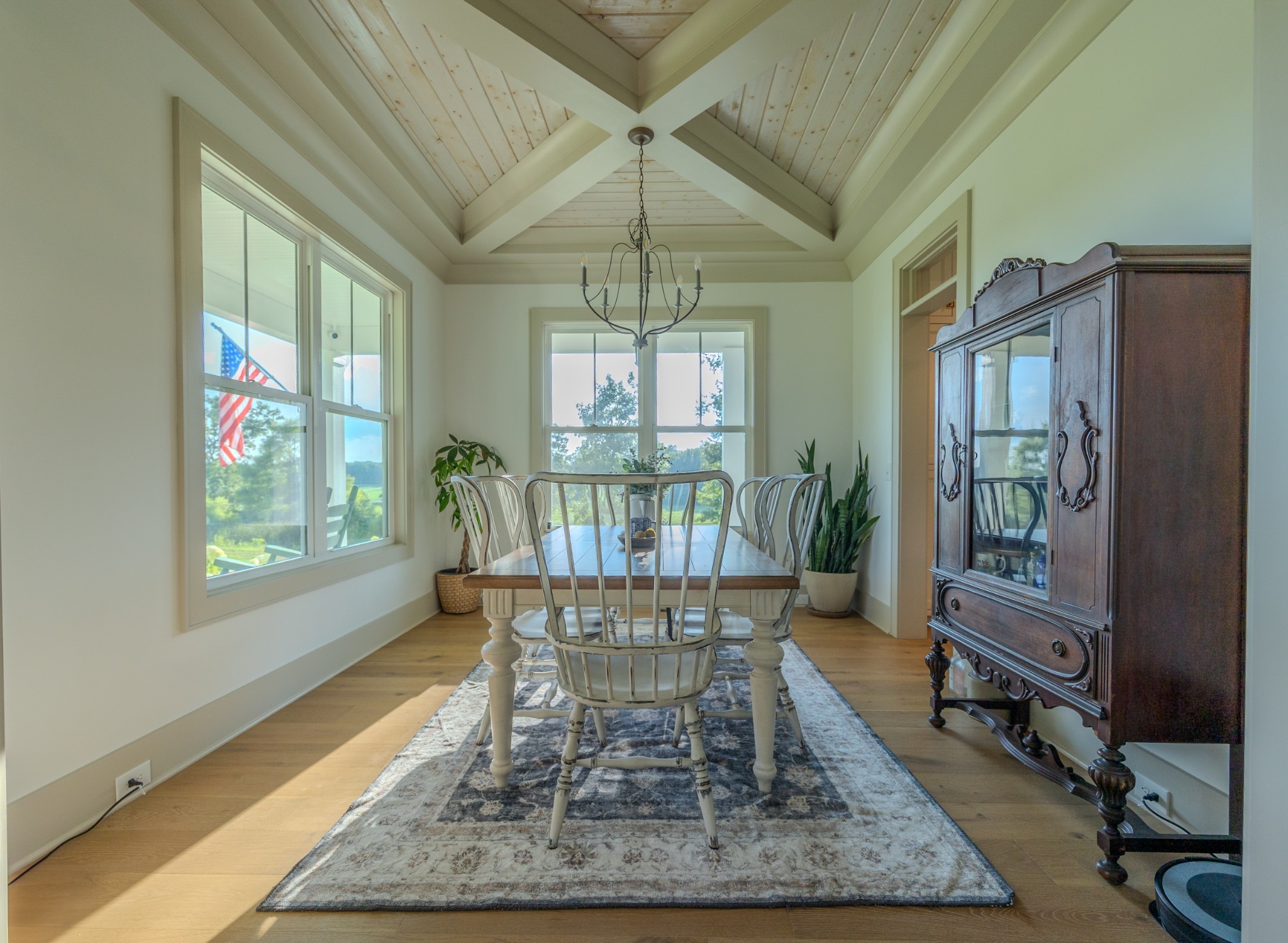 A wide, wrap-around porch welcomes you with Southern charm—perfect for rocking chairs, morning coffee, and evening conversations. Meticulously landscaped with flowering shrubs and warm exterior lighting, the home's curb appeal is second to none.