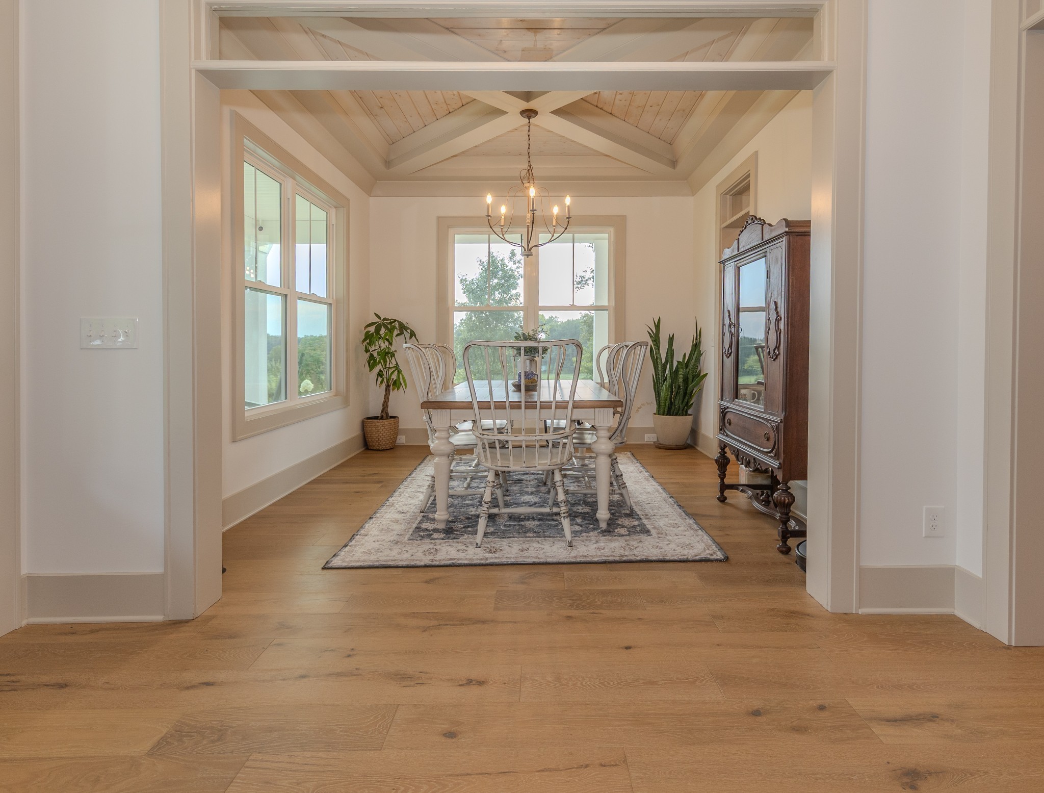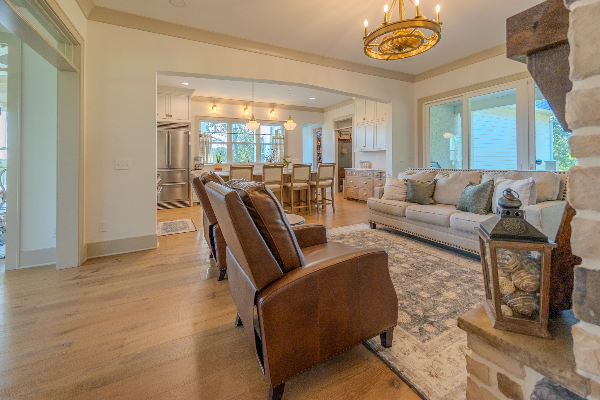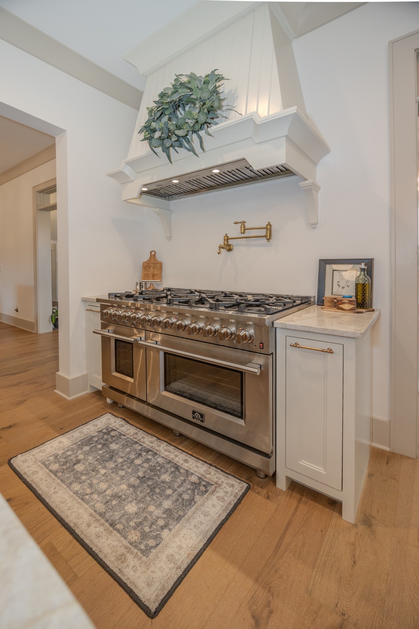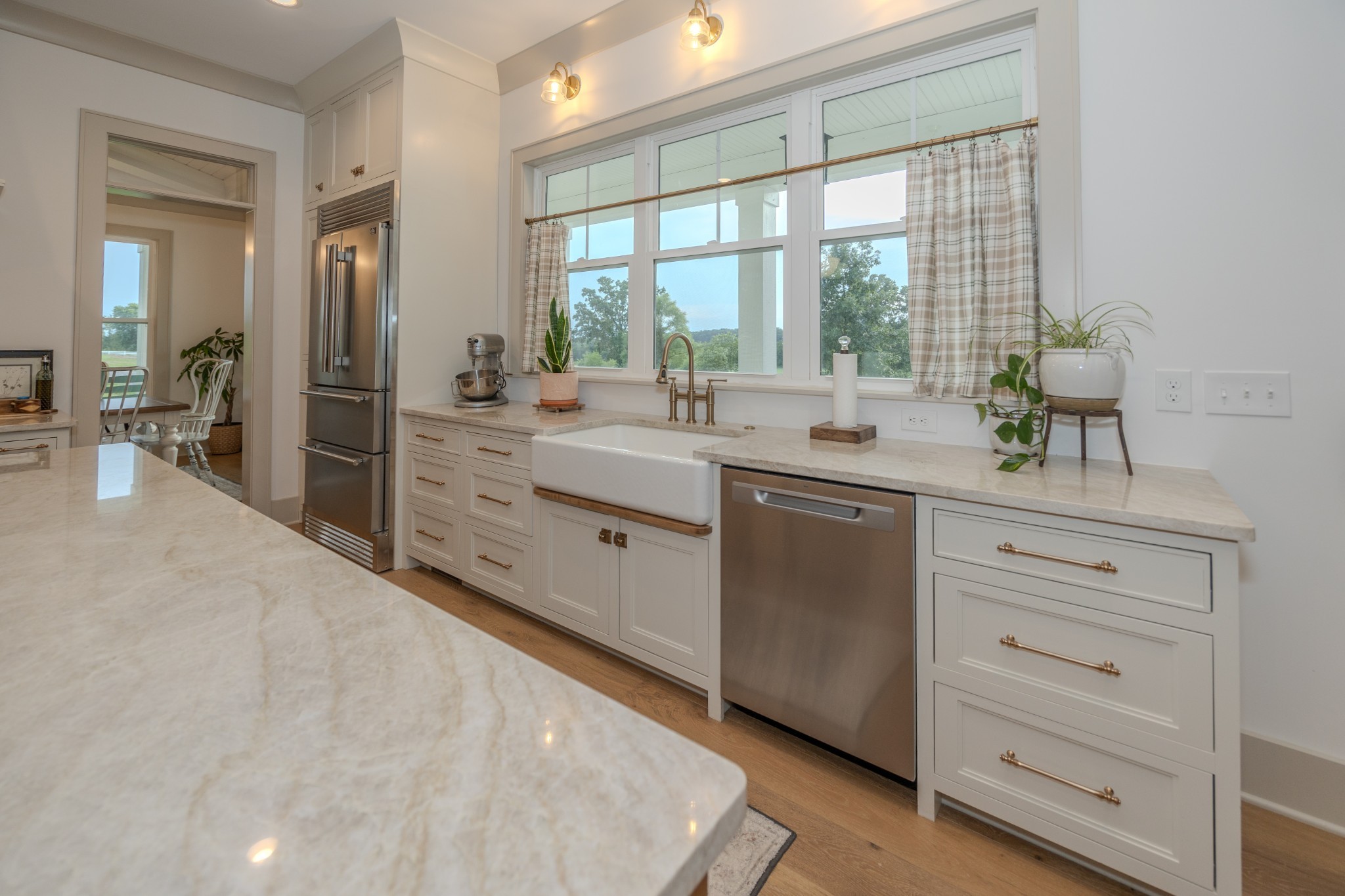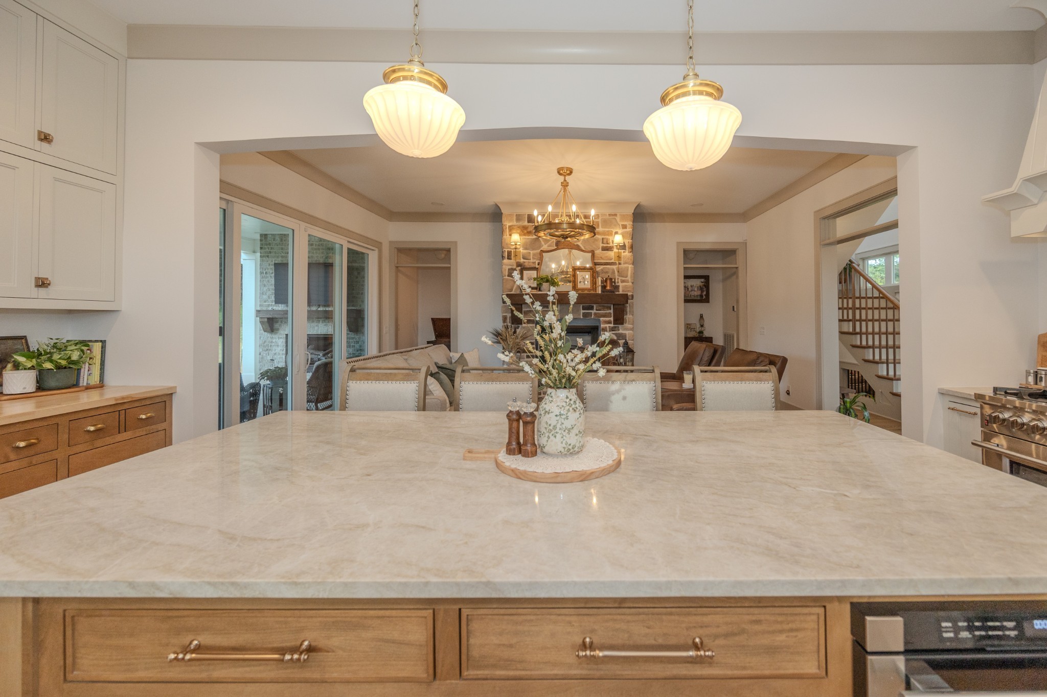 Step inside to a bright, open interior filled with natural light, 10-foot ceilings, and 8-foot doors on the main level. Wide 7-inch finished white oak floors add warmth and sophistication throughout the home. The gourmet kitchen features inset custom cabinetry, Taj Mahal quartzite countertops, and a professional-grade 48-inch gas range—designed to impress even the most discerning home chef.