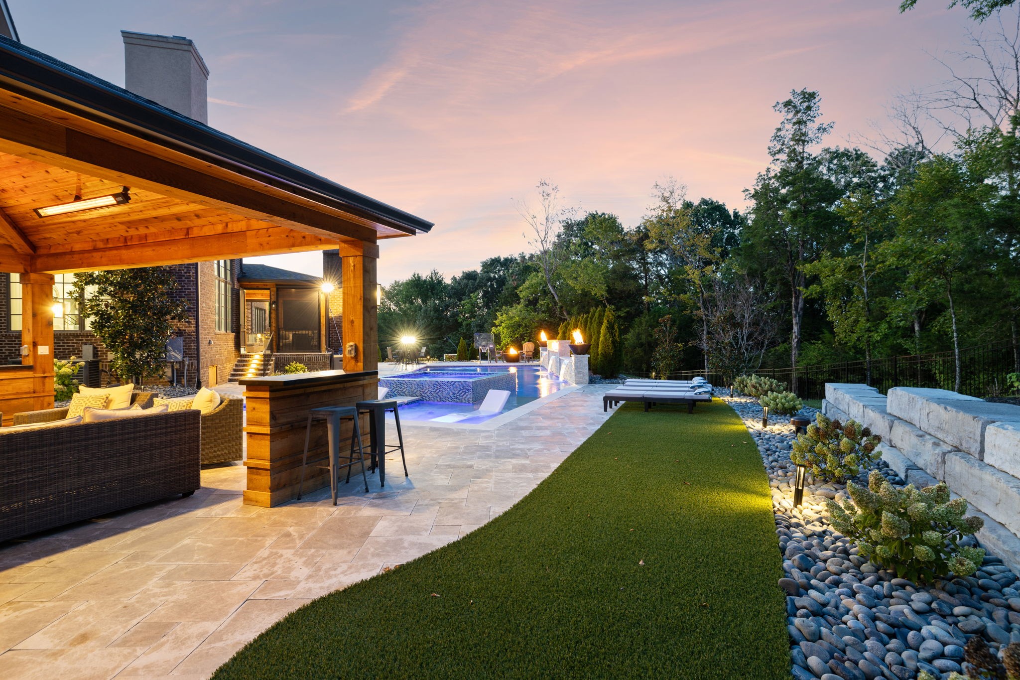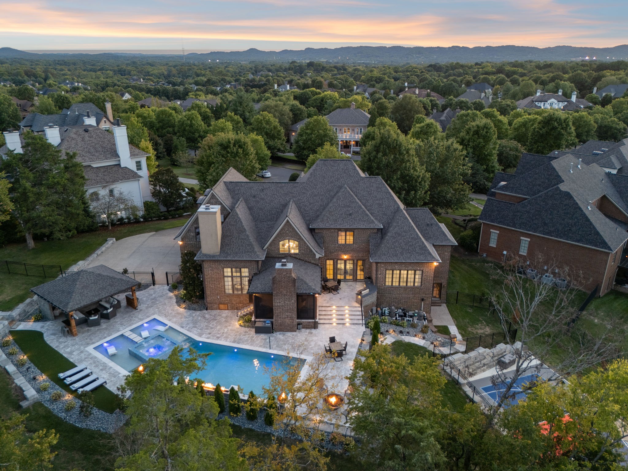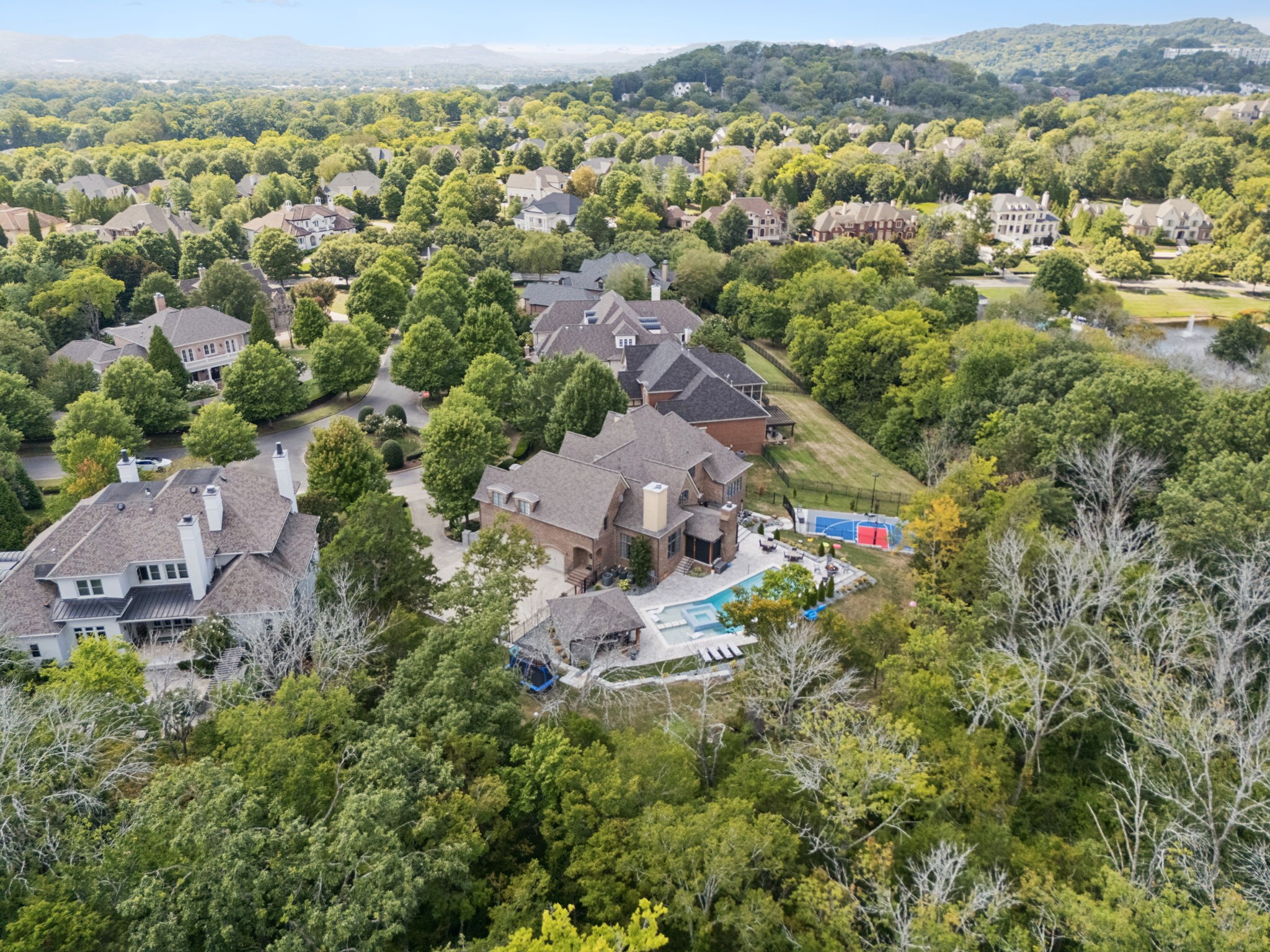 9256 Wardley Park Lane offers spacious living in one of Brentwood’s most desirable areas. Inside, you’ll find open living spaces with high ceilings, a chef’s kitchen with premium appliances and a large island, flexible rooms for an office or guest bedroom on the main level, and a private primary suite with a spa-like bath and a walk-in closet. The backyard is built for entertaining with a luxury pool, covered outdoor living area, and a full sports court. Conveniently located near top-rated schools, shopping, dining, and an easy commute to Nashville.