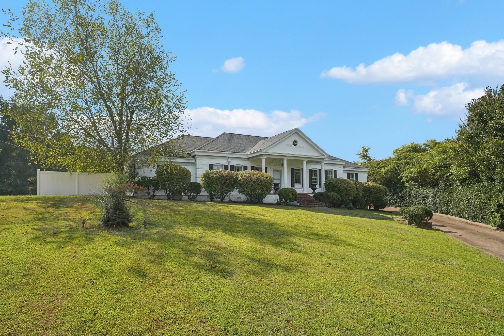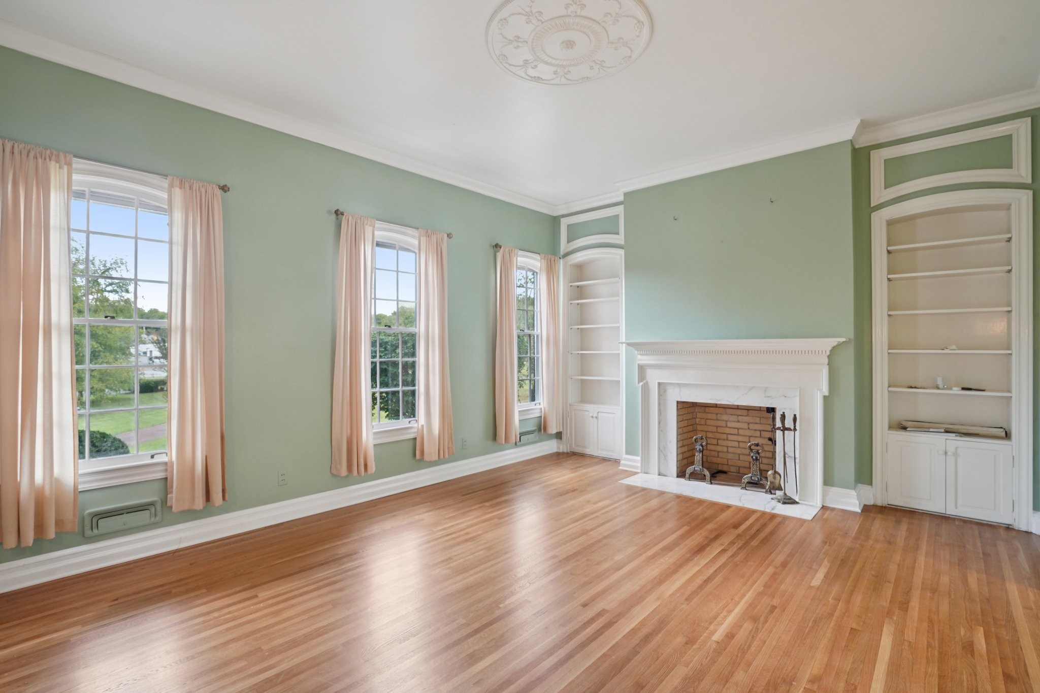 Welcome to this distinguished 3-bedroom, 2-bath residence, gracefully set on nearly 3 acres in the heart of Shelbyville’s historic district. Offering a rare blend of timeless character and modern comfort, this home showcases beautifully refinished oak floors (2025), two inviting fireplaces, and built-in features that reflect enduring craftsmanship.
