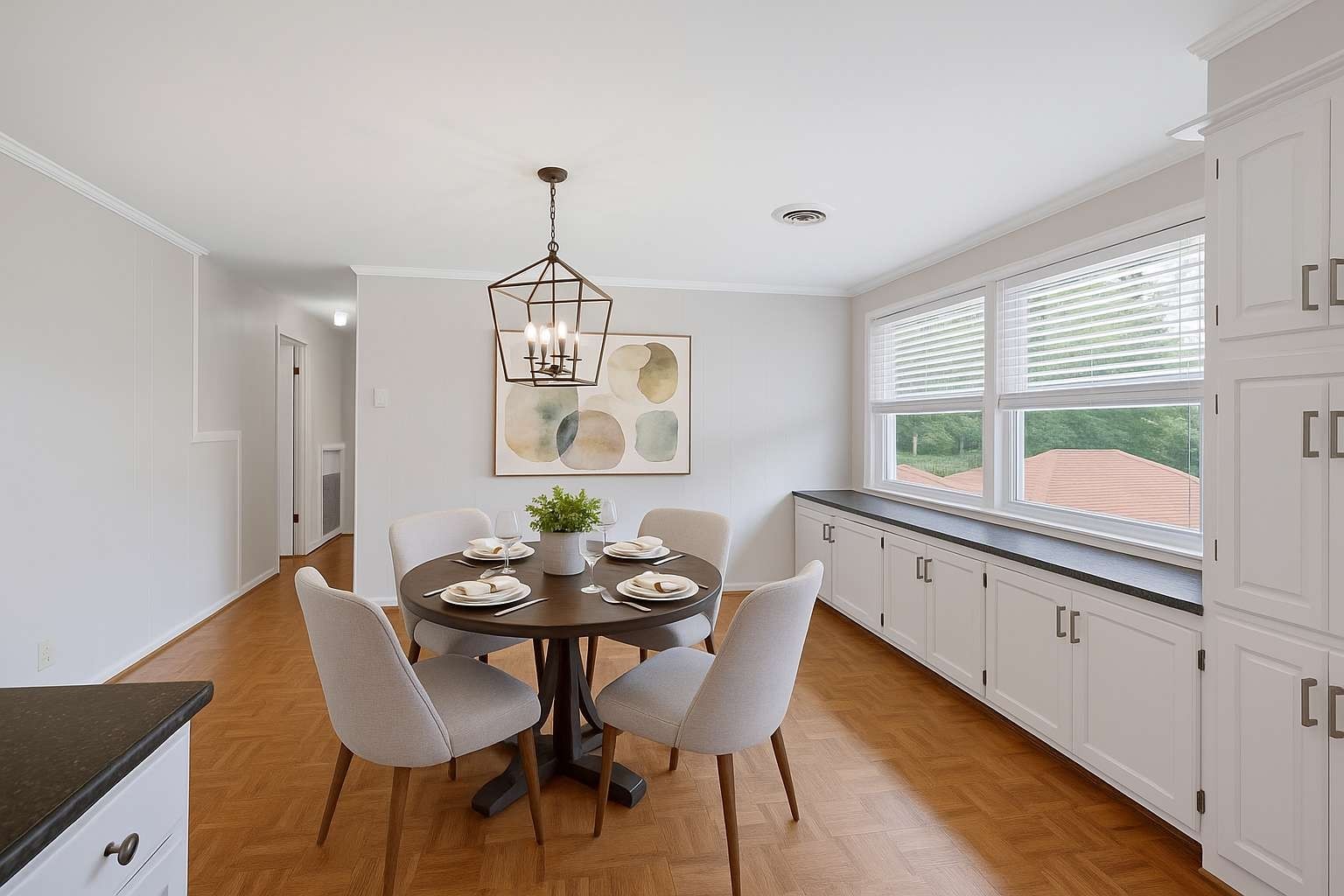 The main level features a spacious living room, formal dining room, and an eat-in kitchen with a pantry, all freshly painted. The finished basement has a large bonus room, laundry area, and a half bath.