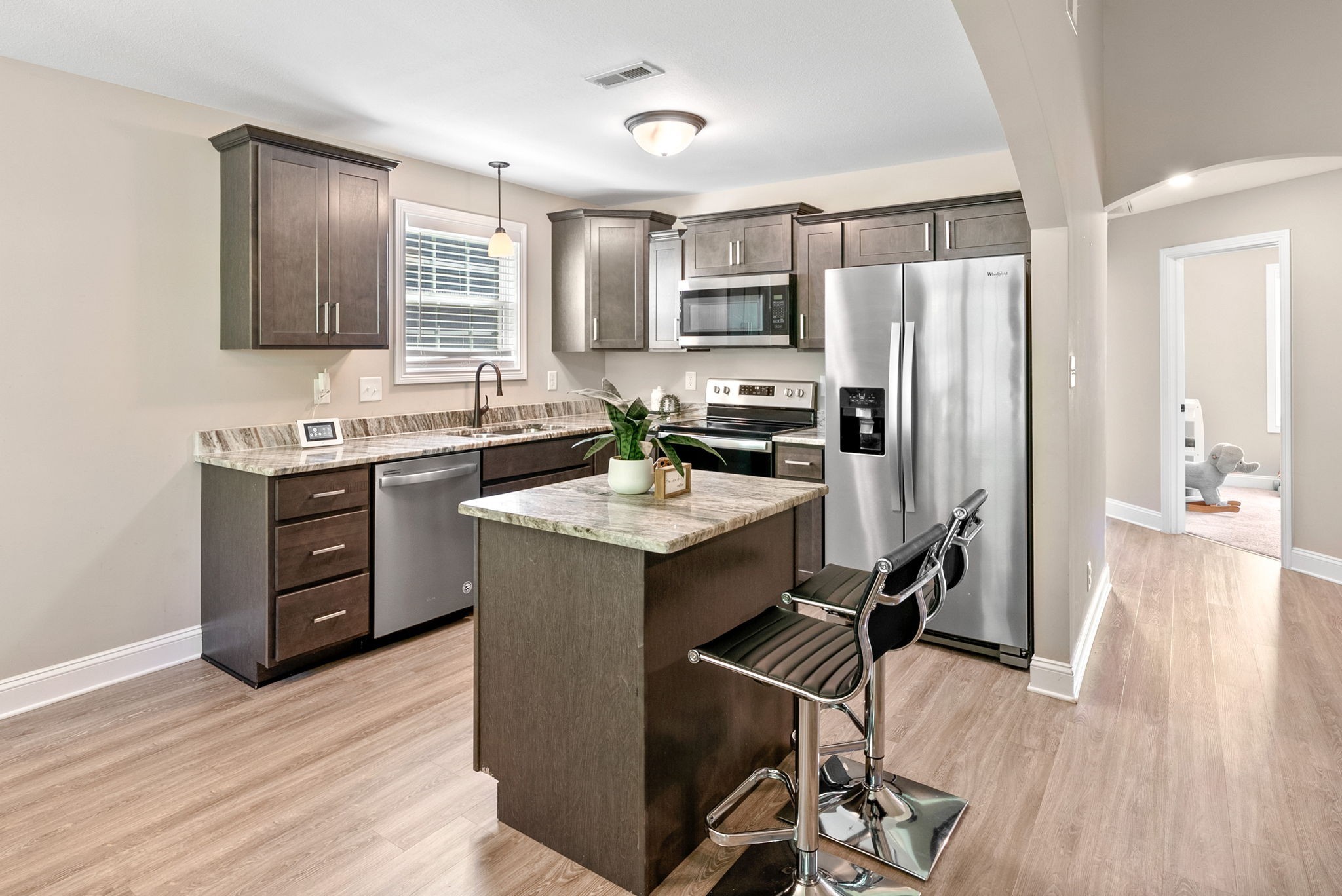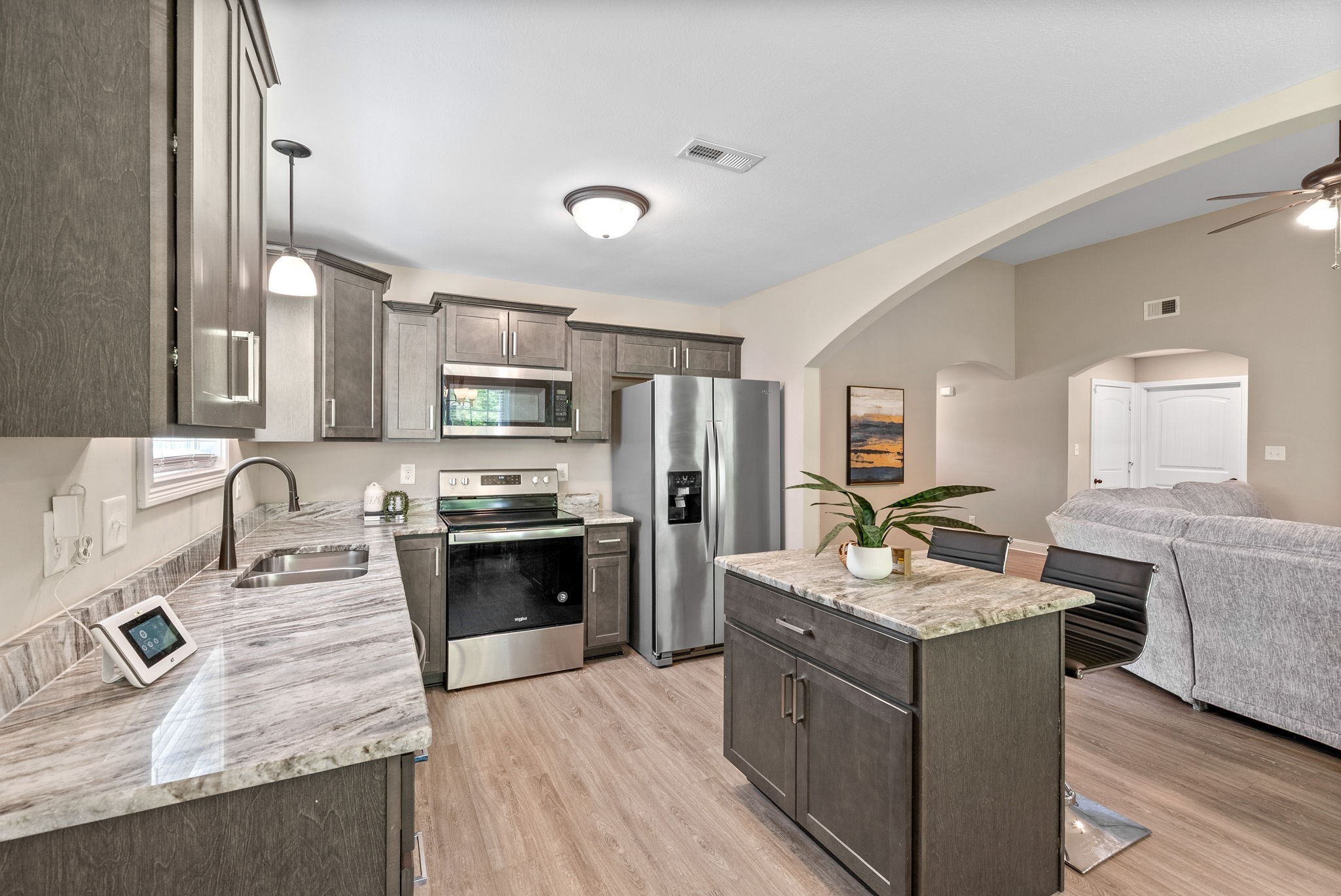 Step inside this stunning 3-bedroom, 2-bath single story home in the highly desired SANGO community and see why it’s the one you’ve been waiting for! With vaulted ceilings, an open-concept layout and a picturesque wooded view, this move-in-ready gem feels even more spacious in person! Built in 2020, the home features a beautifully designed floorplan with an airy living room & open kitchen with stainless steel appliances, a center prep island, gorgeous cabinetry, and sleek granite countertops. The oversized primary suite has a beautiful tray ceiling, en-suite bath with double sinks and custom tiled shower. Across the home, you'll find two additional spacious bedrooms with plenty of storage and a full bath. Step outside to the covered back deck, located just off the kitchen and dining area, perfect for grilling and enjoying the serene wooded view. This property offers serene surroundings with easy access to I-24, Ft. Campbell (~15 mi), Nashville (~45 mi to Nashville), and parks (Rotary Park ~2 miles). This home provides easy access to everything you need!