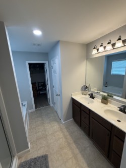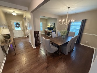 Welcome to 3121 Castleton Dr. Home featuring, hardwood floors and an open floor plan perfect for modern living and entertaining. The kitchen features a bar and an island, ideal for meal prep and gatherings, seamlessly flowing into the living and dining areas. The oversized primary bedroom is complete with two walk-in closets and a private bath. The bonus room is upstairs, perfect for a home office, relaxing, or guest space. Step outside to a fully fenced backyard, with plenty of room for outdoor fun. Nestled on a cul-de-sac, this home combines comfort, style, and location.
