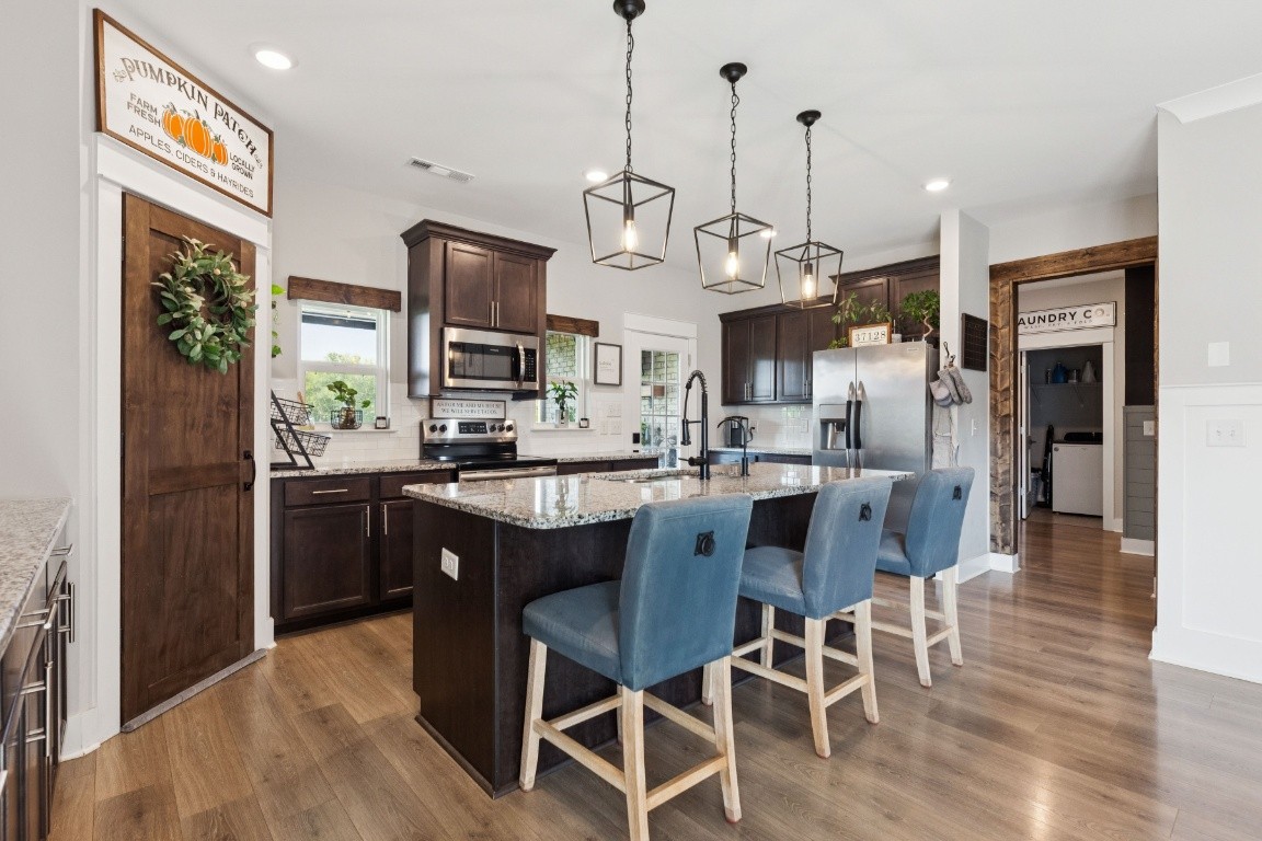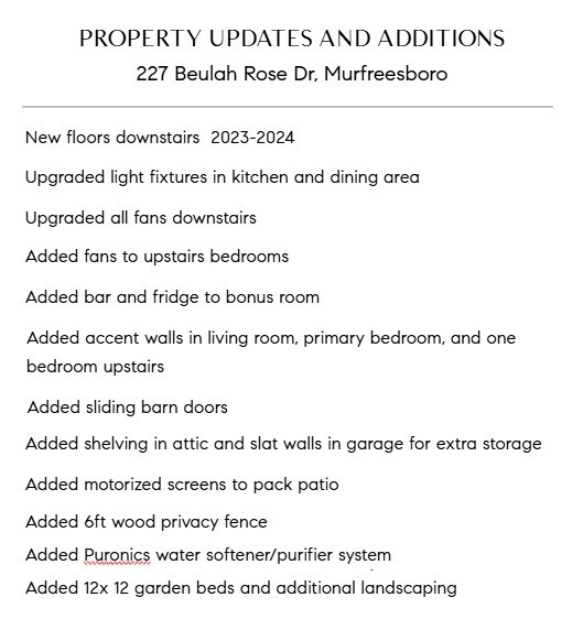 Beautifully maintained home on an elevated Prime Corner Lot in the desirable Nature Walk neighborhood, off Franklin Rd. This move-in ready home balances comfort and style with 4BR/3.5BA plus a bonus room with bar and fridge that can flex as a 5th bedroom. Updates shine throughout—new flooring, modern light fixtures, fans, and hardware, accent walls, sliding barn doors, attic shelving, and a water softer system—all designed to make daily living easier. Out back, enjoy your own private retreat with a fully fenced yard, 12x12 garden beds, and a covered patio with motorized screens - perfect for game nights, grilling, or just unwinding. You’ll also love the Nature Walk community, with walking trails and local events that make it feel like home from day one. Check out the last photo for a full list of upgrades and updates. Ask your agent about possible lender credit!