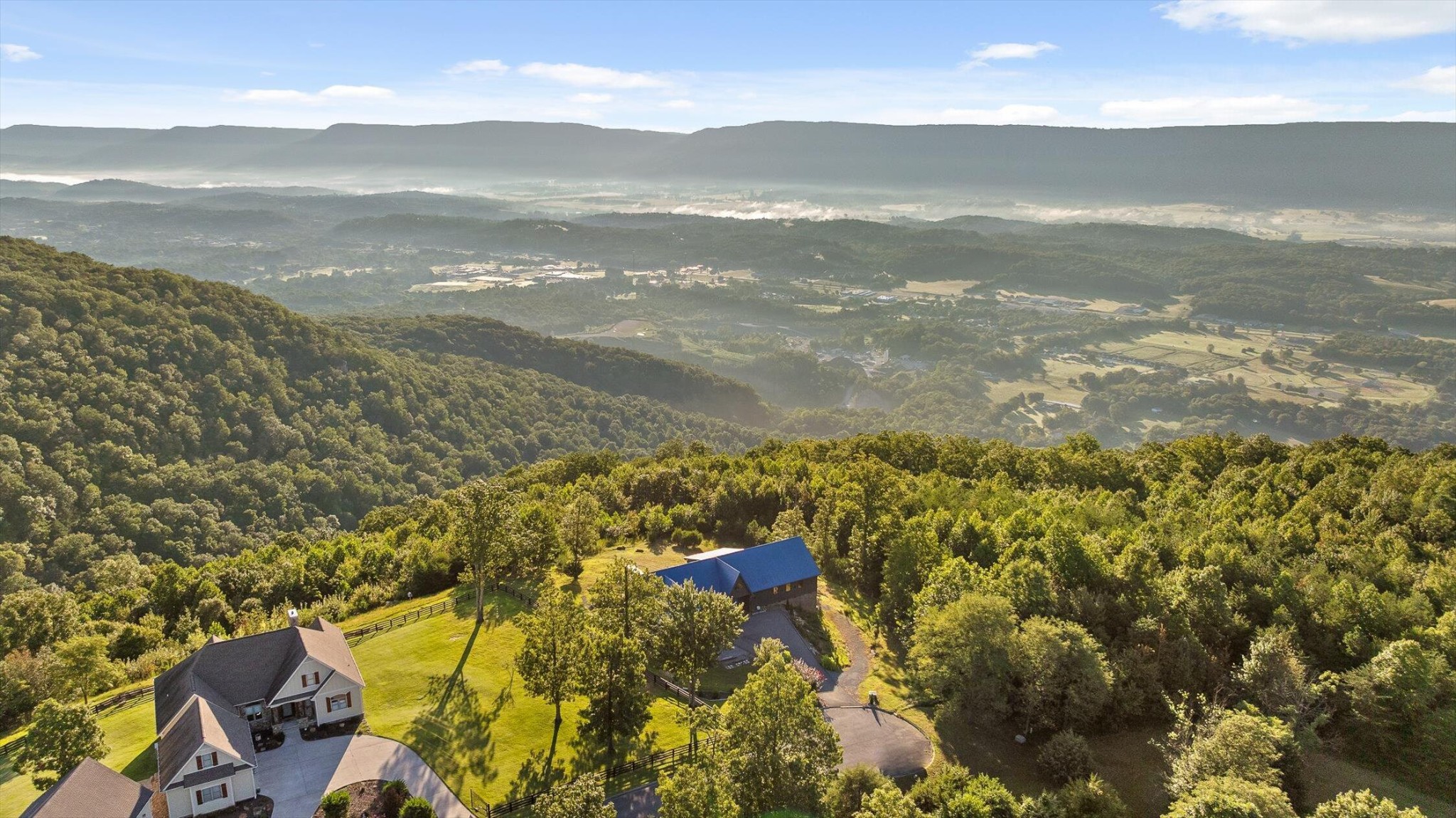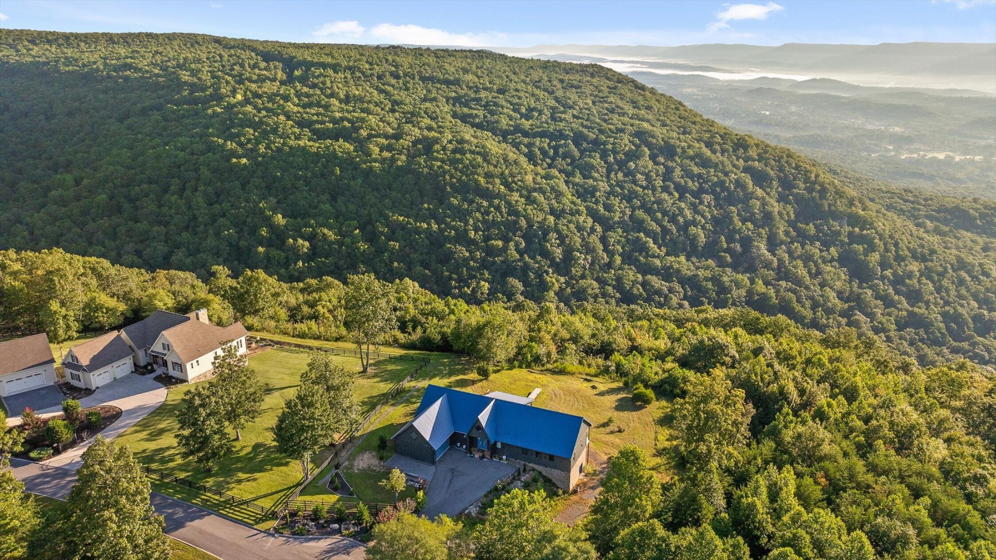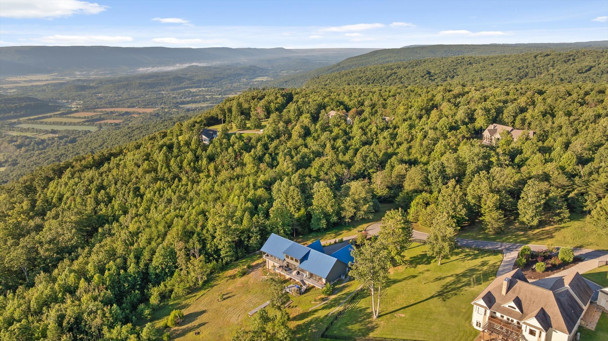 Sitting 1,920 feet above the Sequatchie Valley, this welcoming home was designed to celebrate its natural surroundings. Captivating views inspire all day long: From brilliant, orange-streaked sunrises and a panorama of majestic mountains to starlit nights above the twinkly lights of the Dunlap City below, it's all on display from literally every room in the house. Off each bedroom and the great room, multi-level decks, crafted from maintenance-free materials, also provide inviting vantage points for taking in the ever-changing views. This gracious 3,390-square-foot house is an ode to modern minimalism. Every detail has been curated with care, from the eco-conscious materials to the kitchen conceived by a Cordon Bleu-trained chef to the linear layout offering unobstructed views and free-flowing natural light. Set on a gracious ±4.3 acres at the end of a quiet cul-de-sac, with the option to acquire neighboring lots for even greater seclusion, this property is a rare find. Located within the gated Fredonia Mountain Nature Resort community, high atop the Cumberland Plateau, it offers not only privacy but a sense of belonging. With miles of hiking trails, waterfalls, lakes and woodland wildlife, this is a place to connect with both nature and neighbors. Low HOA fees, minimal taxes and no state income tax add practical appeal. Few properties in Sequatchie County offer such sweeping views, and fewer still combine them with the quiet luxury, exquisite craftsmanship and the singular setting found here.