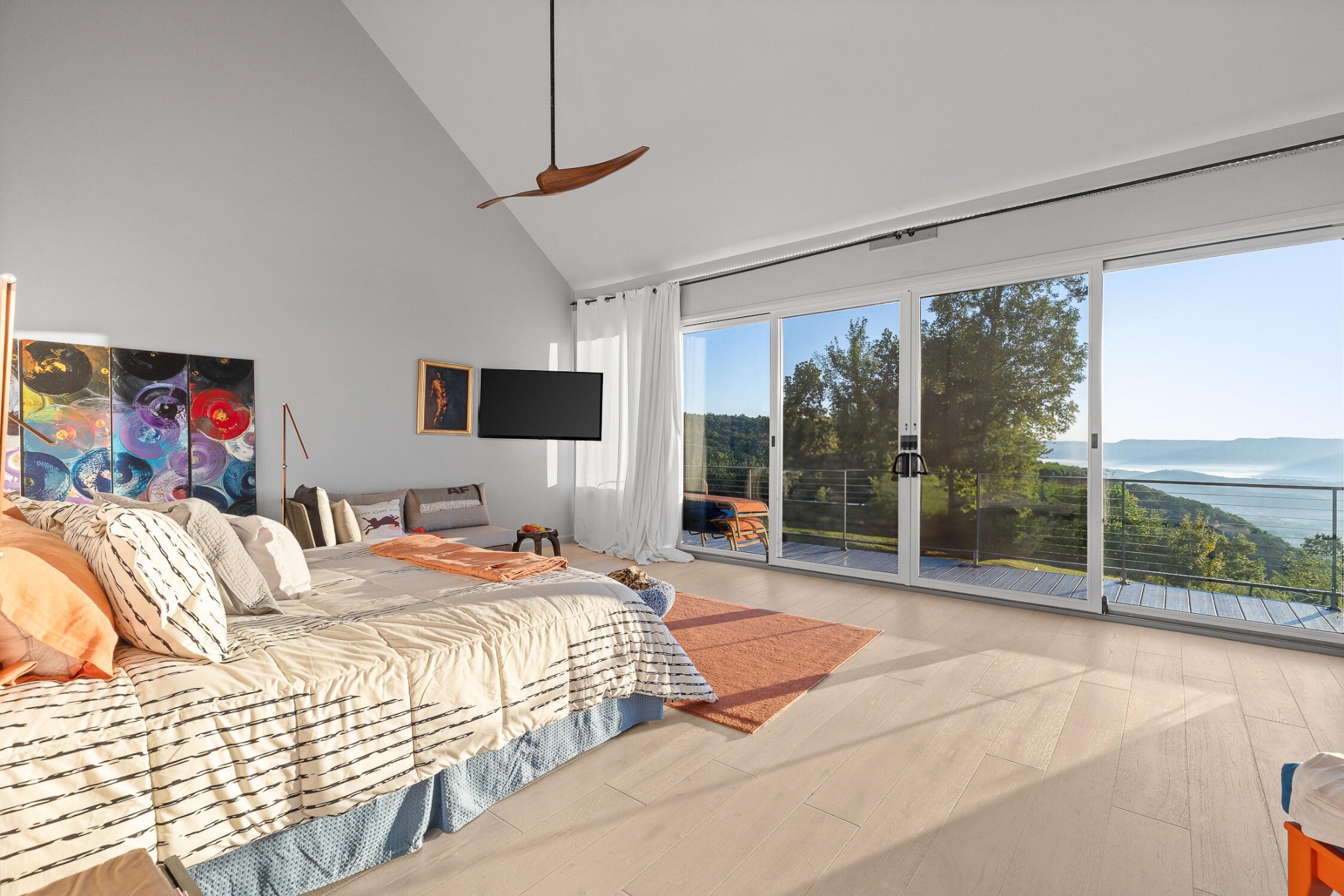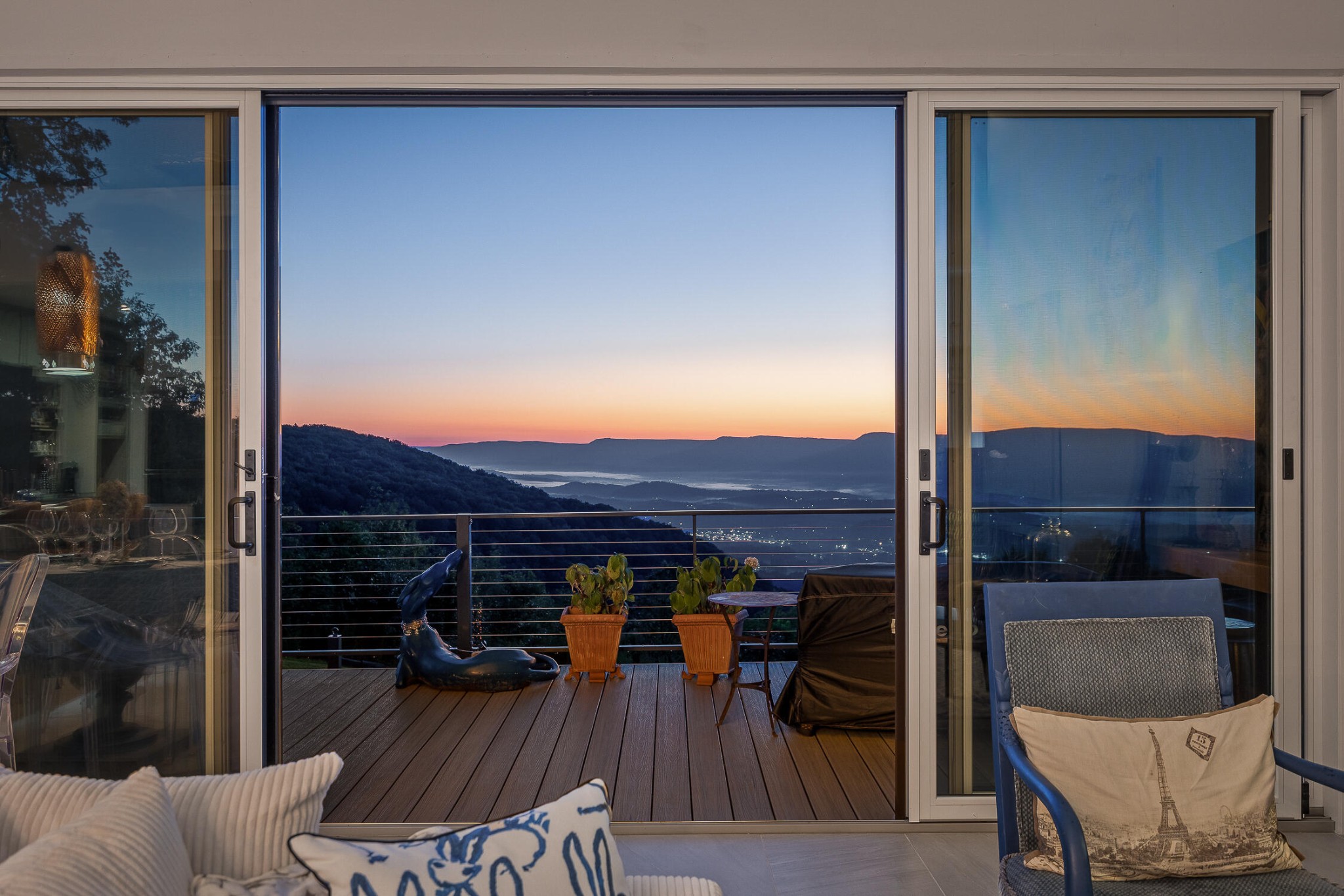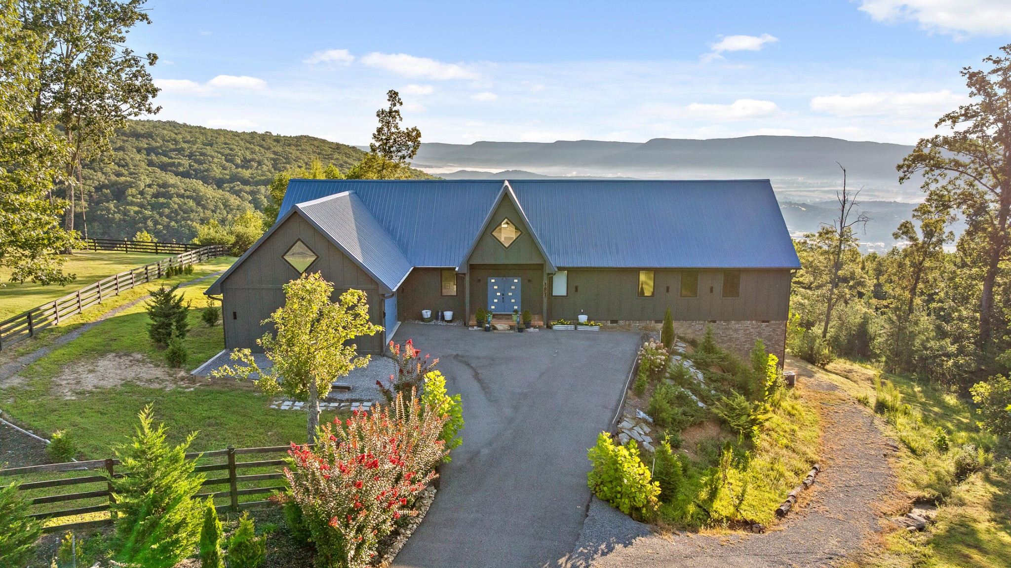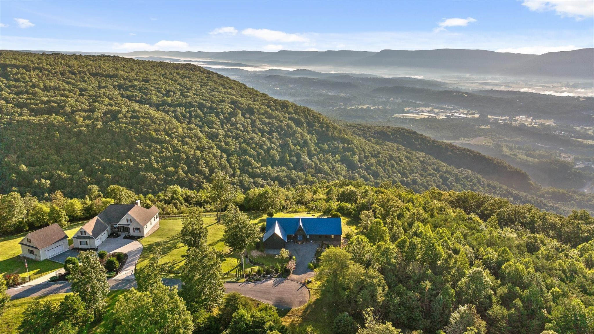 Sitting 1,920 feet above the Sequatchie Valley, this welcoming home was designed to celebrate its natural surroundings. Captivating views inspire all day long: From brilliant, orange-streaked sunrises and a panorama of majestic mountains to starlit nights above the twinkly lights of the Dunlap City below, it's all on display from literally every room in the house. Off each bedroom and the great room, multi-level decks, crafted from maintenance-free materials, also provide inviting vantage points for taking in the ever-changing views. This gracious 3,390-square-foot house is an ode to modern minimalism. Every detail has been curated with care, from the eco-conscious materials to the kitchen conceived by a Cordon Bleu-trained chef to the linear layout offering unobstructed views and free-flowing natural light. Set on a gracious ±4.3 acres at the end of a quiet cul-de-sac, with the option to acquire neighboring lots for even greater seclusion, this property is a rare find. Located within the gated Fredonia Mountain Nature Resort community, high atop the Cumberland Plateau, it offers not only privacy but a sense of belonging. With miles of hiking trails, waterfalls, lakes and woodland wildlife, this is a place to connect with both nature and neighbors. Low HOA fees, minimal taxes and no state income tax add practical appeal. Few properties in Sequatchie County offer such sweeping views, and fewer still combine them with the quiet luxury, exquisite craftsmanship and the singular setting found here.