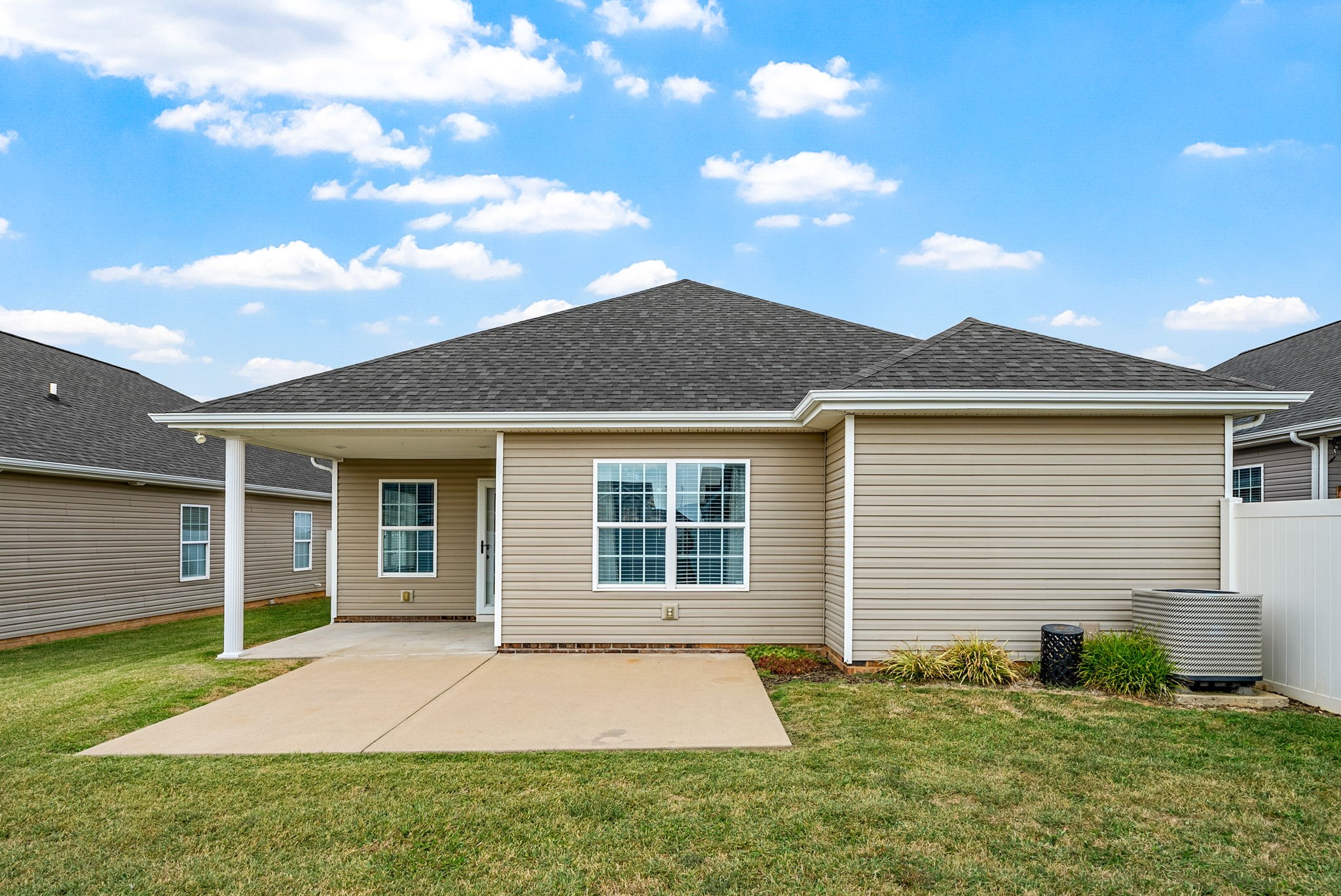 Well-maintained 3 bedroom, 2 full bathroom patio home featuring an open kitchen and dining area with pantry. Living room offers trey ceiling and propane gas fireplace. Primary suite includes trey ceiling, large walk-in closet, and private bath. Additional features include a 2-car garage, covered front porch, 11x10 covered patio, and additional uncovered patio space.
