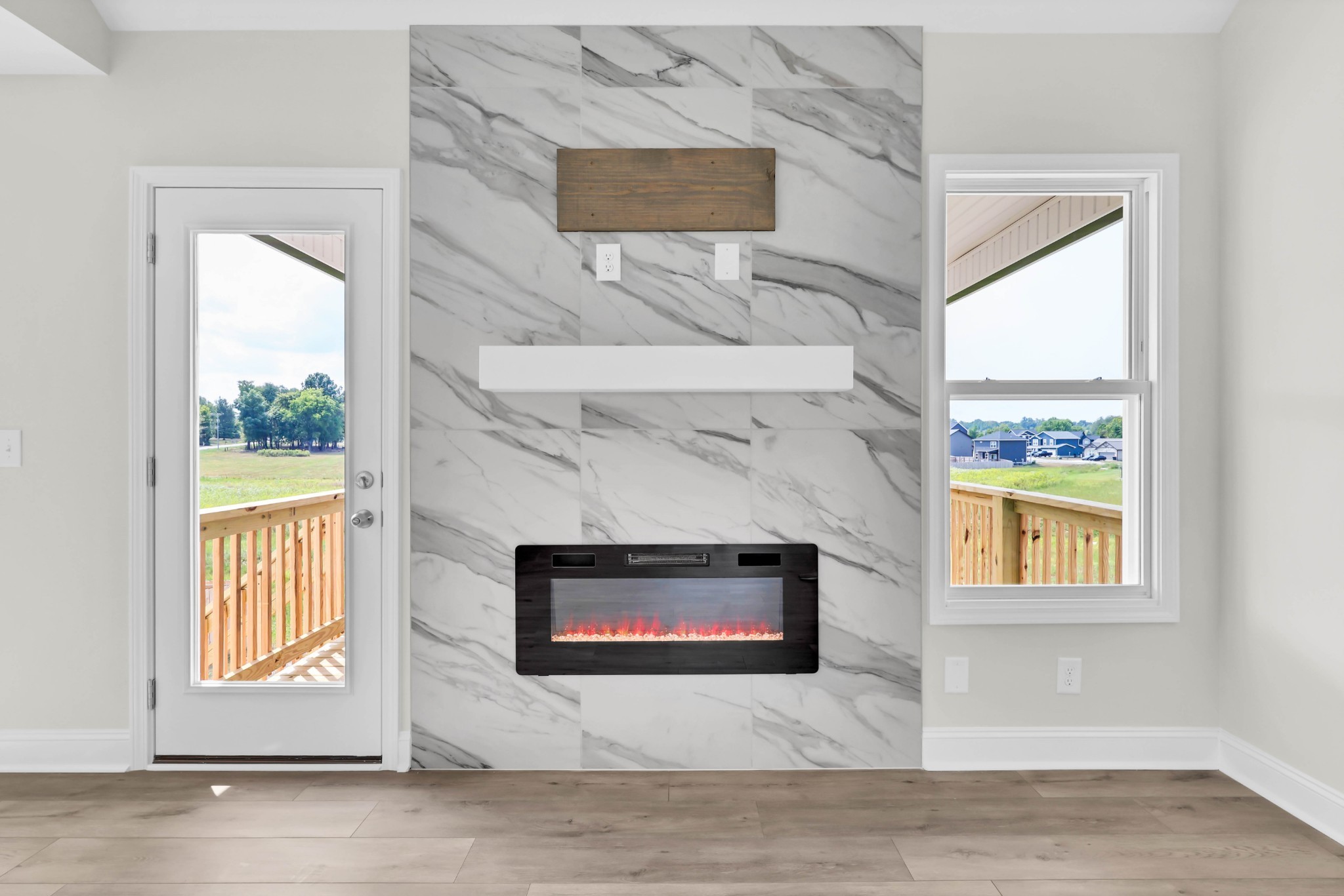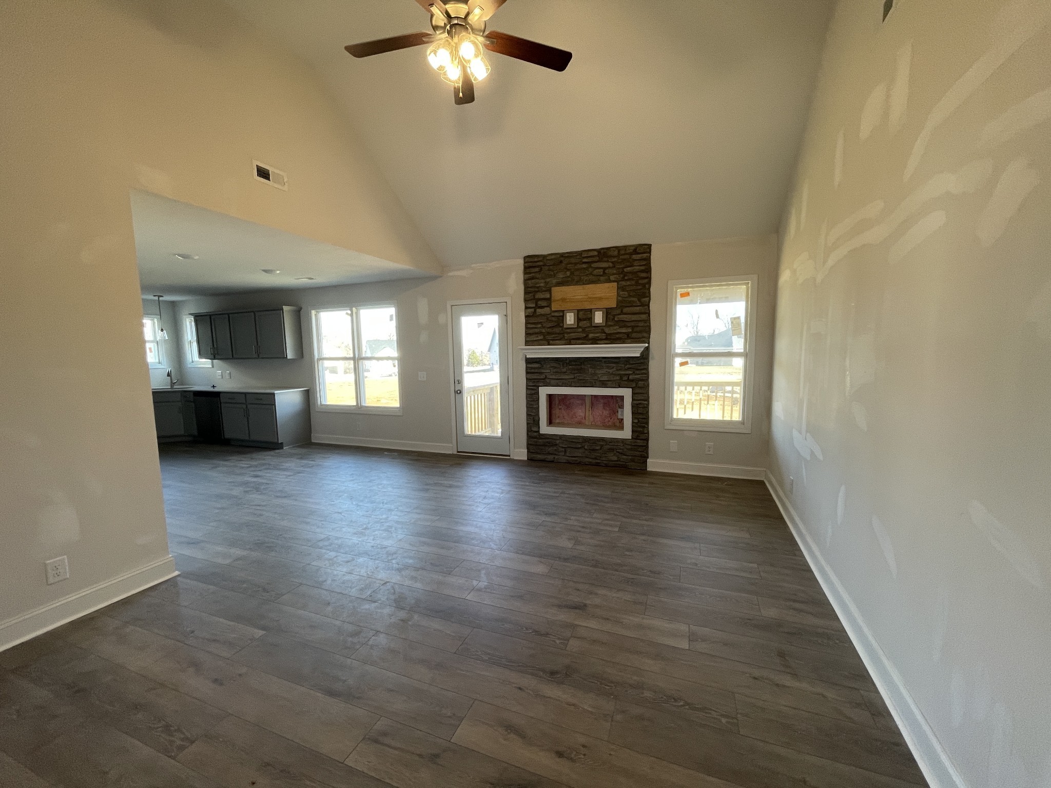 Welcome to this beautifully designed home featuring a grand, two-story entry foyer and a cozy stone fireplace in the main living area. This 4-bedroom, 3-bath residence offers luxurious laminate flooring and upgraded countertops in the kitchen, creating a modern yet comfortable feel. The master suite boasts an oversized, designer-tiled shower, while the covered deck provides a perfect outdoor retreat. With a spacious rec room and extra storage throughout, this home blends style and functionality! The modern Airborne plan by Hawkins Homes. The home comes with blinds and refrigerator! Homes come with Smart appliances, Smart Electric Fireplaces, Smart Thermostat, Security Systems including a Door Bell and Glass Break Sensor, and Upgraded Primary Closet Shelving. Pre-finished Hardie will be utilized on the fronts allowing for a 15 year warranty on the color (MORE INFO TO COME!) Seller is paying up to $15,000 towards buyer closing costs and other buyer needs (rate buy down, blinds, fence, frig etc)