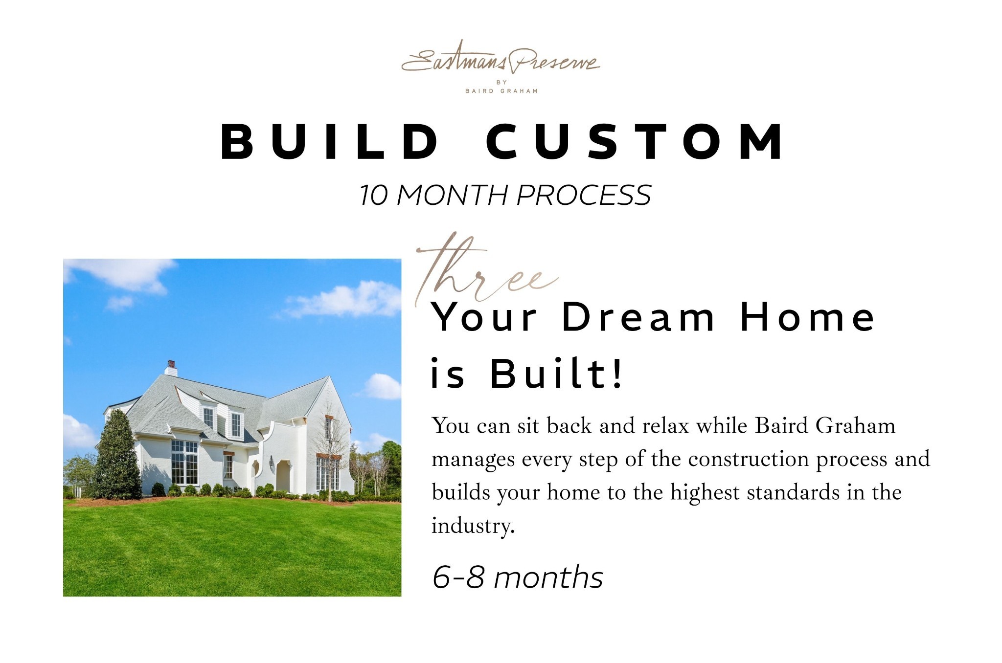 FOR COMPS PURPOSES ONLY. Custom home. Build your Fully Custom home in Brentwood's most prestigious new community, Eastman's Preserve. Built exclusively by the highly regarded Baird Graham. Construction is completed 6-8 months after build permit is issued. Call for details regarding process for plans, selections, and timing.