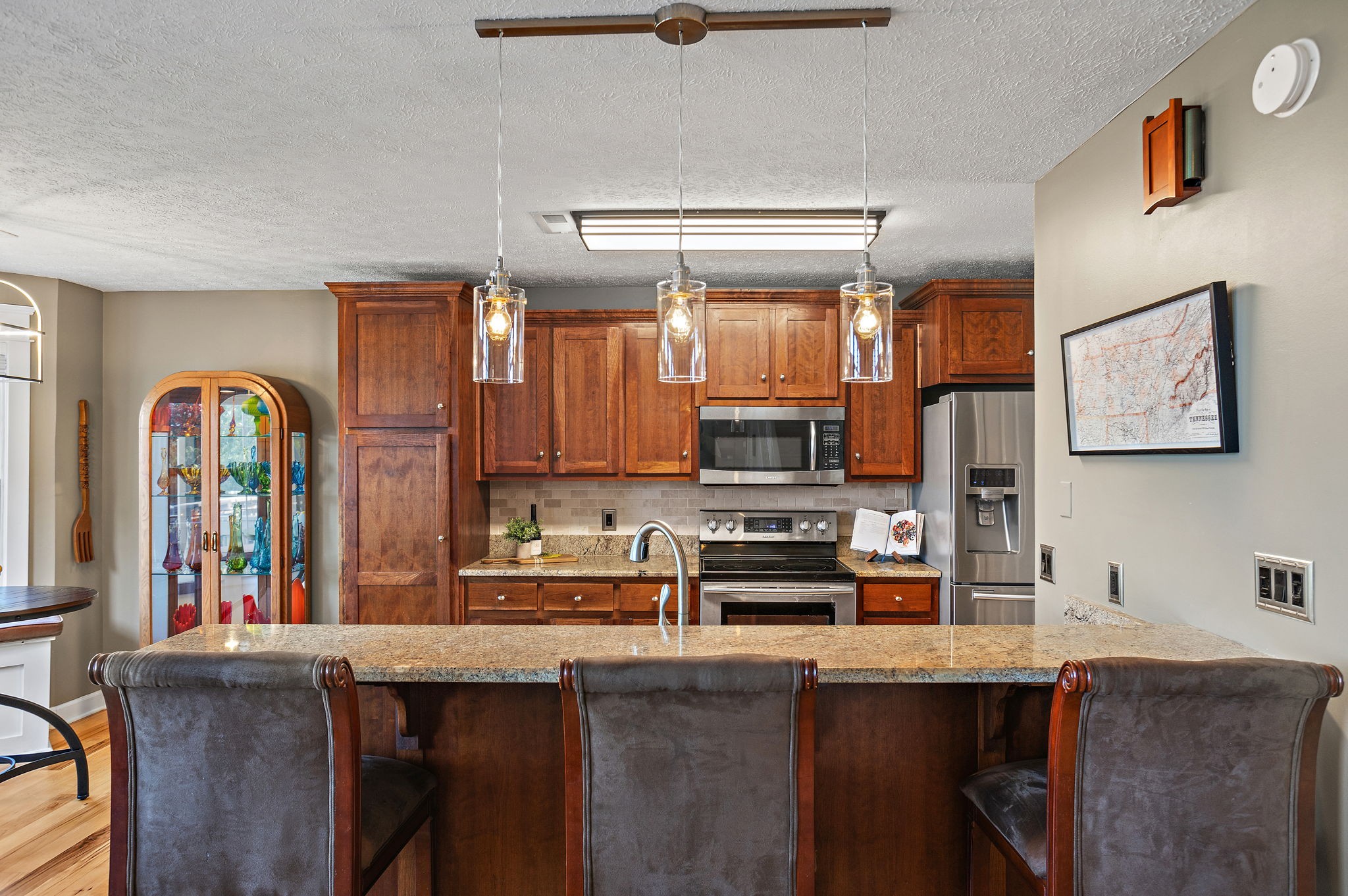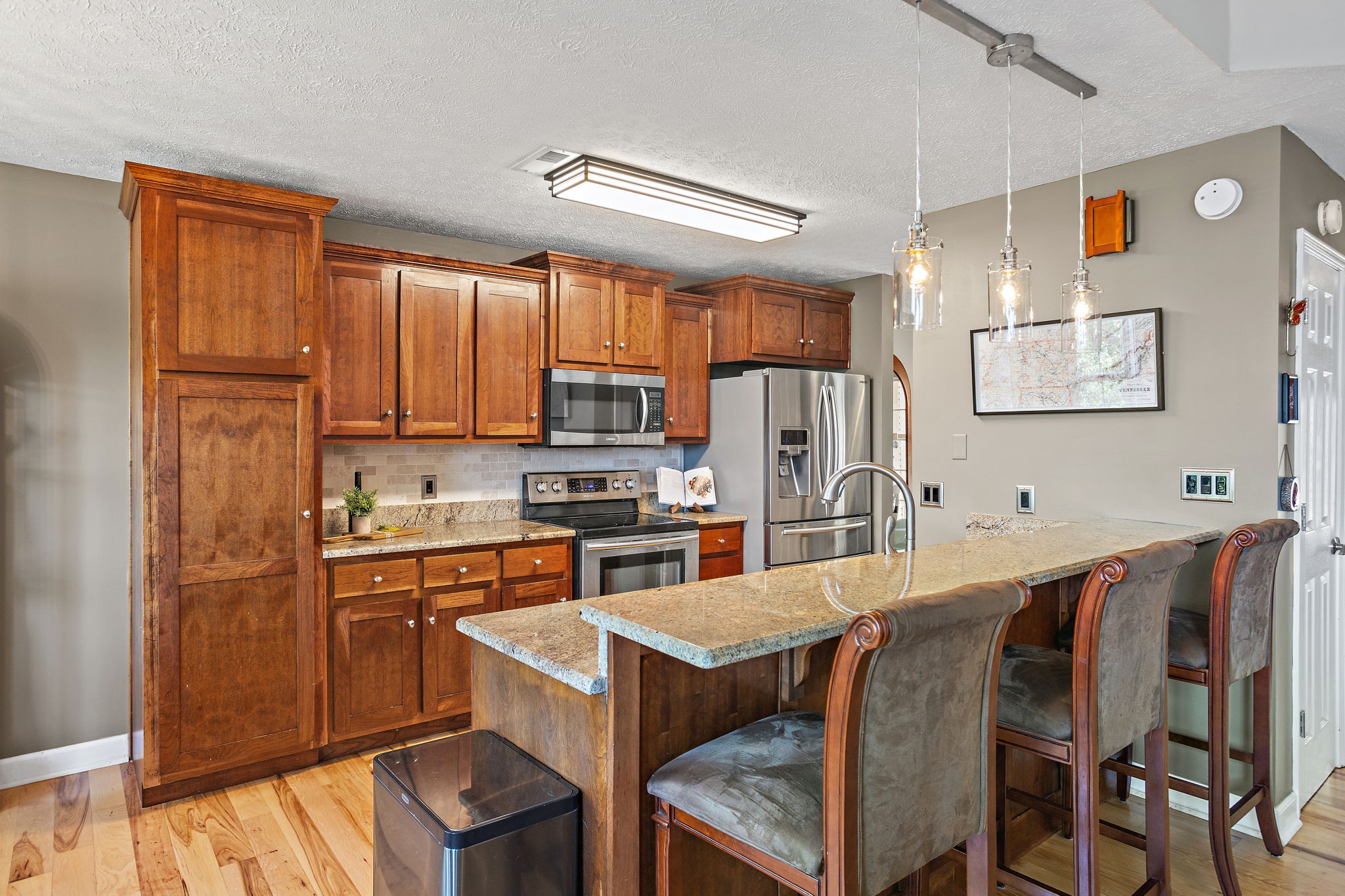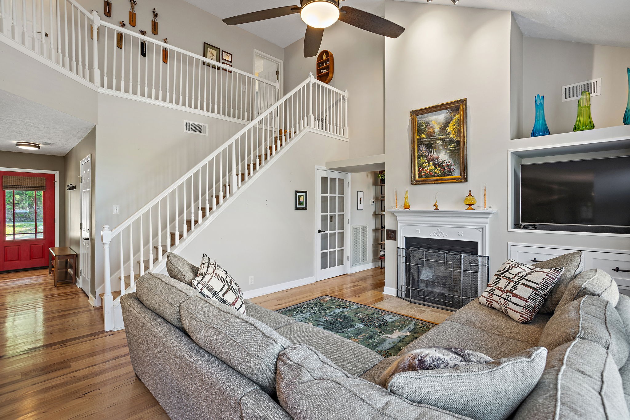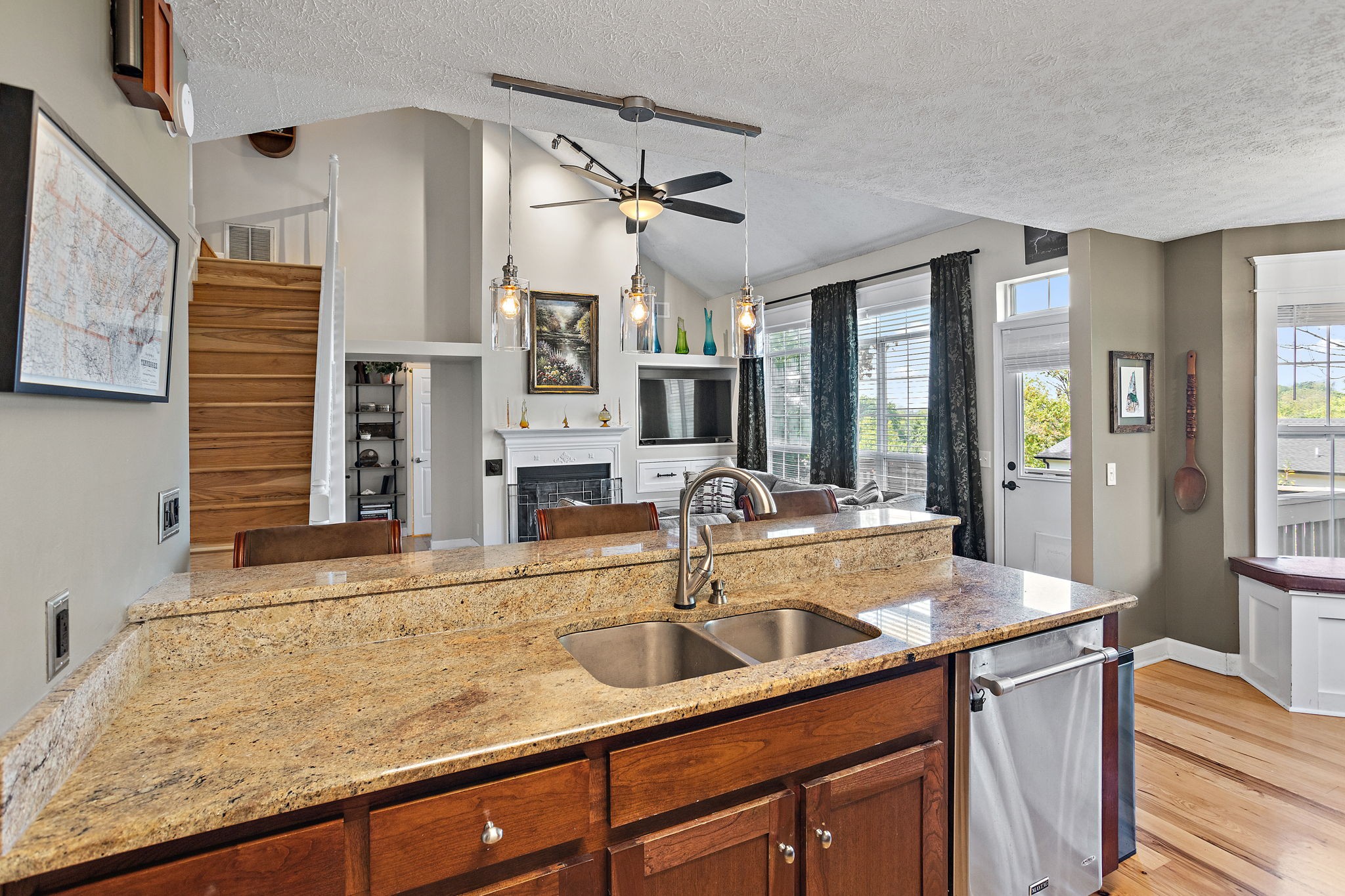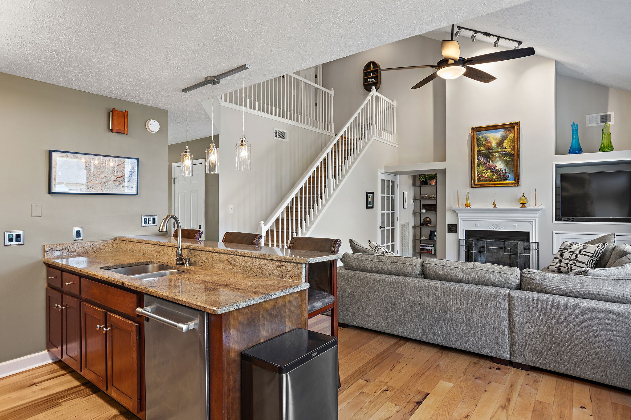 Beautifully updated 4 bd/3.5 bath home on a half-acre lot! Features include new hickory hardwood floors and fresh paint throughout. Stainless steel appliances, granite countertops, updated kitchen backsplash & a bright breakfast nook w/ great bay windows. Open concept with vaulted great room, updated fans and light fixtures, and a remodeled laundry room with new tile, paint, & cabinets. Updated primary suite with new board & batten accent wall & ensuite bathroom. Incredible finished walkout basement with in-law suite, bar area, 12 ft ceilings, bonus space with projector & sound system (to remain), and huge storage space. Enjoy the rocking chair front porch, back deck with great sunset views, flat side yard, fresh landscaping, new gutters, and garage workstation. Community amenities include an inground pool, basketball & pickleball courts! Front Ring camera to convey.
